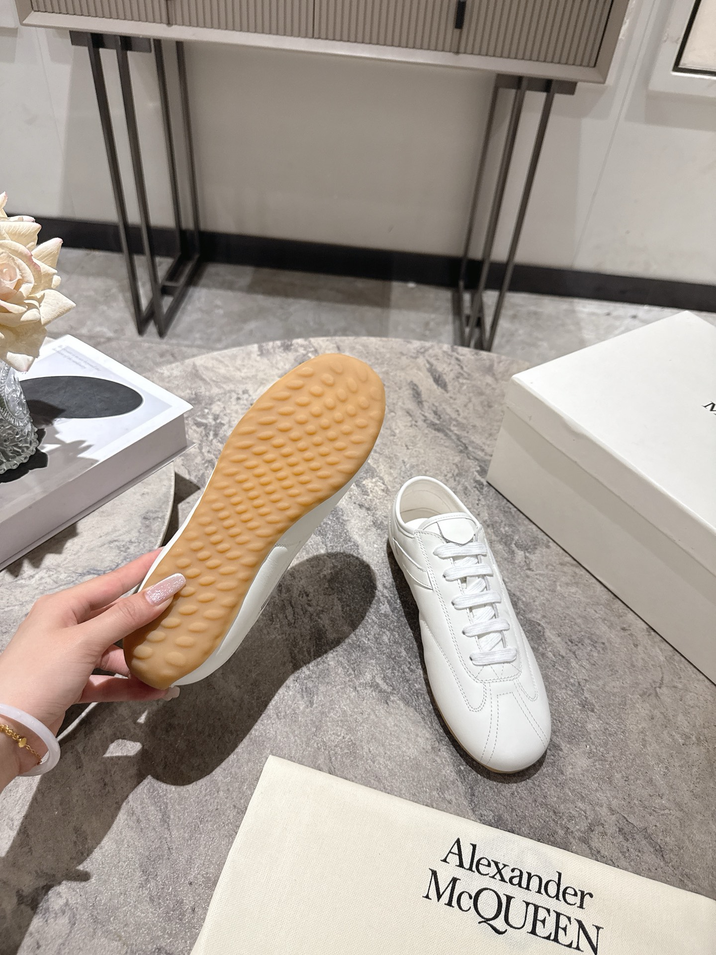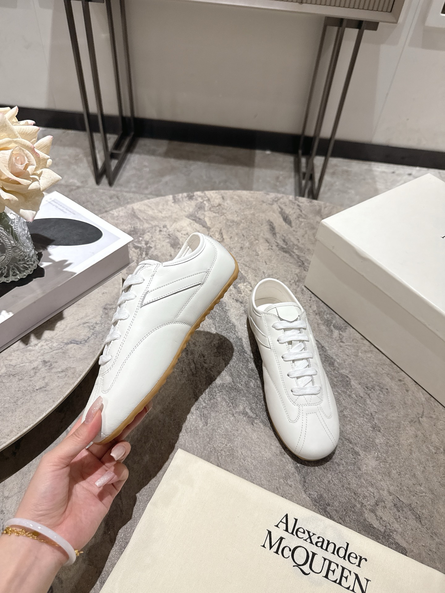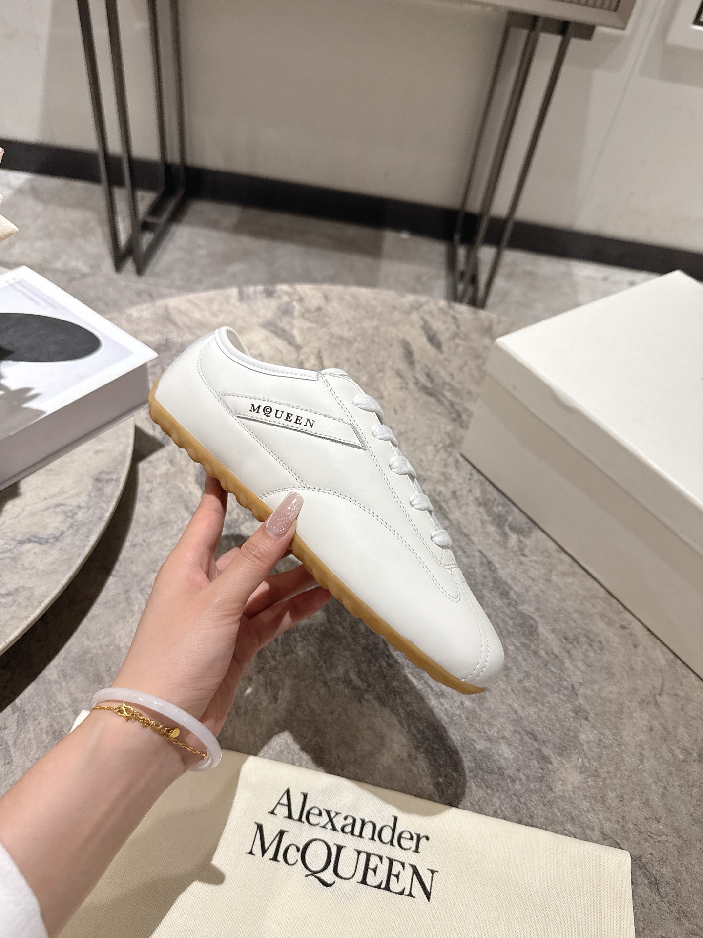 这款鞋子是AAAAA 1:1 质量 (非常棒). 使用了和原版一模一样的材料. 商标部分也保持了和亚历山大·麦昆/McQueen一样. 图片拍摄是实物鞋子拍摄, 您所收到的实物保证和我们图片一模一样.
