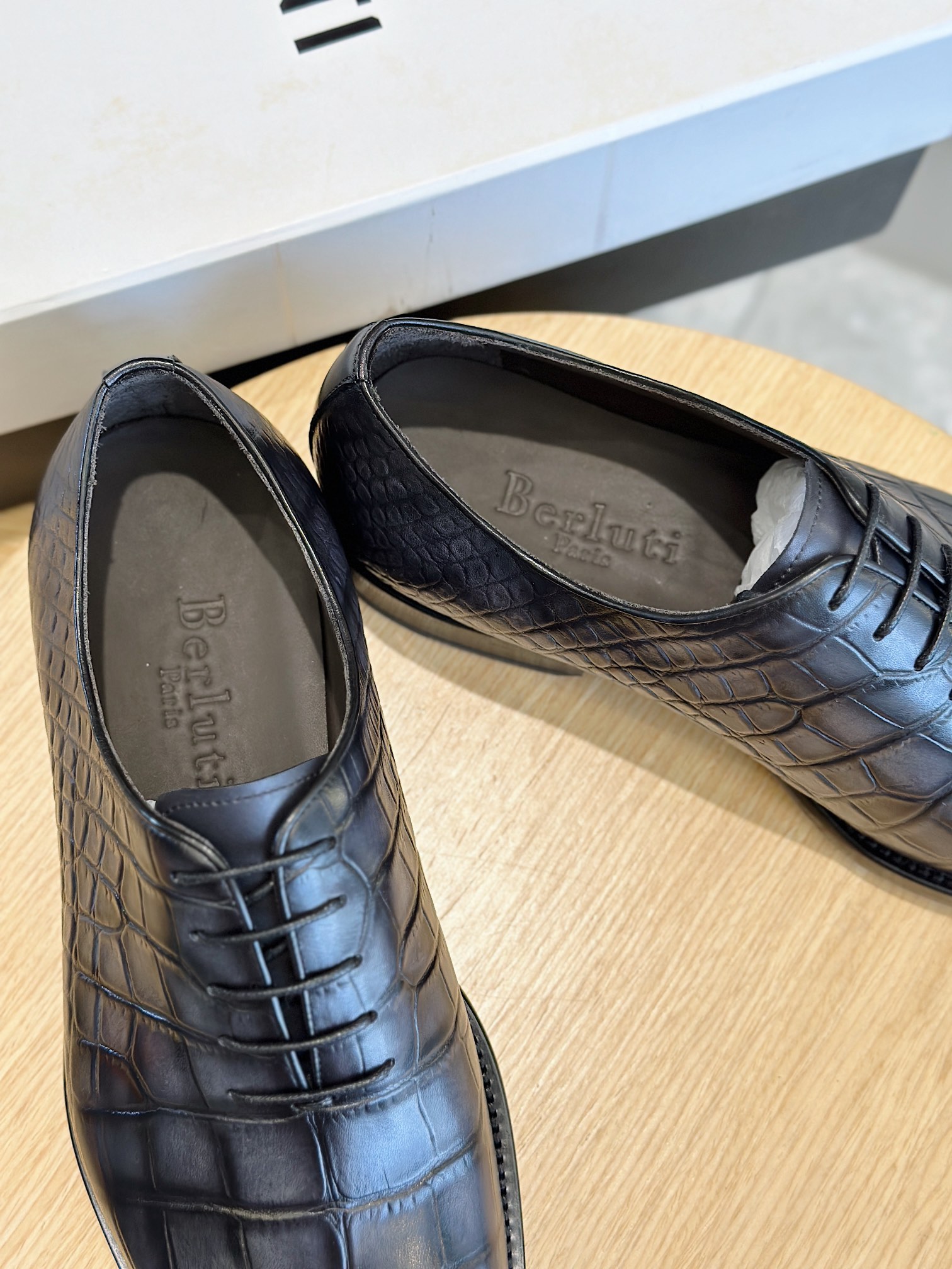 这款鞋子是AAAAA 1:1 质量 (非常棒). 使用了和原版一模一样的材料. 商标部分也保持了和Berluti一样. 图片拍摄是实物鞋子拍摄, 您所收到的实物保证和我们图片一模一样.