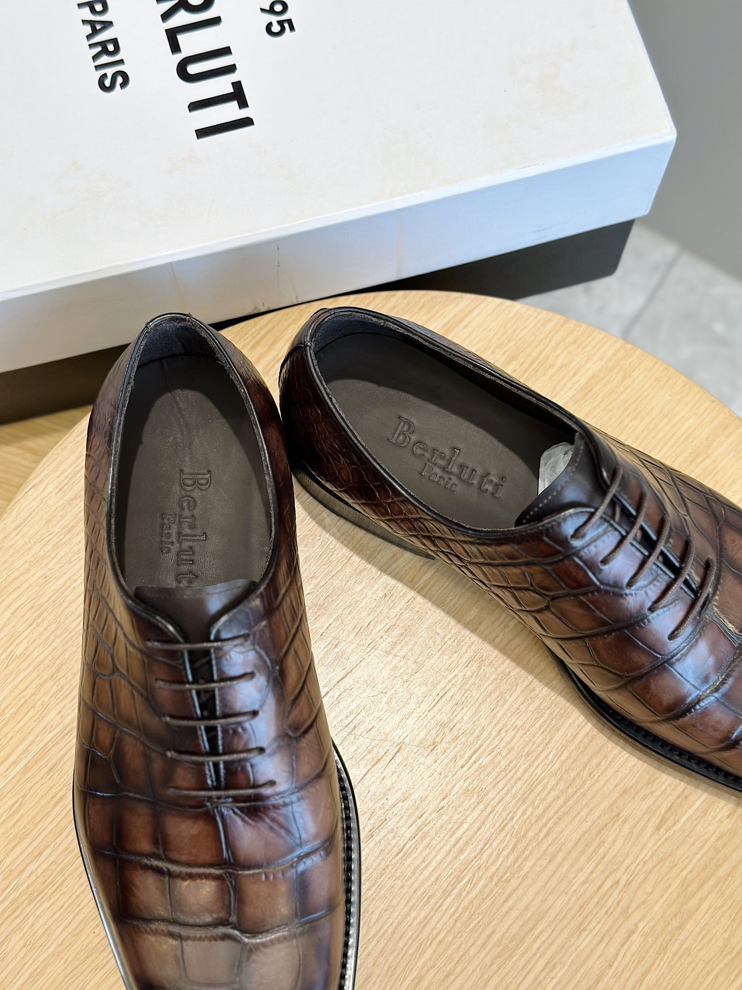 这款鞋子是AAAAA 1:1 质量 (非常棒). 使用了和原版一模一样的材料. 商标部分也保持了和Berluti一样. 图片拍摄是实物鞋子拍摄, 您所收到的实物保证和我们图片一模一样.
