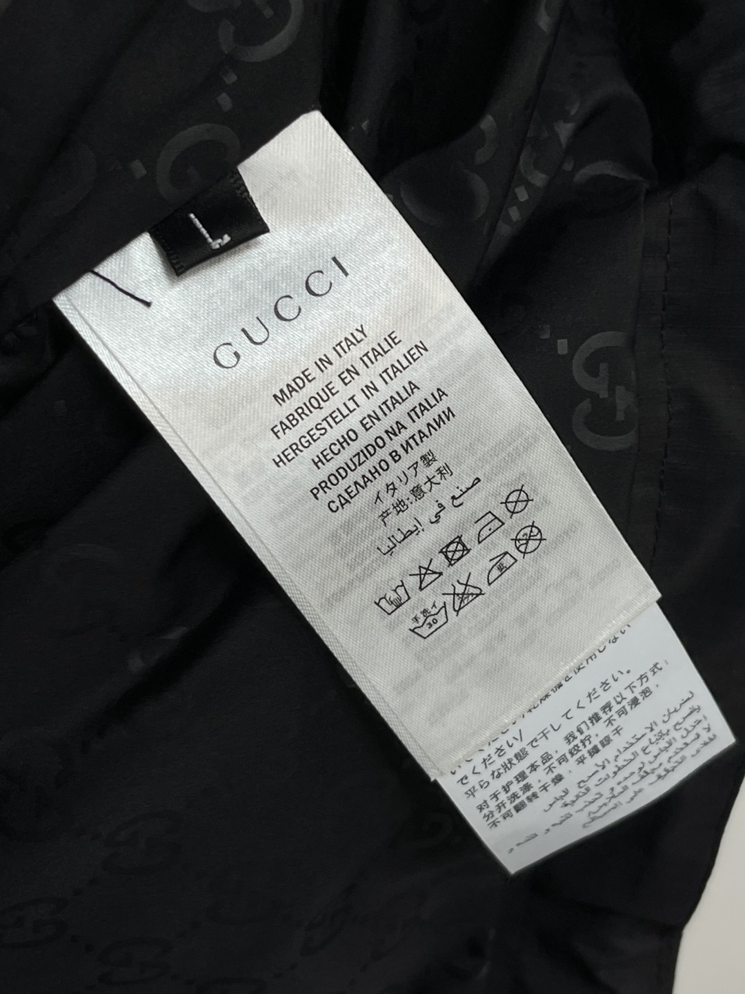 这款衣服是AAAAA 1:1 质量 (非常棒). 使用了和原版一模一样的材料. 商标部分也保持了和古奇/Gucci一样. 图片拍摄是实物衣服拍摄, 您所收到的实物保证和我们图片一模一样.