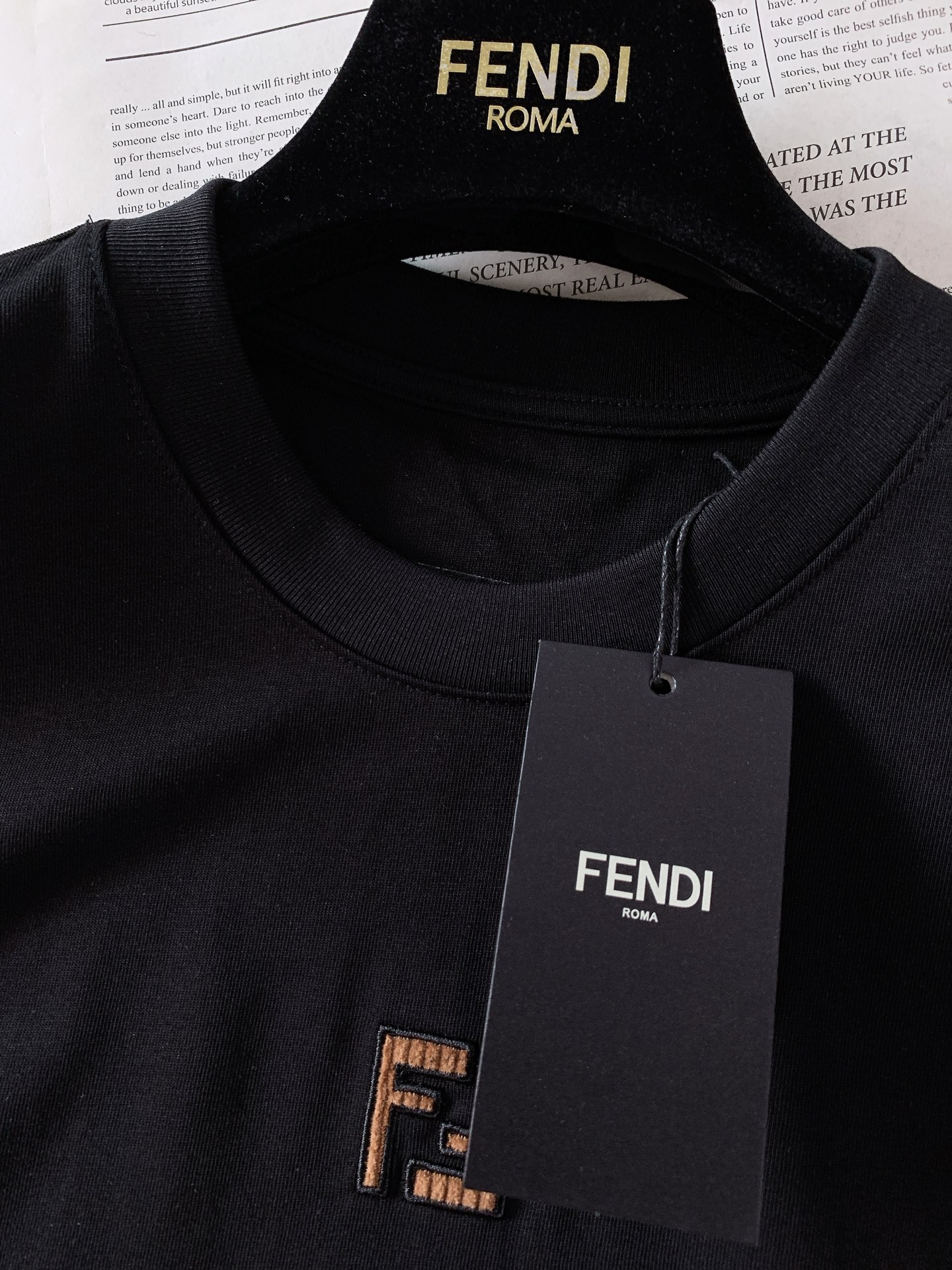 这款衣服是AAAAA 1:1 质量 (非常棒). 使用了和原版一模一样的材料. 商标部分也保持了和芬迪/Fendi一样. 图片拍摄是实物衣服拍摄, 您所收到的实物保证和我们图片一模一样.