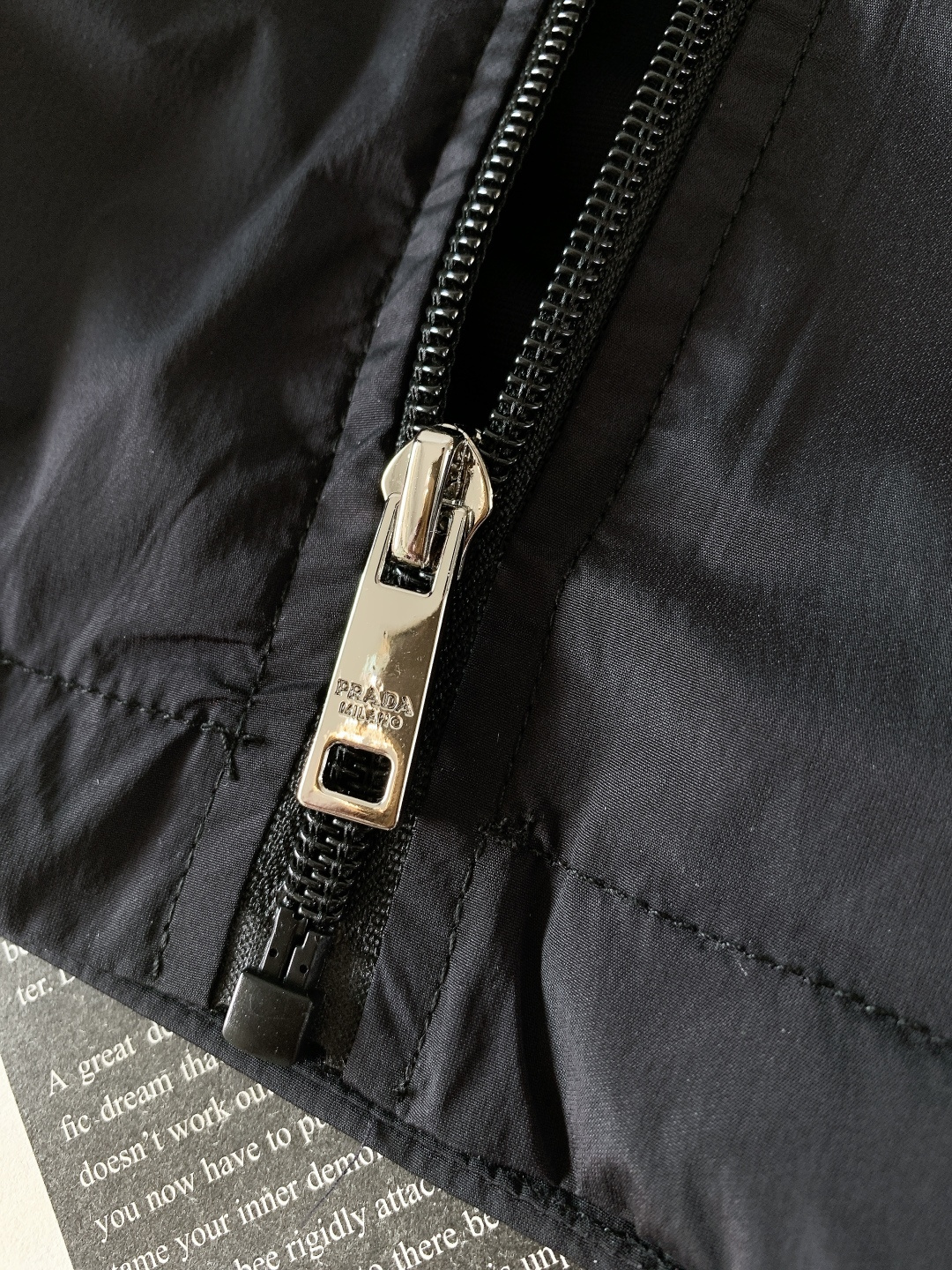 这款衣服是AAAAA 1:1 质量 (非常棒). 使用了和原版一模一样的材料. 商标部分也保持了和普拉达/Prada一样. 图片拍摄是实物衣服拍摄, 您所收到的实物保证和我们图片一模一样.