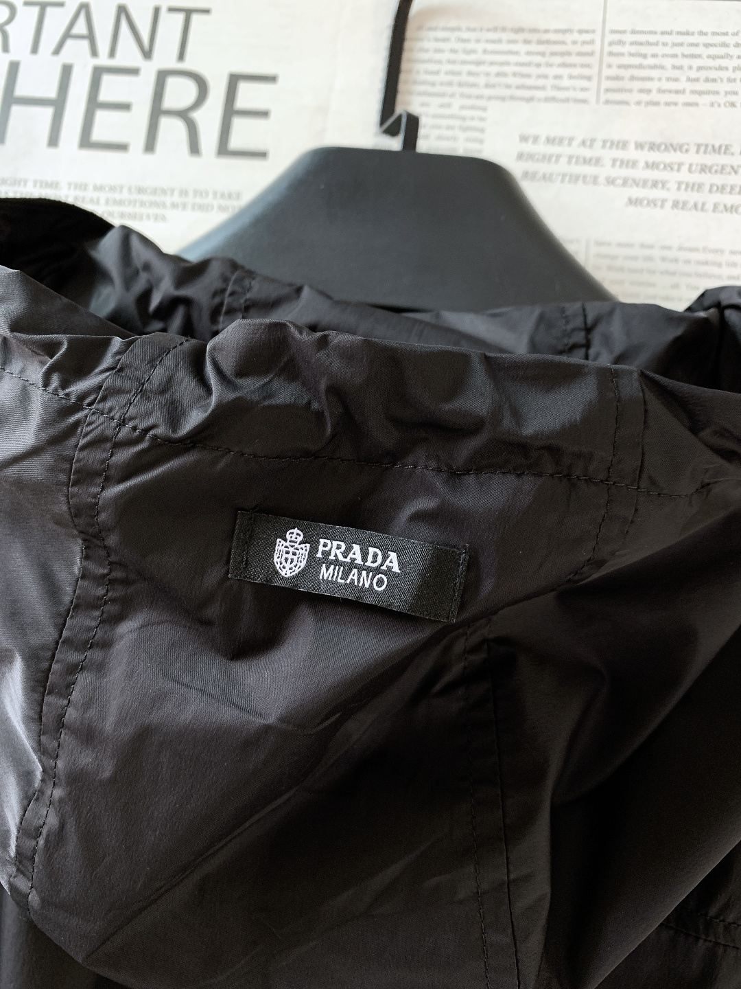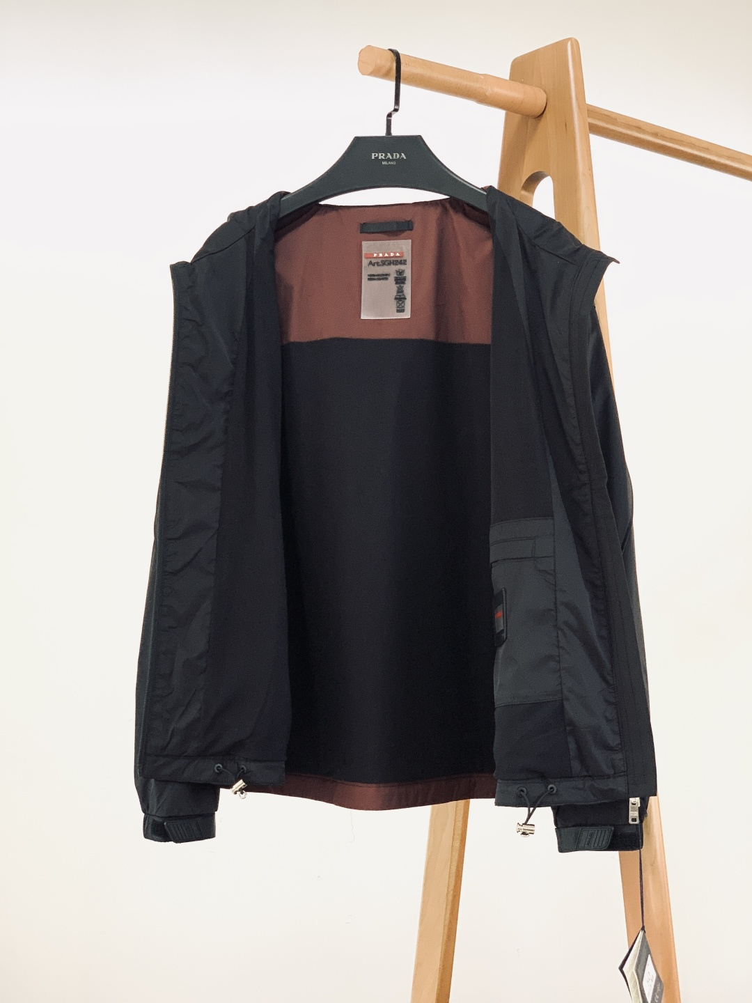 这款衣服是AAAAA 1:1 质量 (非常棒). 使用了和原版一模一样的材料. 商标部分也保持了和普拉达/Prada一样. 图片拍摄是实物衣服拍摄, 您所收到的实物保证和我们图片一模一样.