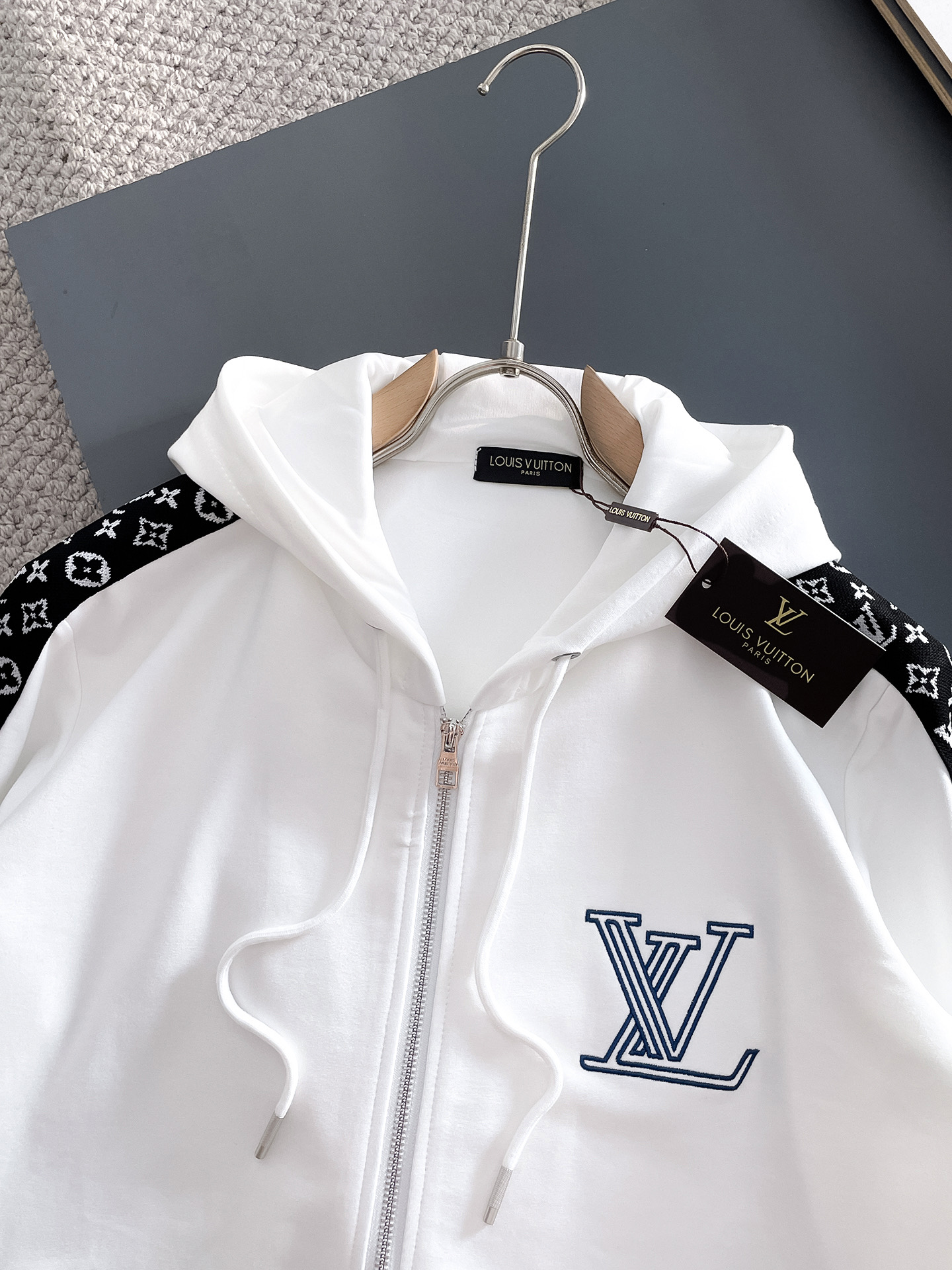 这款衣服是AAAAA 1:1 质量 (非常棒). 使用了和原版一模一样的材料. 商标部分也保持了和一样. 图片拍摄是实物衣服拍摄, 您所收到的实物保证和我们图片一模一样.