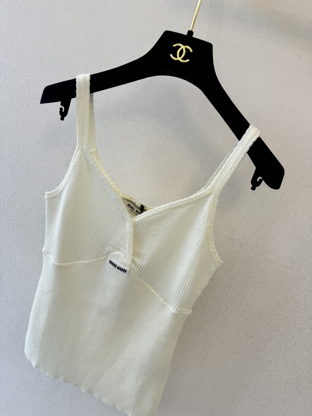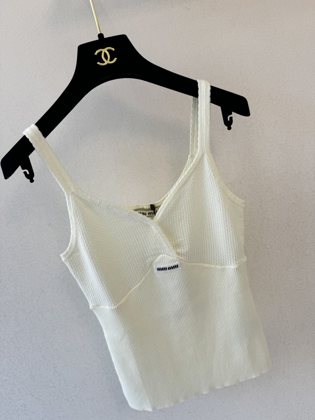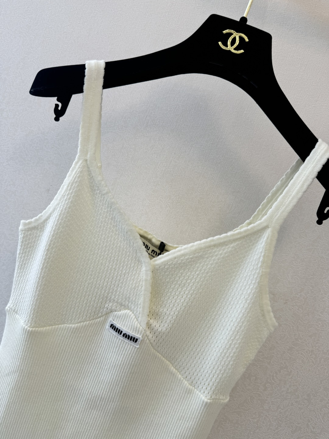 这款衣服是AAAAA 1:1 质量 (非常棒). 使用了和原版一模一样的材料. 商标部分也保持了和缪缪/Miu Miu一样. 图片拍摄是实物衣服拍摄, 您所收到的实物保证和我们图片一模一样.
