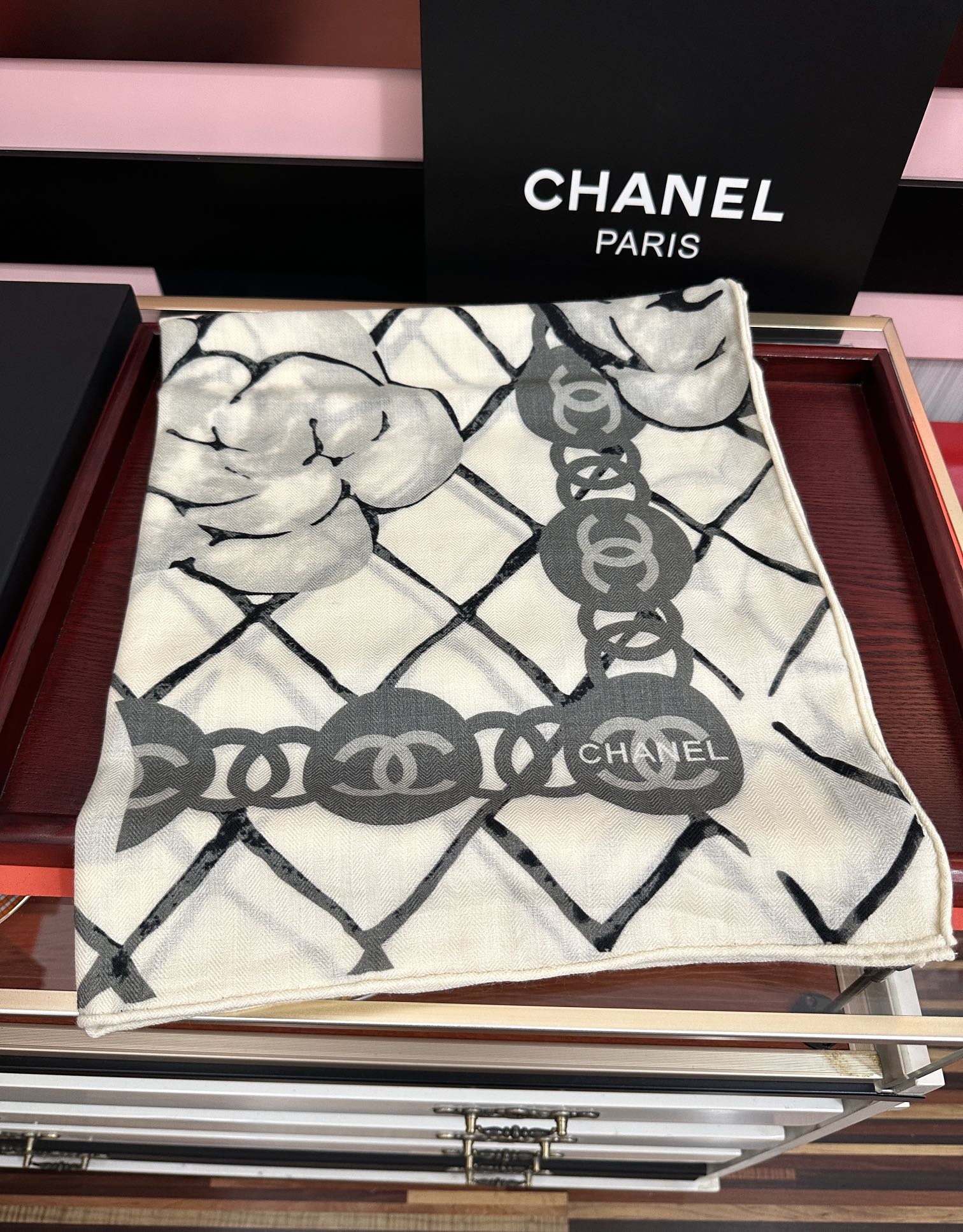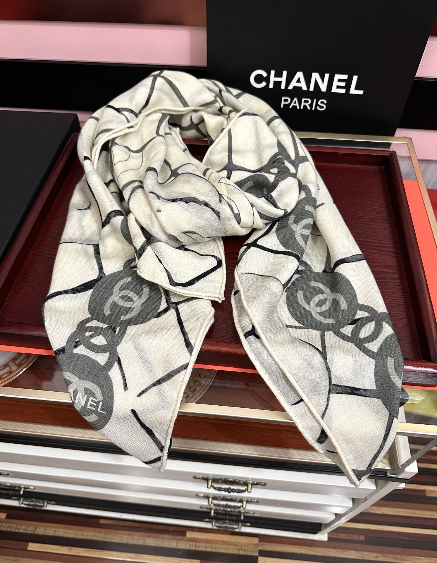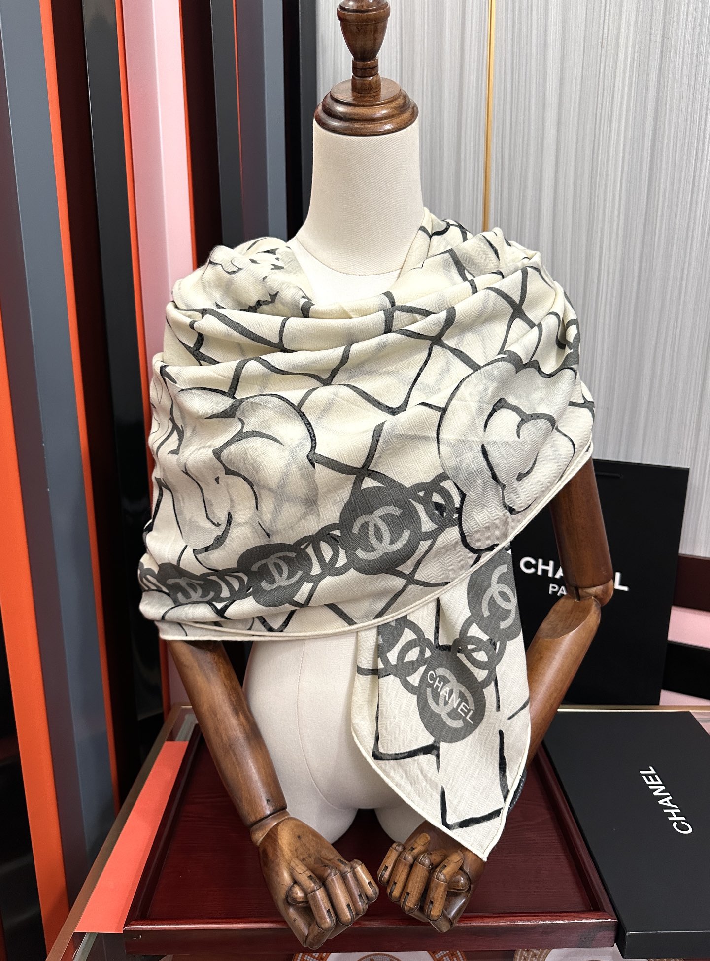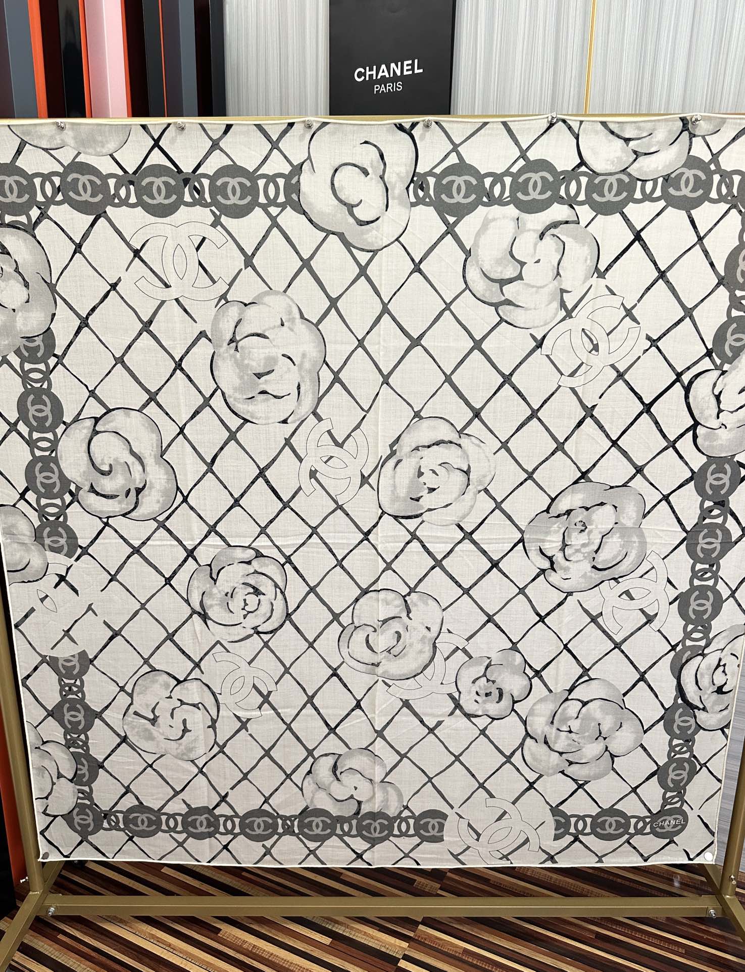 这款围巾是AAAAA 1:1 质量 (非常棒). 使用了和原版一模一样的材料. 商标部分也保持了和香奈儿/Chanel一样. 图片拍摄是实物围巾拍摄, 您所收到的实物保证和我们图片一模一样.