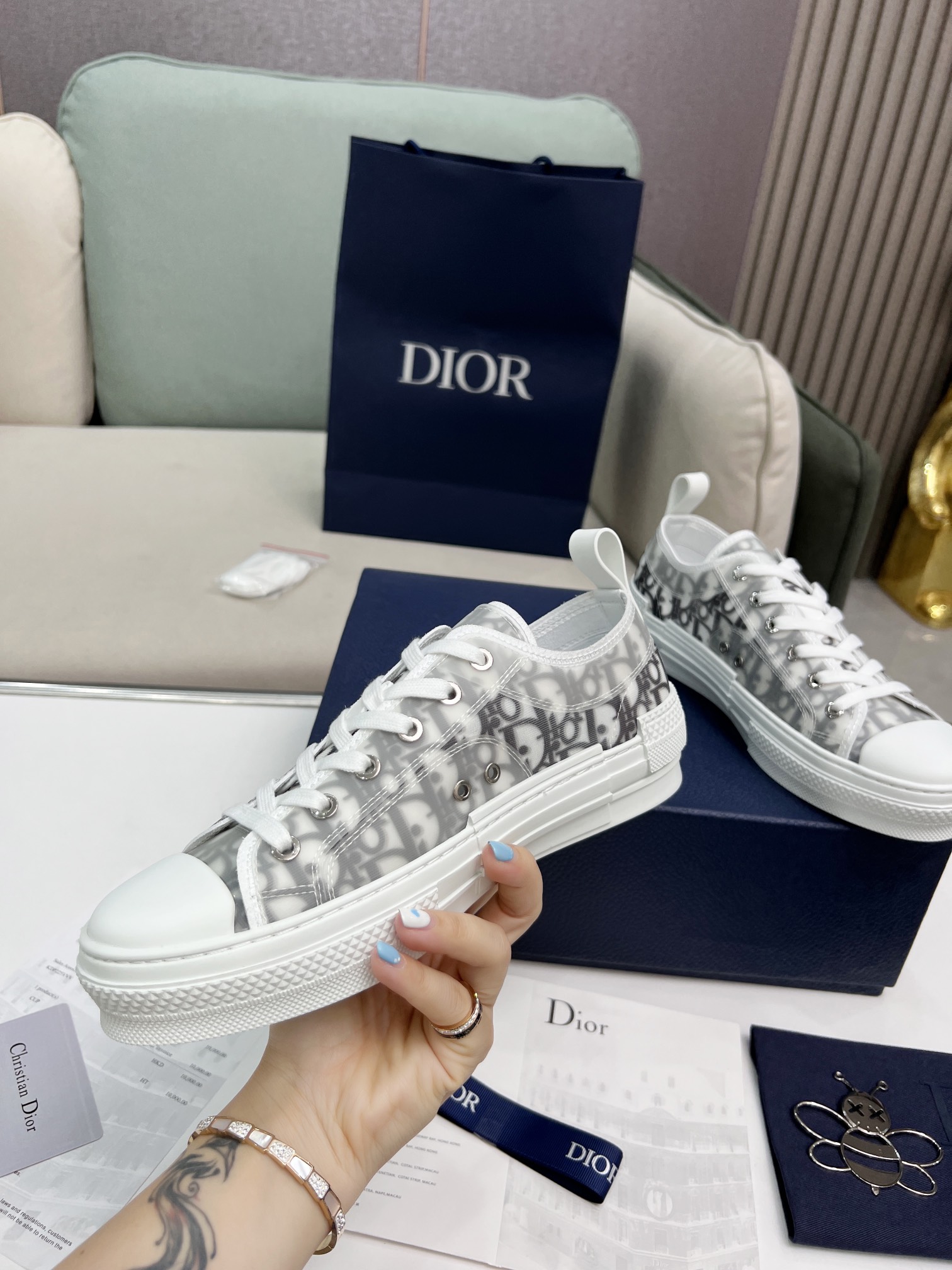 这款鞋子是AAAAA 1:1 质量 (非常棒). 使用了和原版一模一样的材料. 商标部分也保持了和迪奥/Dior一样. 图片拍摄是实物鞋子拍摄, 您所收到的实物保证和我们图片一模一样.