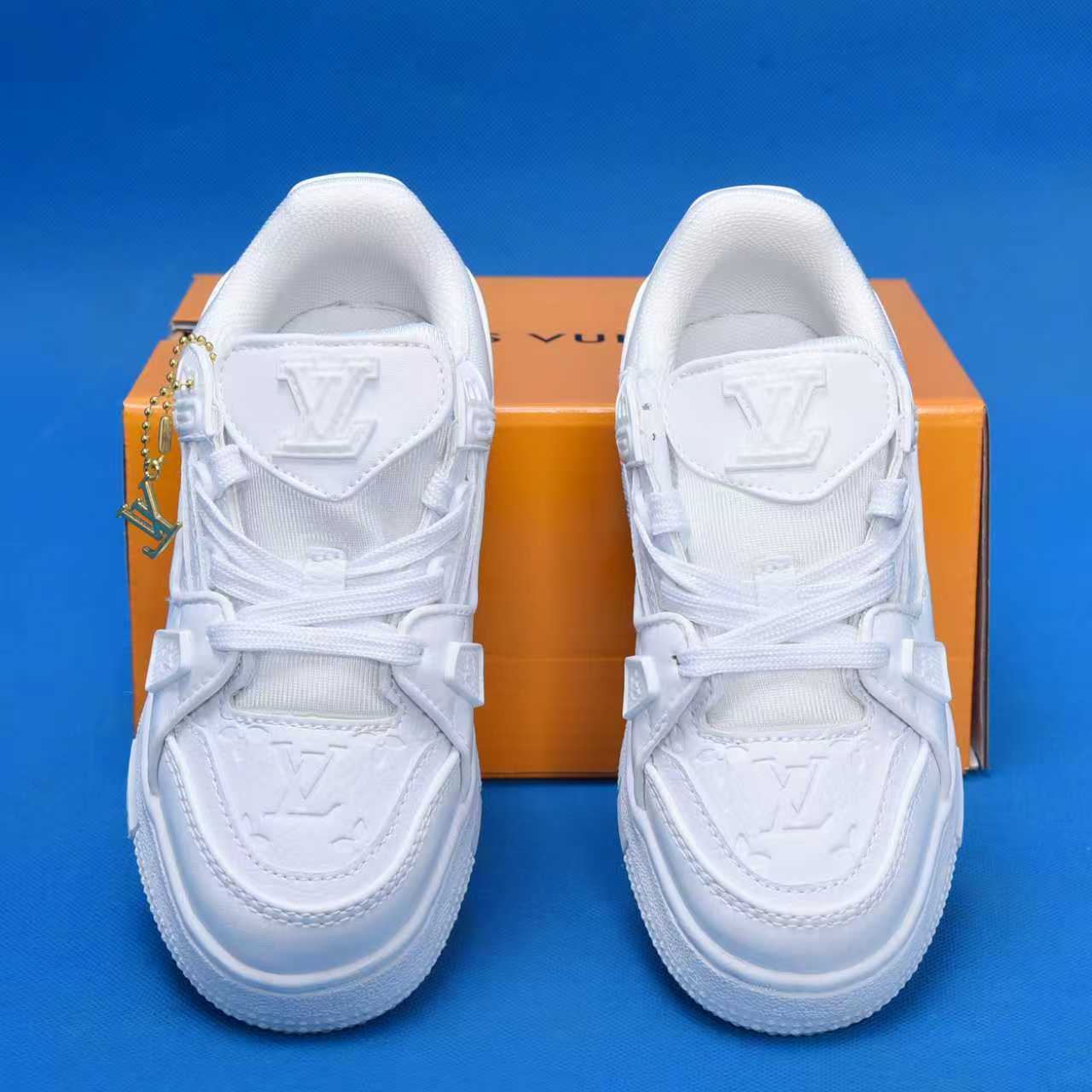这款鞋子是AAAAA 1:1 质量 (非常棒). 使用了和原版一模一样的材料. 商标部分也保持了和路易威登/Louis Vuitton一样. 图片拍摄是实物鞋子拍摄, 您所收到的实物保证和我们图片一模一样.