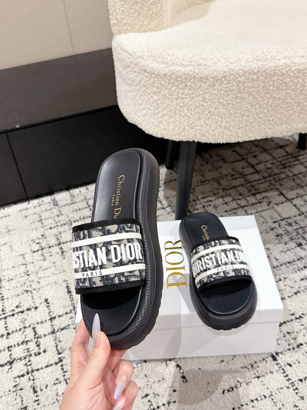 这款鞋子是AAAAA 1:1 质量 (非常棒). 使用了和原版一模一样的材料. 商标部分也保持了和迪奥/Dior一样. 图片拍摄是实物鞋子拍摄, 您所收到的实物保证和我们图片一模一样.