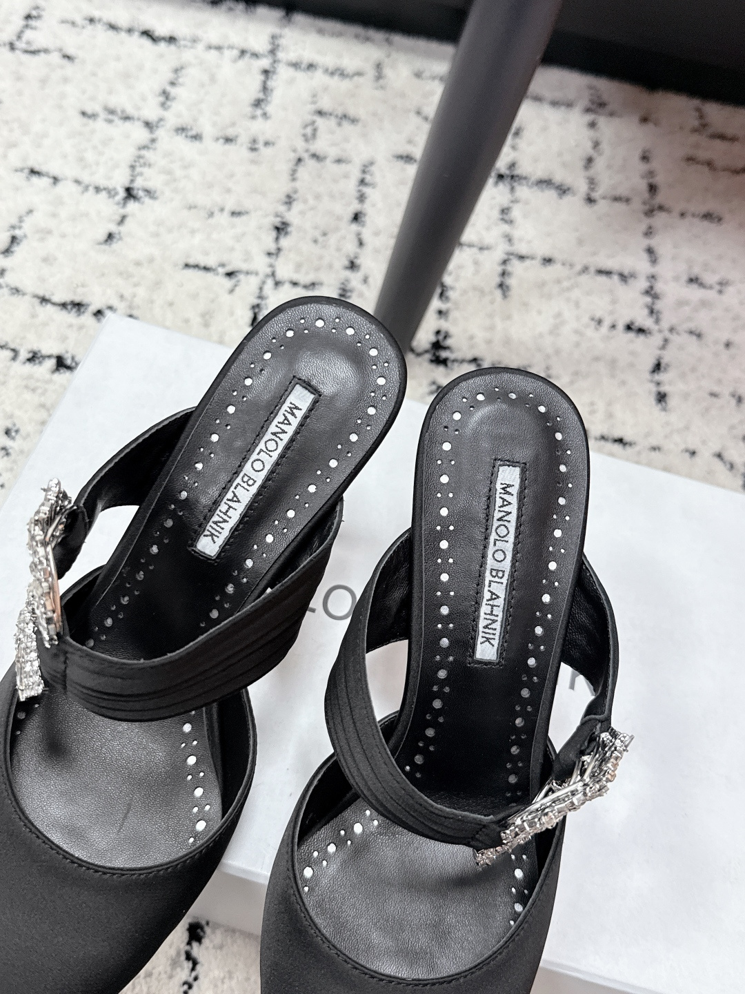 这款鞋子是AAAAA 1:1 质量 (非常棒). 使用了和原版一模一样的材料. 商标部分也保持了和马诺洛·布拉尼克/Manolo Blahnik一样. 图片拍摄是实物鞋子拍摄, 您所收到的实物保证和我们图片一模一样.