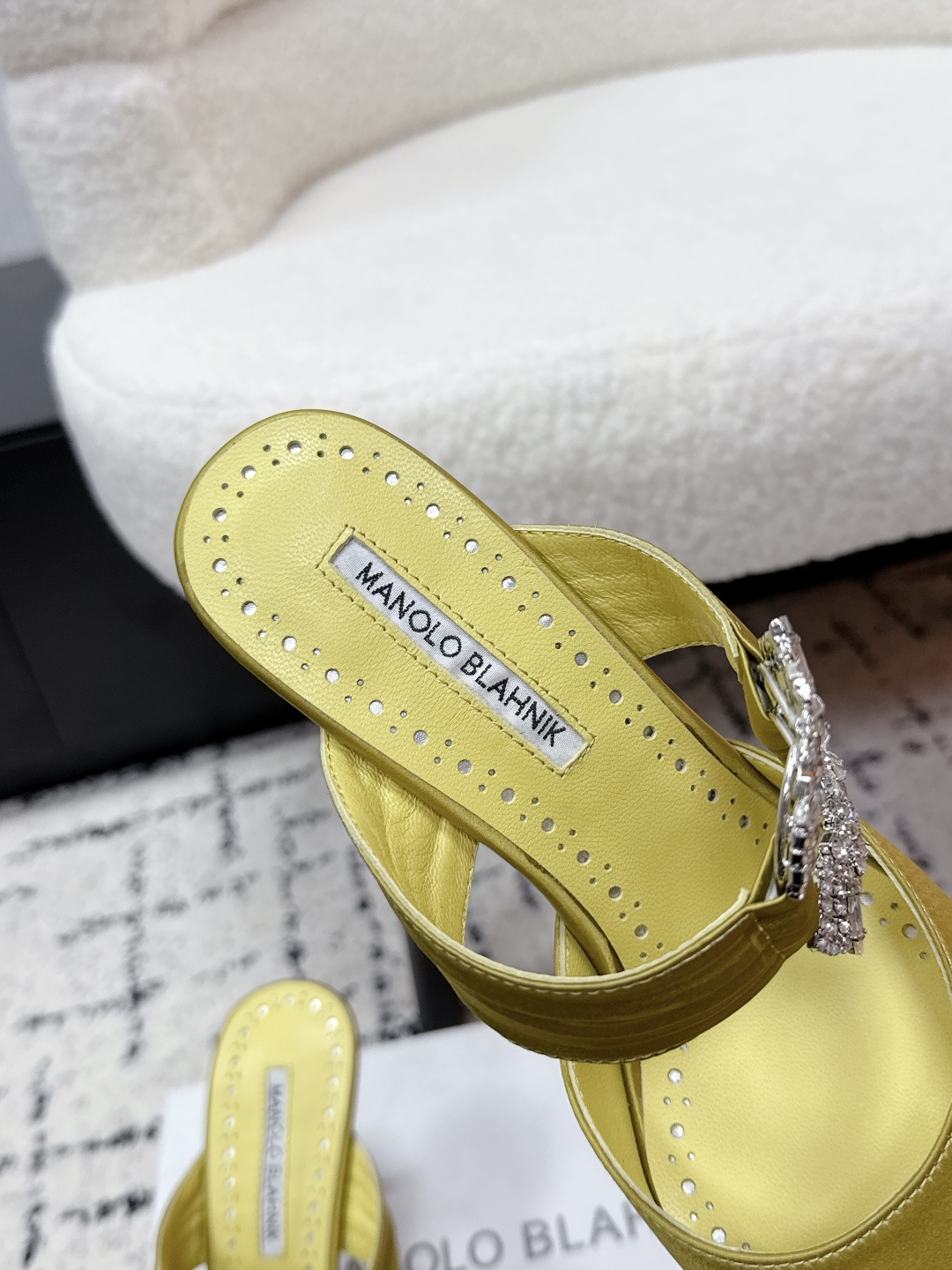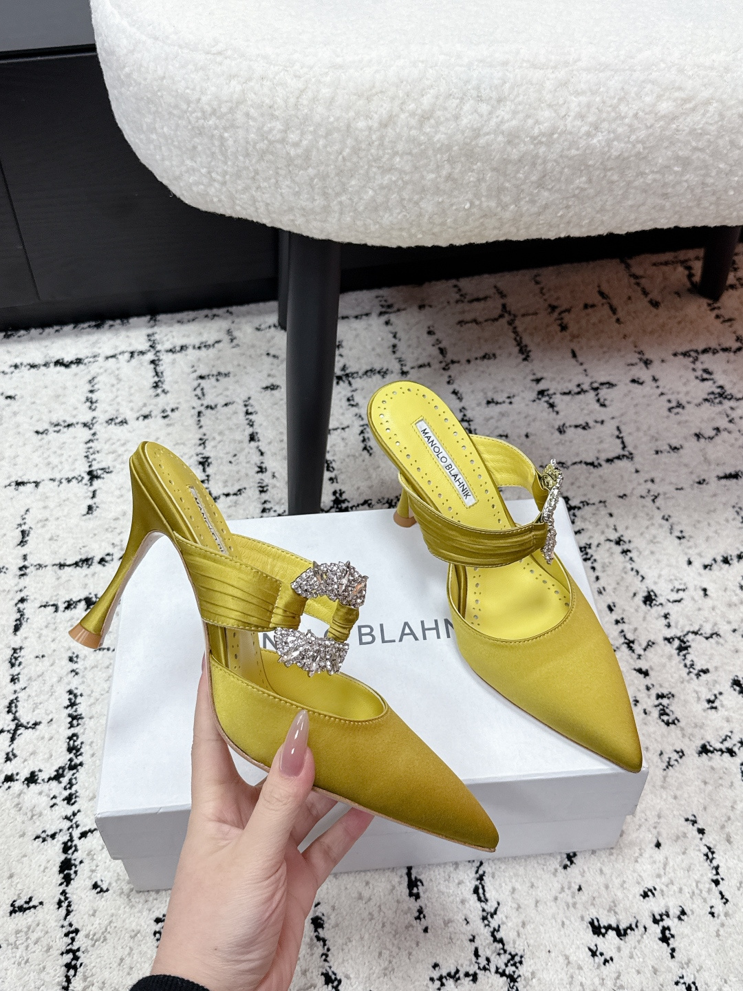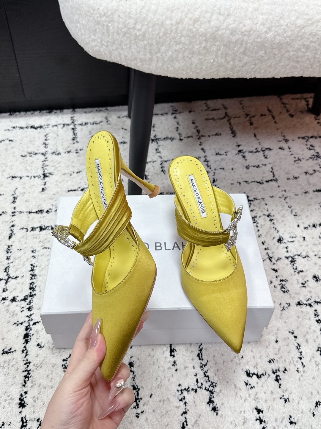 这款鞋子是AAAAA 1:1 质量 (非常棒). 使用了和原版一模一样的材料. 商标部分也保持了和马诺洛·布拉尼克/Manolo Blahnik一样. 图片拍摄是实物鞋子拍摄, 您所收到的实物保证和我们图片一模一样.