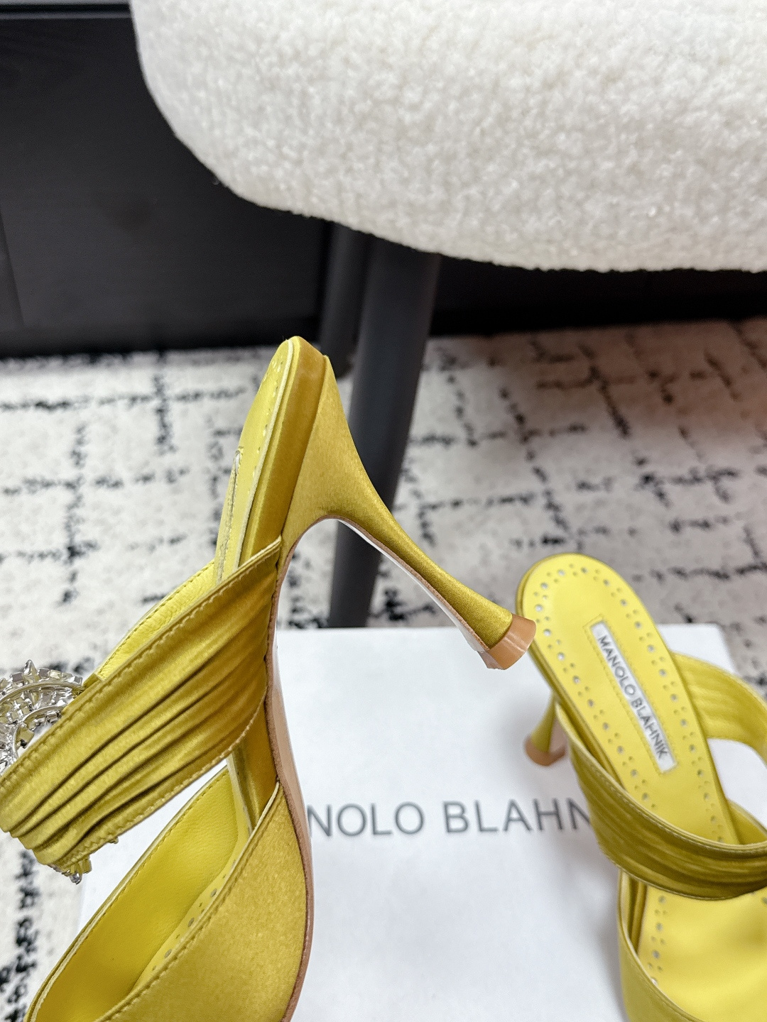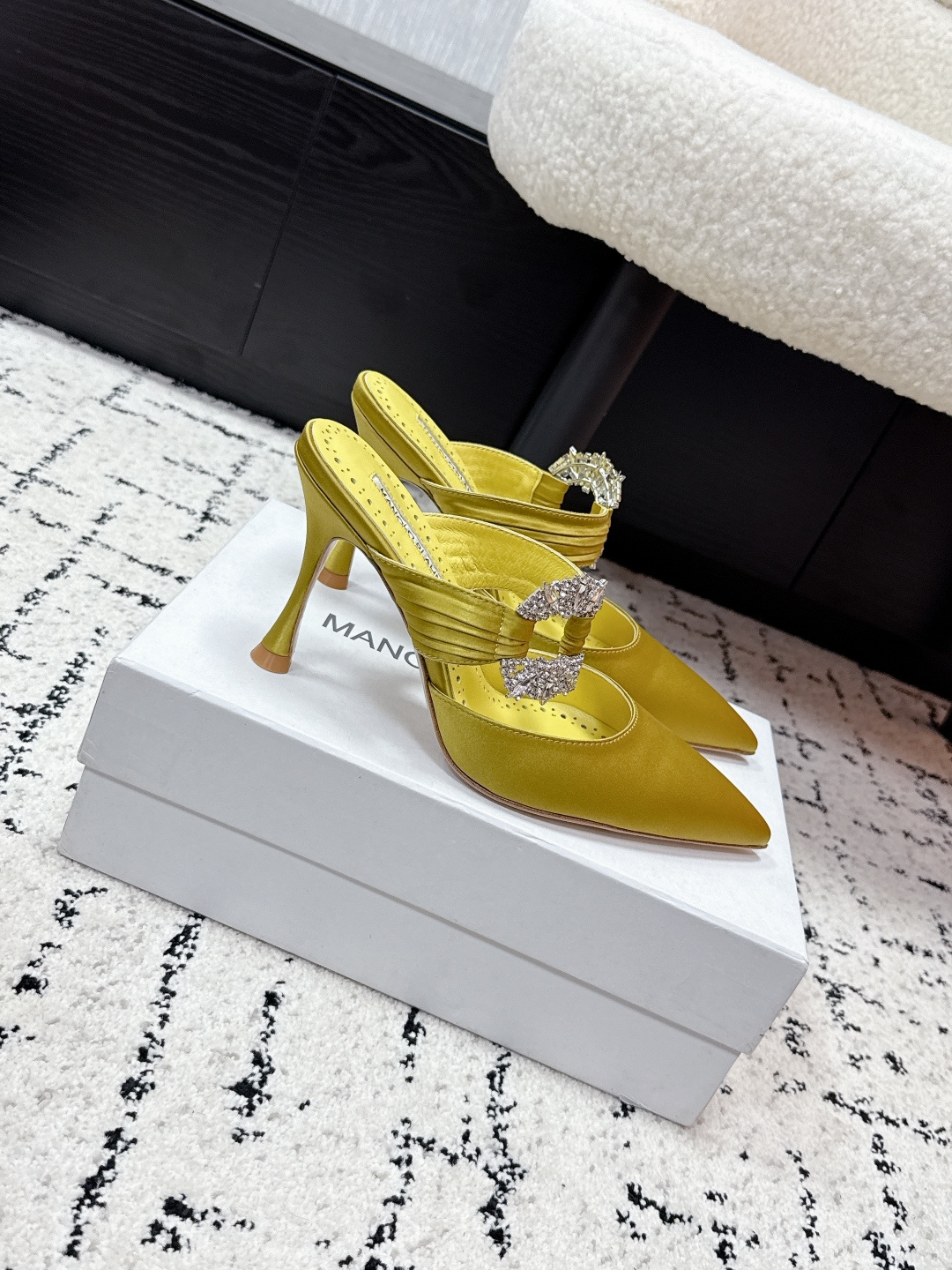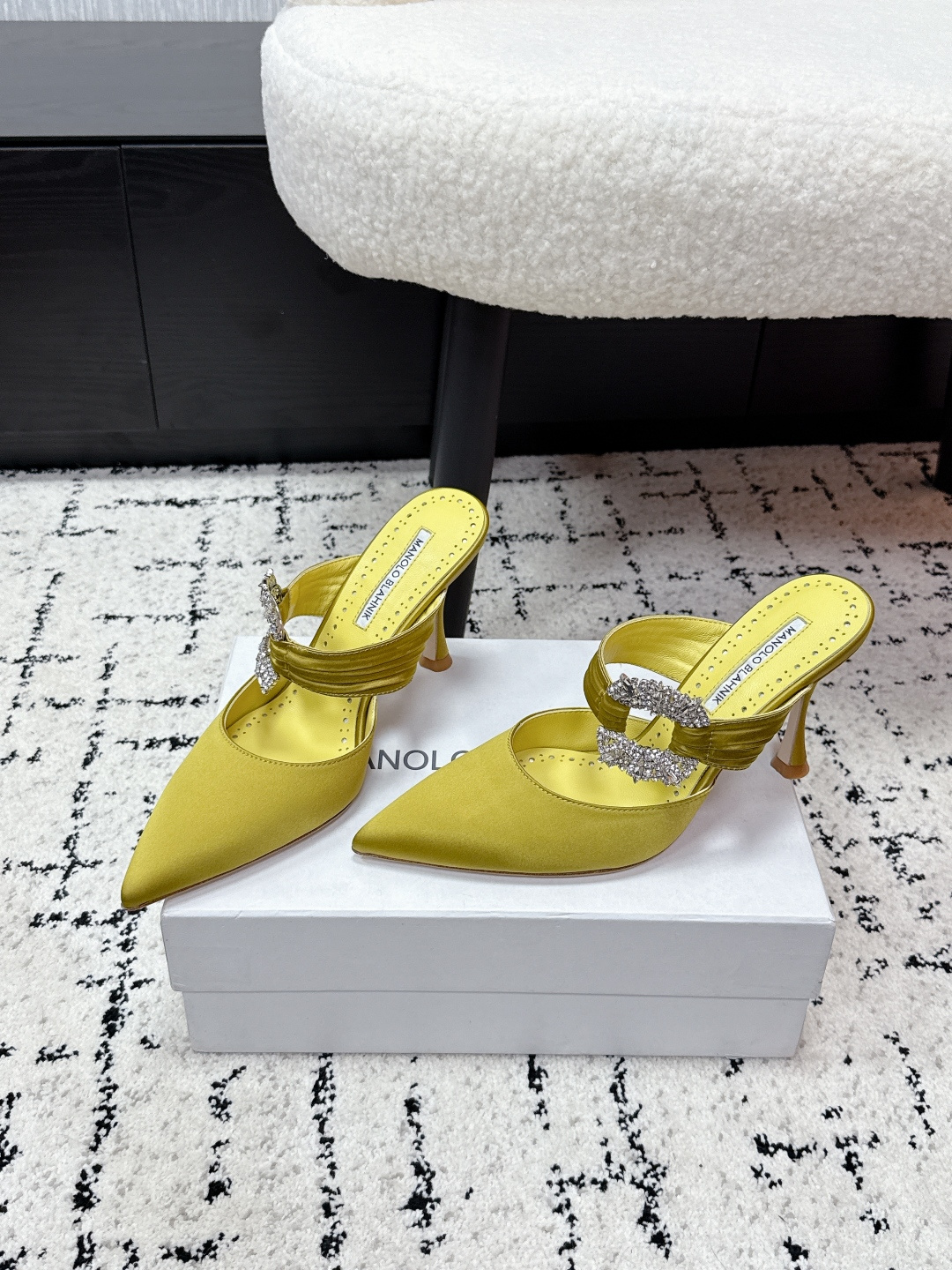 这款鞋子是AAAAA 1:1 质量 (非常棒). 使用了和原版一模一样的材料. 商标部分也保持了和马诺洛·布拉尼克/Manolo Blahnik一样. 图片拍摄是实物鞋子拍摄, 您所收到的实物保证和我们图片一模一样.