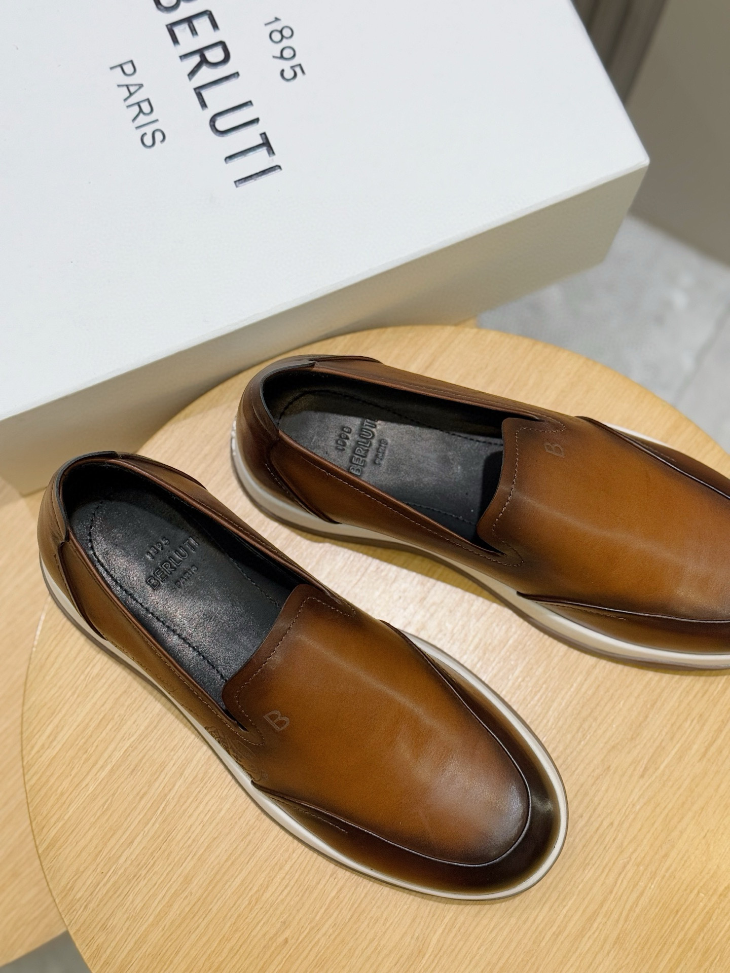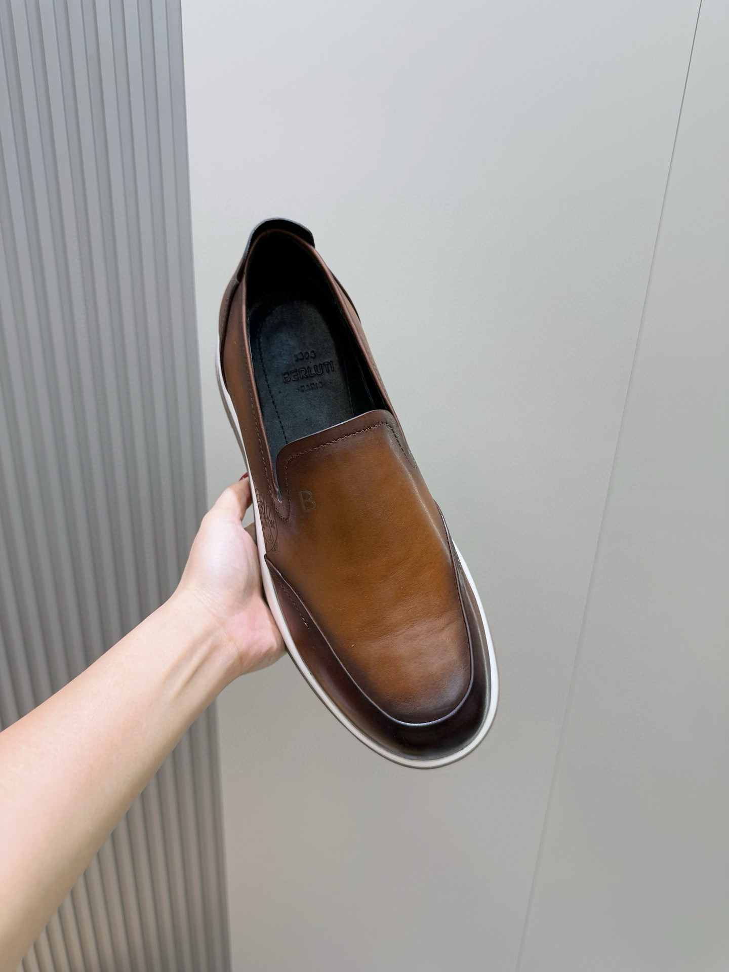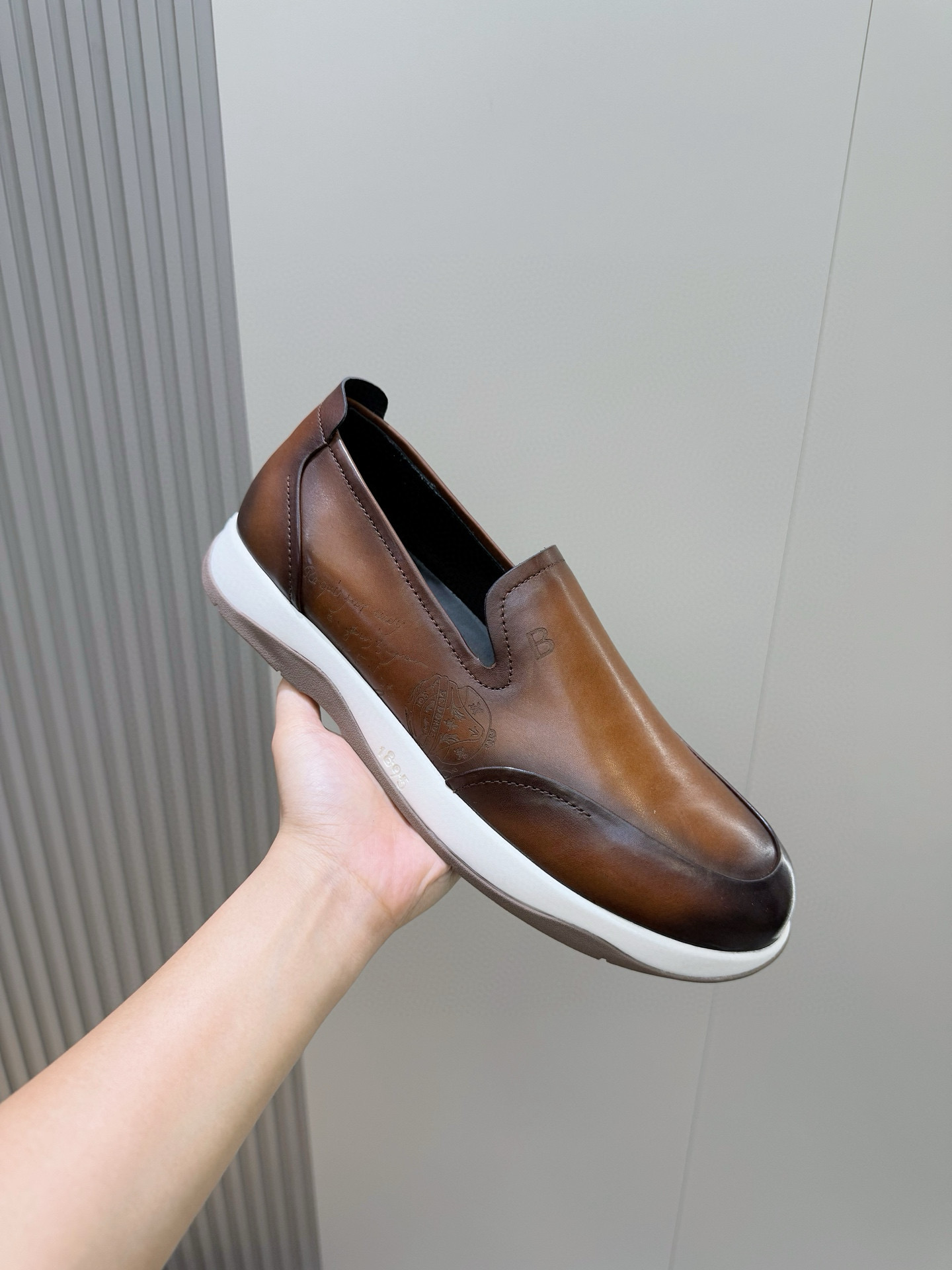 这款鞋子是AAAAA 1:1 质量 (非常棒). 使用了和原版一模一样的材料. 商标部分也保持了和Berluti一样. 图片拍摄是实物鞋子拍摄, 您所收到的实物保证和我们图片一模一样.