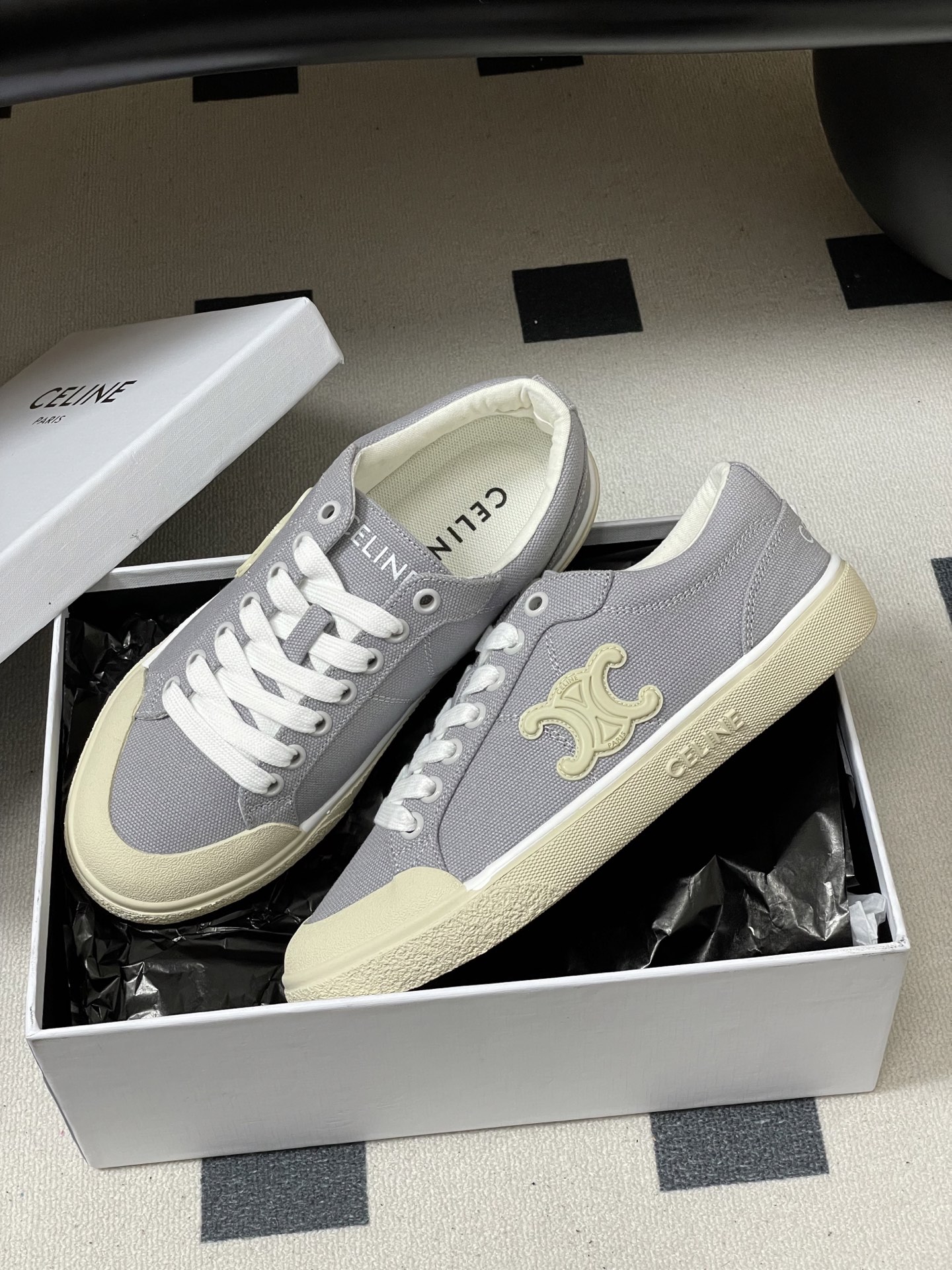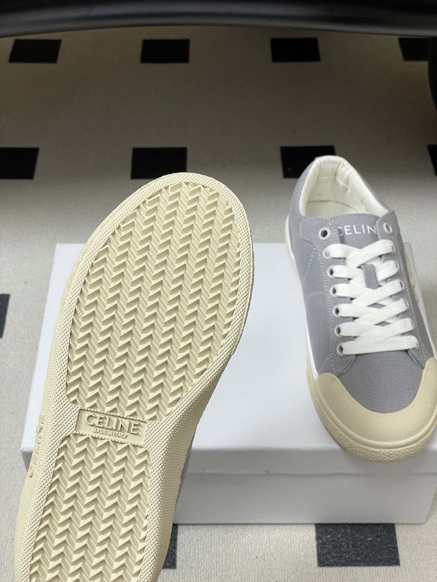 这款鞋子是AAAAA 1:1 质量 (非常棒). 使用了和原版一模一样的材料. 商标部分也保持了和思琳/Celine一样. 图片拍摄是实物鞋子拍摄, 您所收到的实物保证和我们图片一模一样.