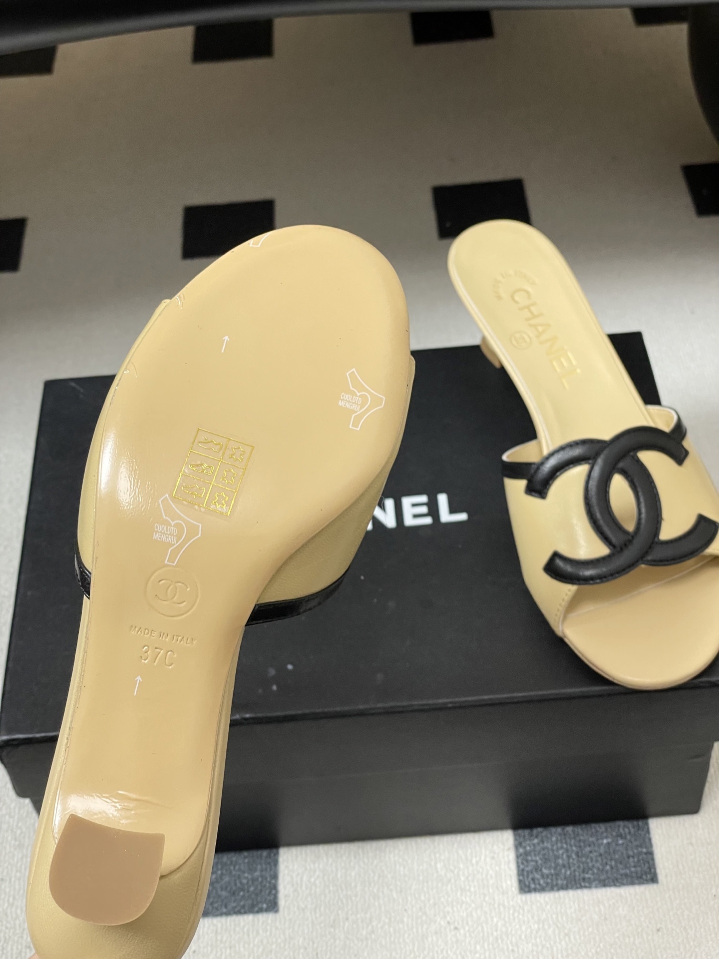 这款鞋子是AAAAA 1:1 质量 (非常棒). 使用了和原版一模一样的材料. 商标部分也保持了和香奈儿/Chanel一样. 图片拍摄是实物鞋子拍摄, 您所收到的实物保证和我们图片一模一样.