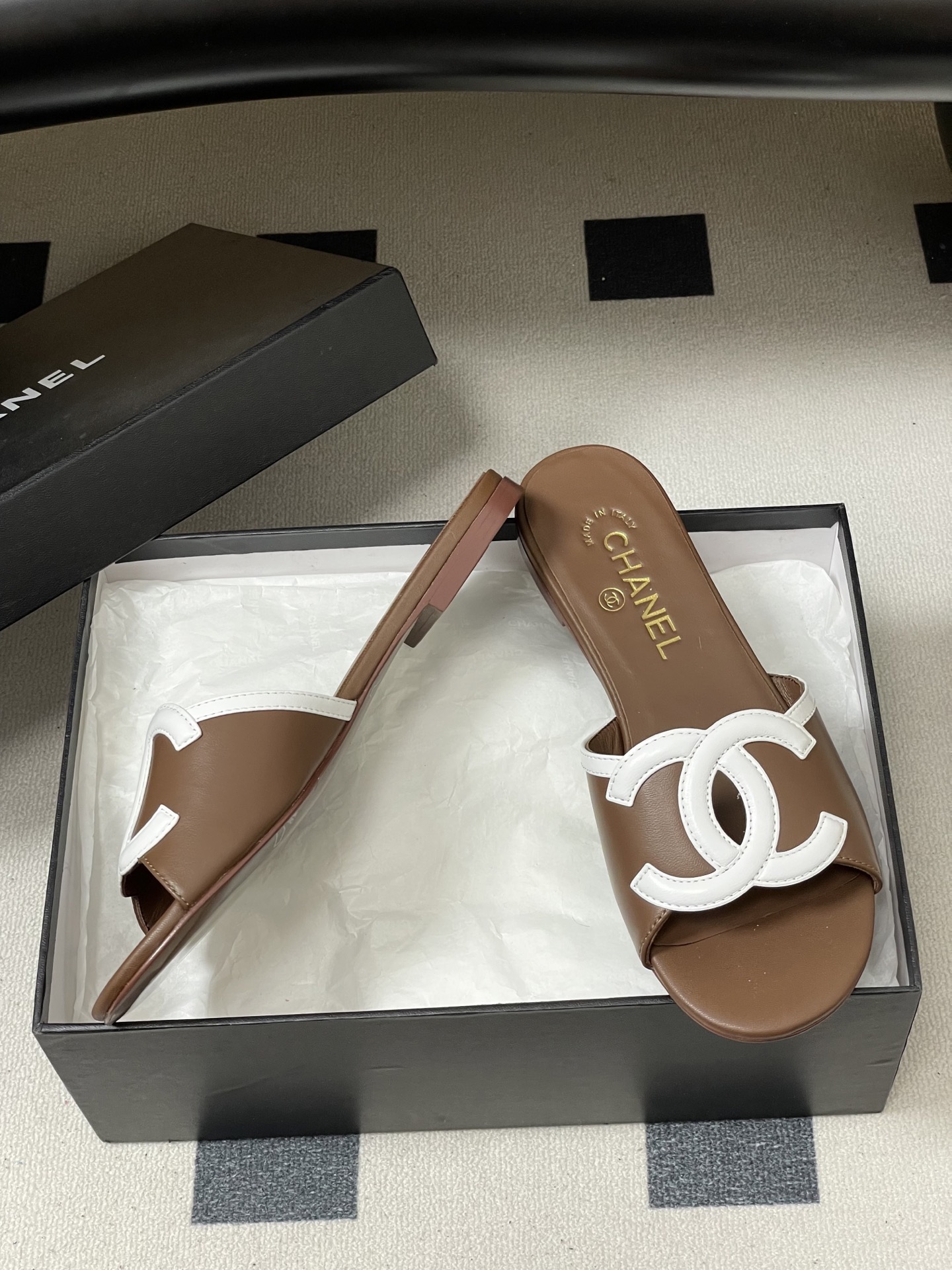 这款鞋子是AAAAA 1:1 质量 (非常棒). 使用了和原版一模一样的材料. 商标部分也保持了和香奈儿/Chanel一样. 图片拍摄是实物鞋子拍摄, 您所收到的实物保证和我们图片一模一样.
