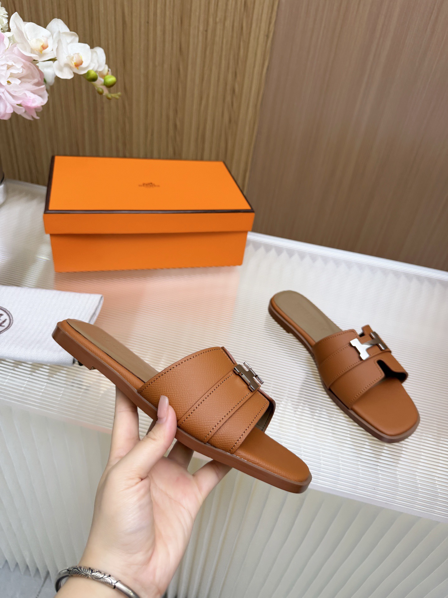 这款鞋子是AAAAA 1:1 质量 (非常棒). 使用了和原版一模一样的材料. 商标部分也保持了和爱马仕/Hermes一样. 图片拍摄是实物鞋子拍摄, 您所收到的实物保证和我们图片一模一样.
