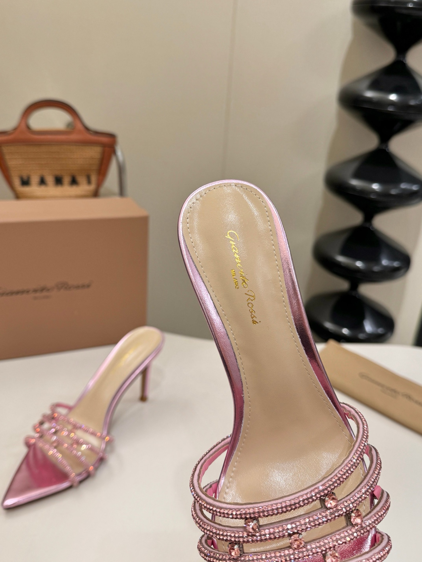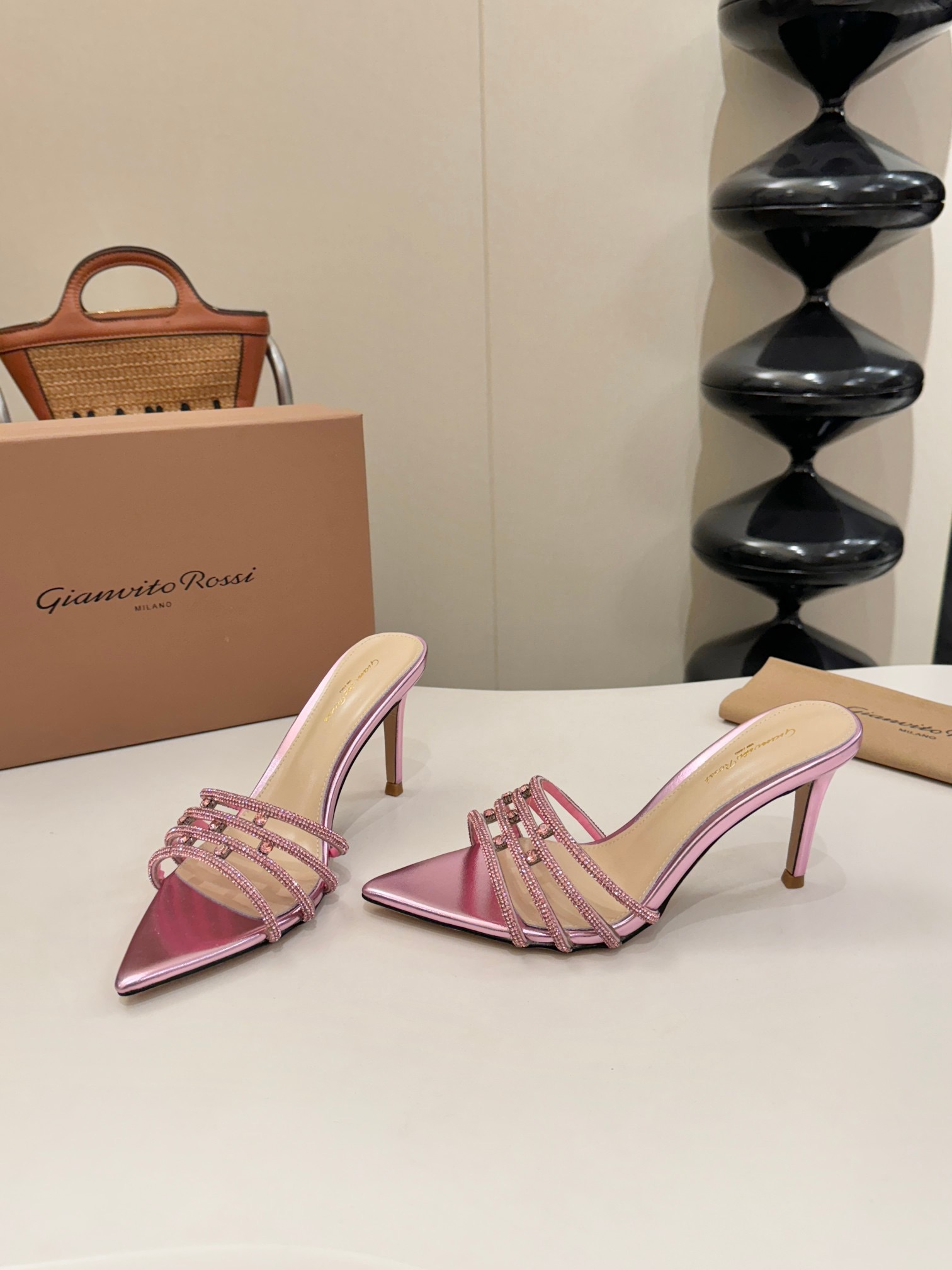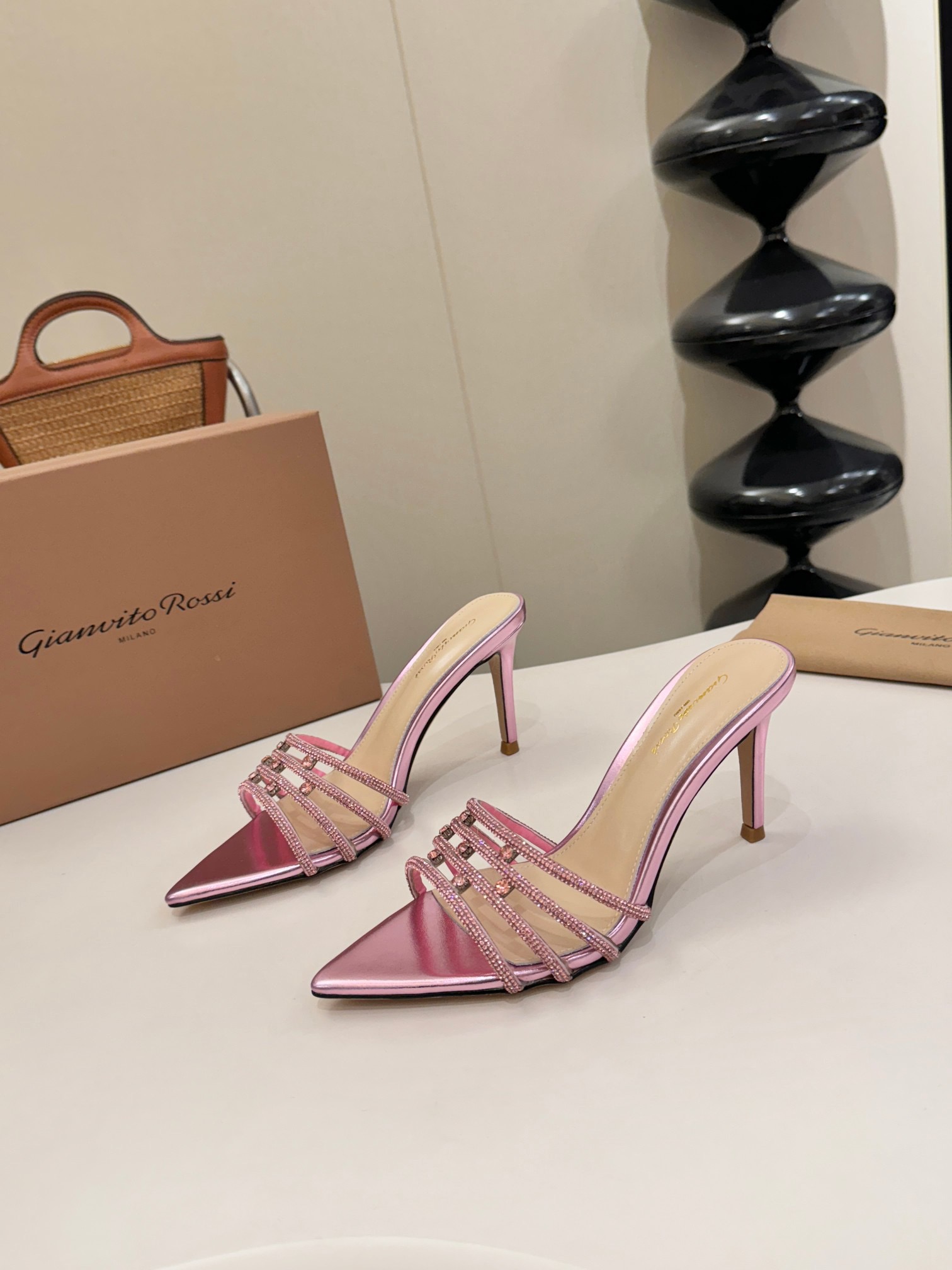 这款鞋子是AAAAA 1:1 质量 (非常棒). 使用了和原版一模一样的材料. 商标部分也保持了和Gianvito Rossi一样. 图片拍摄是实物鞋子拍摄, 您所收到的实物保证和我们图片一模一样.