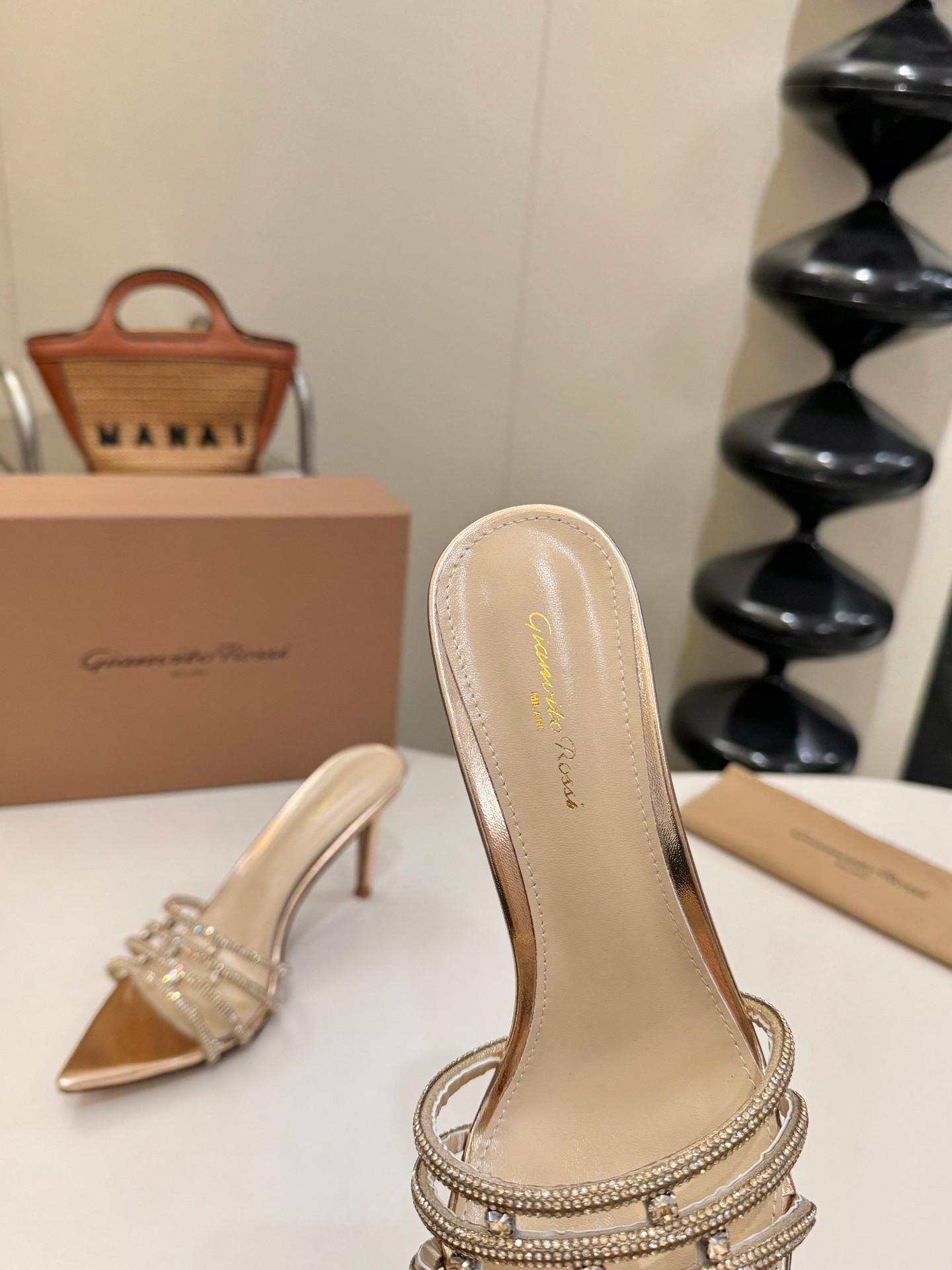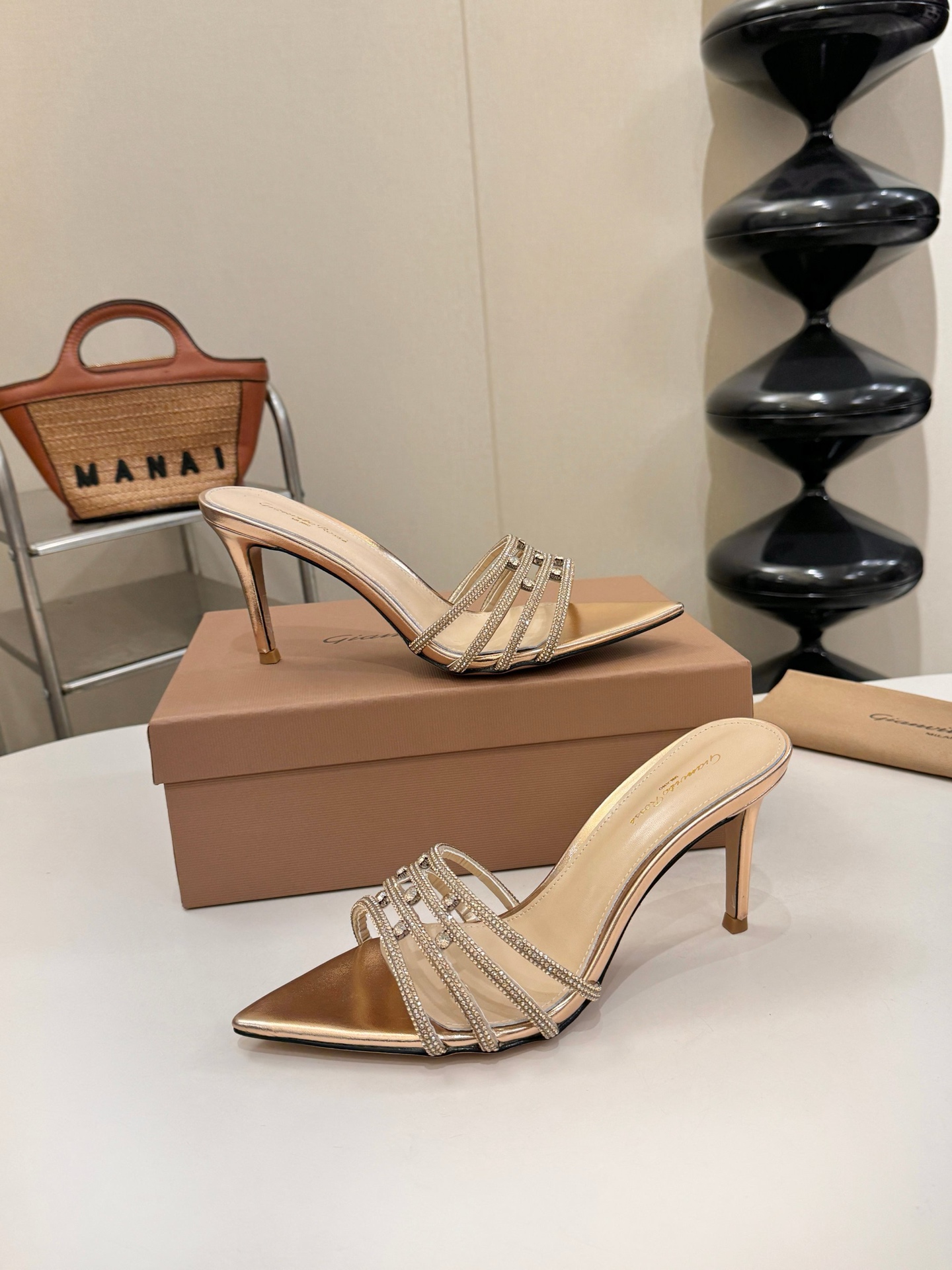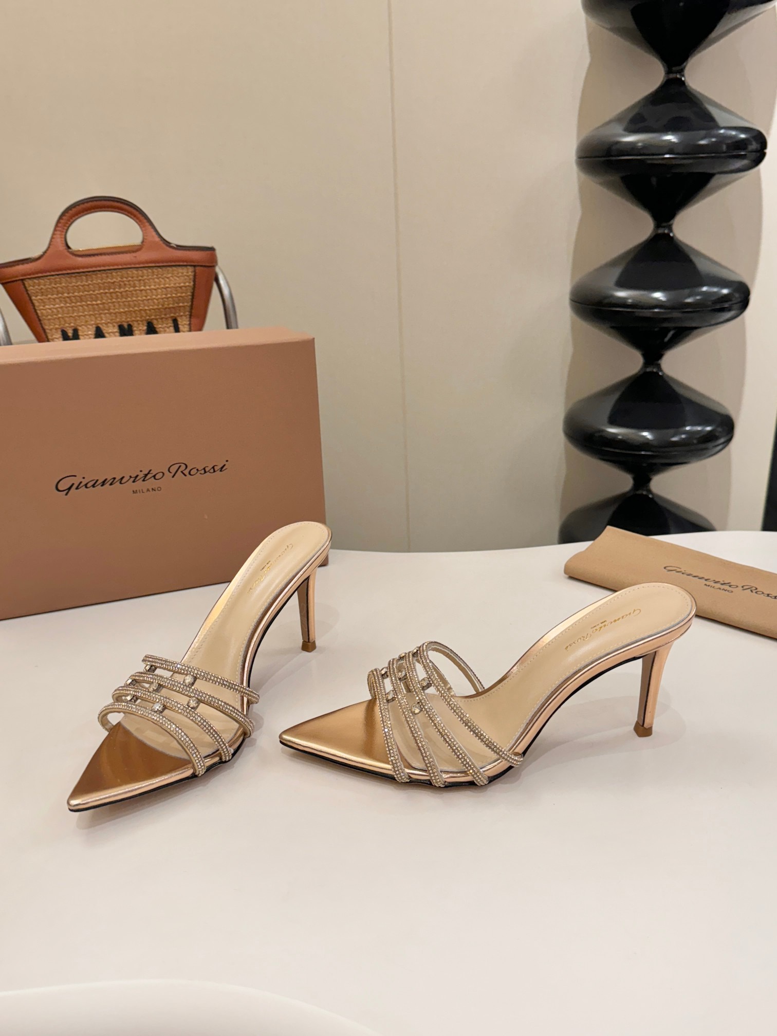 这款鞋子是AAAAA 1:1 质量 (非常棒). 使用了和原版一模一样的材料. 商标部分也保持了和Gianvito Rossi一样. 图片拍摄是实物鞋子拍摄, 您所收到的实物保证和我们图片一模一样.