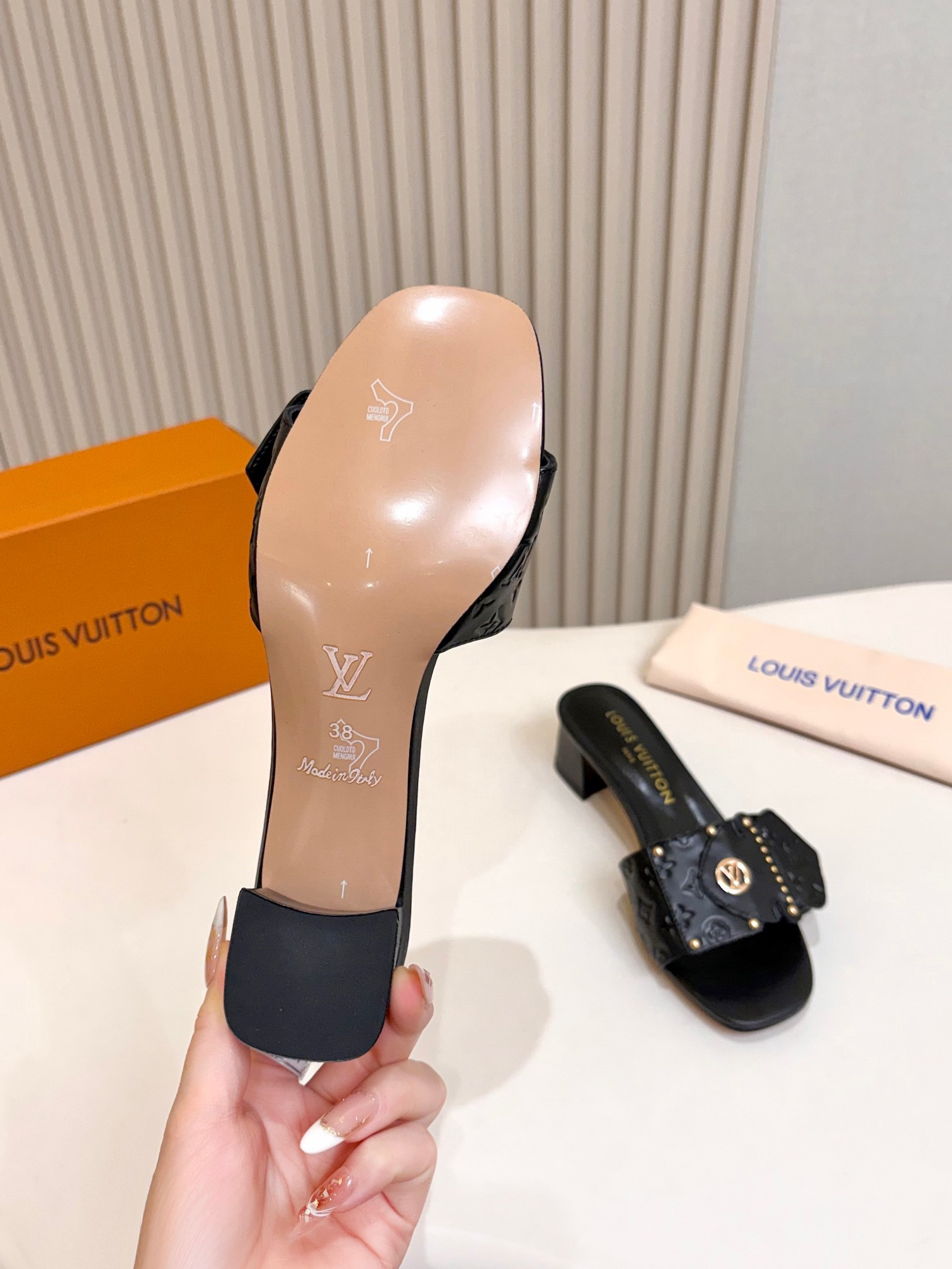这款鞋子是AAAAA 1:1 质量 (非常棒). 使用了和原版一模一样的材料. 商标部分也保持了和路易威登/Louis Vuitton一样. 图片拍摄是实物鞋子拍摄, 您所收到的实物保证和我们图片一模一样.