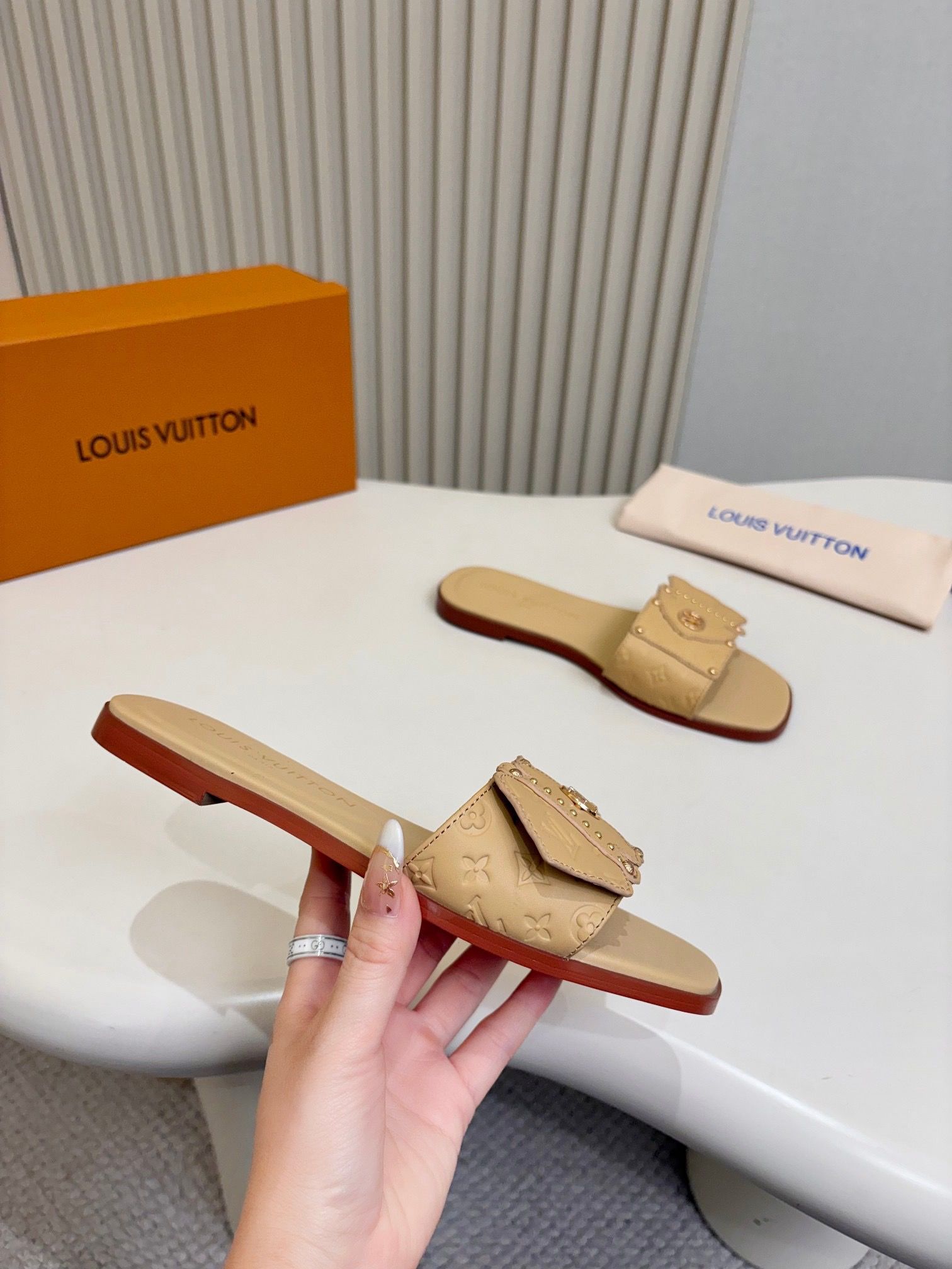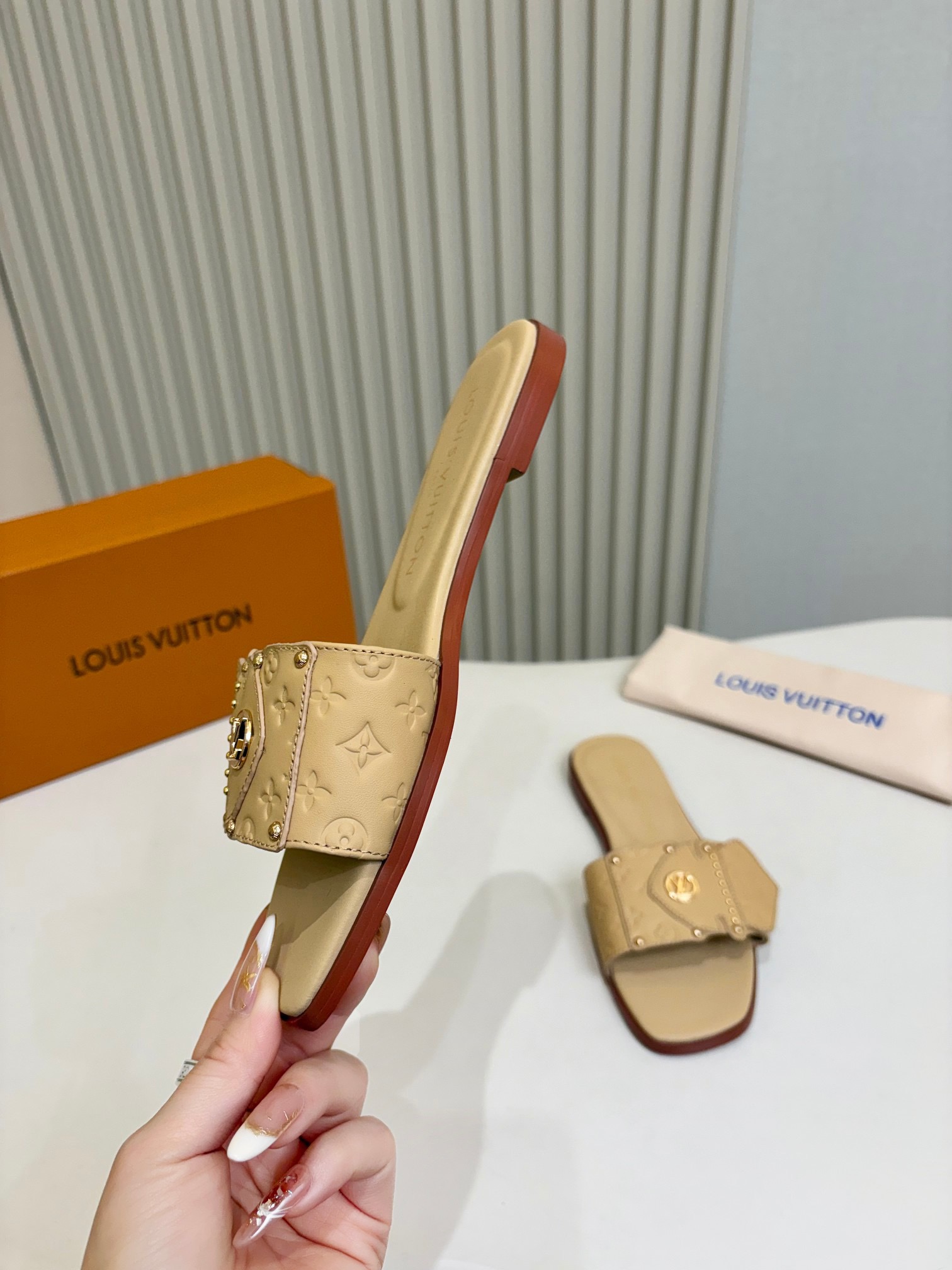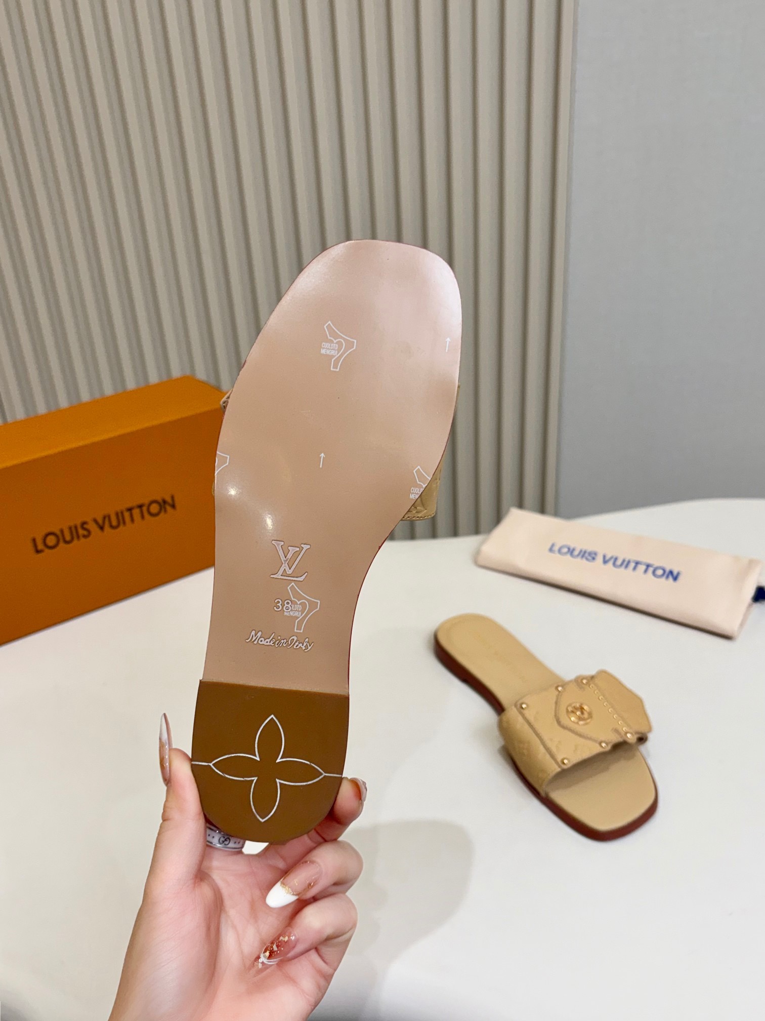这款鞋子是AAAAA 1:1 质量 (非常棒). 使用了和原版一模一样的材料. 商标部分也保持了和路易威登/Louis Vuitton一样. 图片拍摄是实物鞋子拍摄, 您所收到的实物保证和我们图片一模一样.