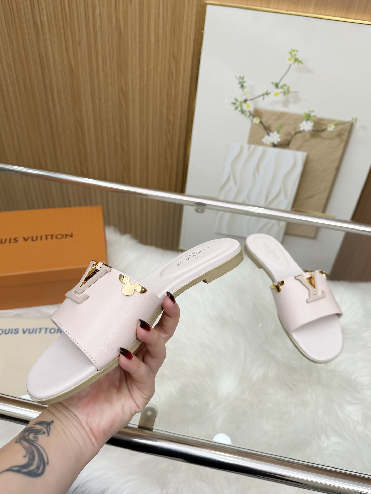 这款鞋子是AAAAA 1:1 质量 (非常棒). 使用了和原版一模一样的材料. 商标部分也保持了和路易威登/Louis Vuitton一样. 图片拍摄是实物鞋子拍摄, 您所收到的实物保证和我们图片一模一样.
