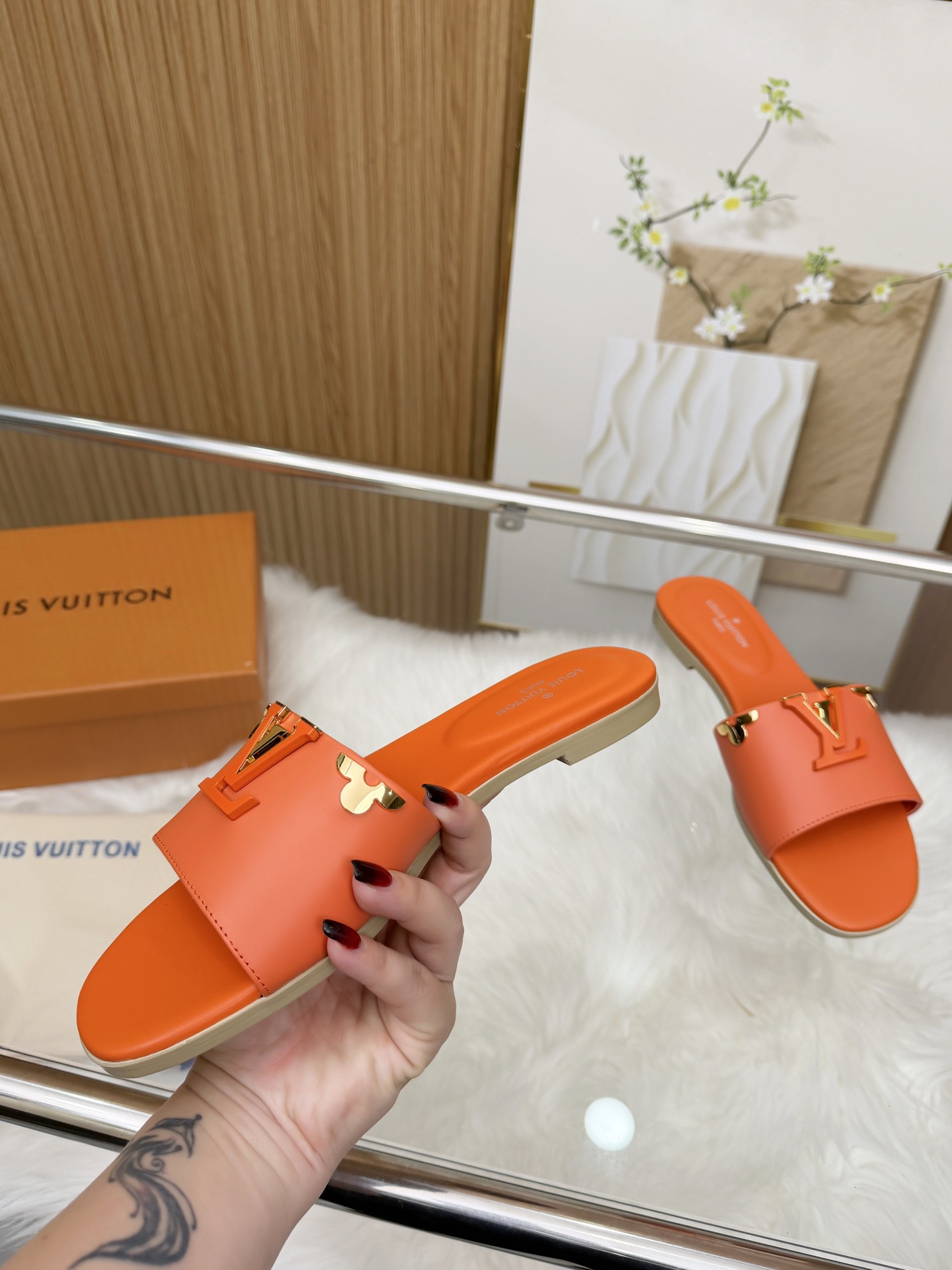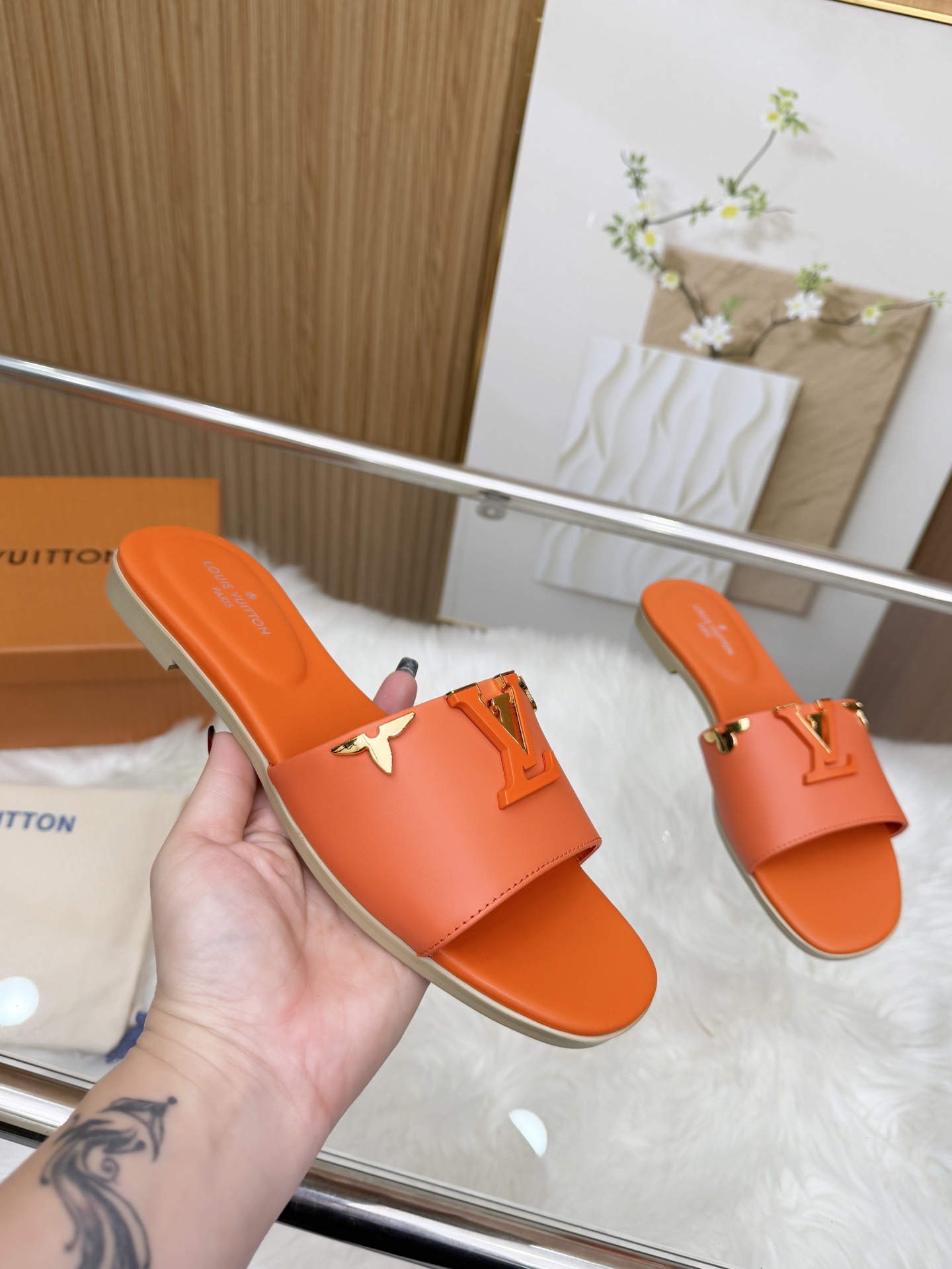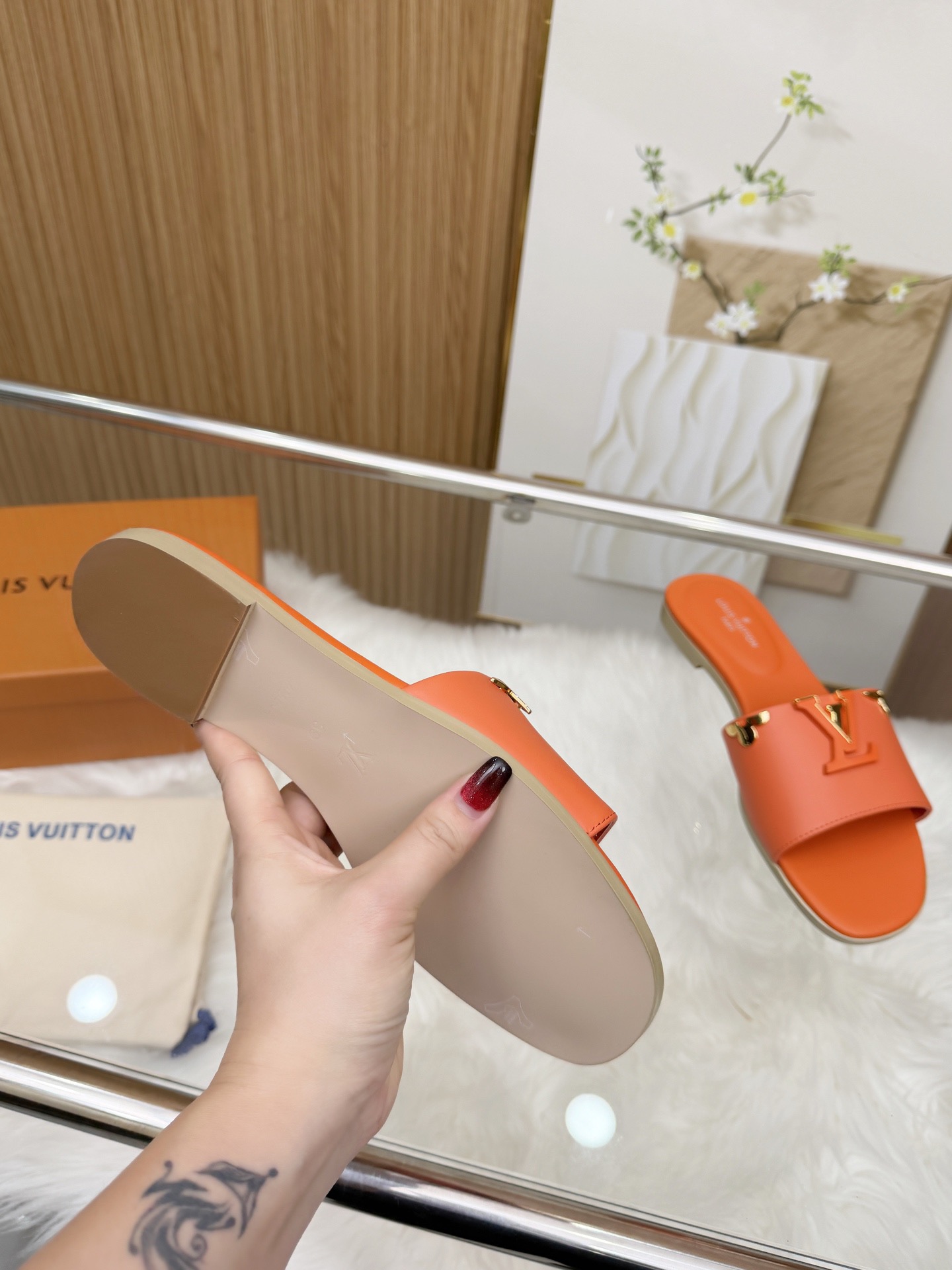 这款鞋子是AAAAA 1:1 质量 (非常棒). 使用了和原版一模一样的材料. 商标部分也保持了和路易威登/Louis Vuitton一样. 图片拍摄是实物鞋子拍摄, 您所收到的实物保证和我们图片一模一样.