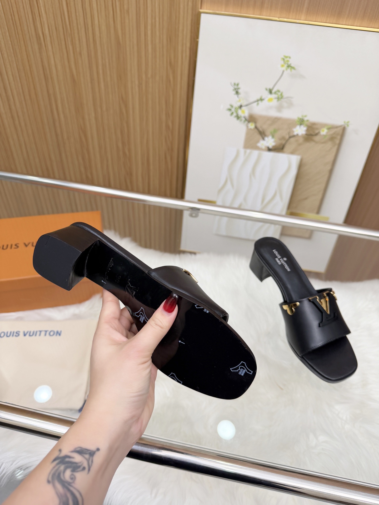 这款鞋子是AAAAA 1:1 质量 (非常棒). 使用了和原版一模一样的材料. 商标部分也保持了和路易威登/Louis Vuitton一样. 图片拍摄是实物鞋子拍摄, 您所收到的实物保证和我们图片一模一样.