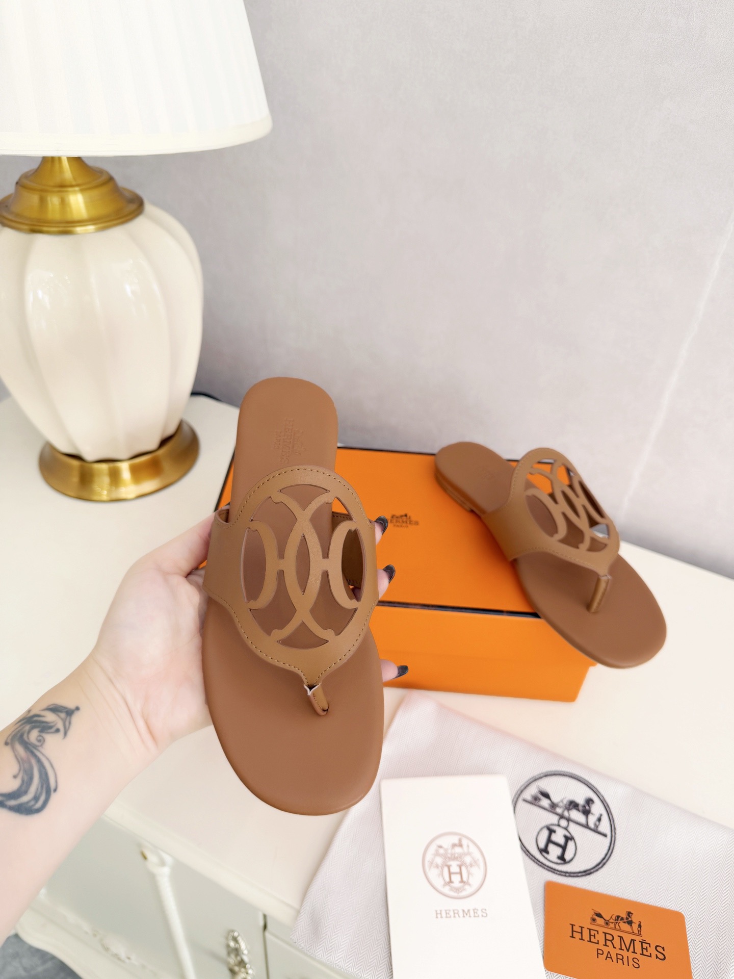 这款鞋子是AAAAA 1:1 质量 (非常棒). 使用了和原版一模一样的材料. 商标部分也保持了和爱马仕/Hermes一样. 图片拍摄是实物鞋子拍摄, 您所收到的实物保证和我们图片一模一样.