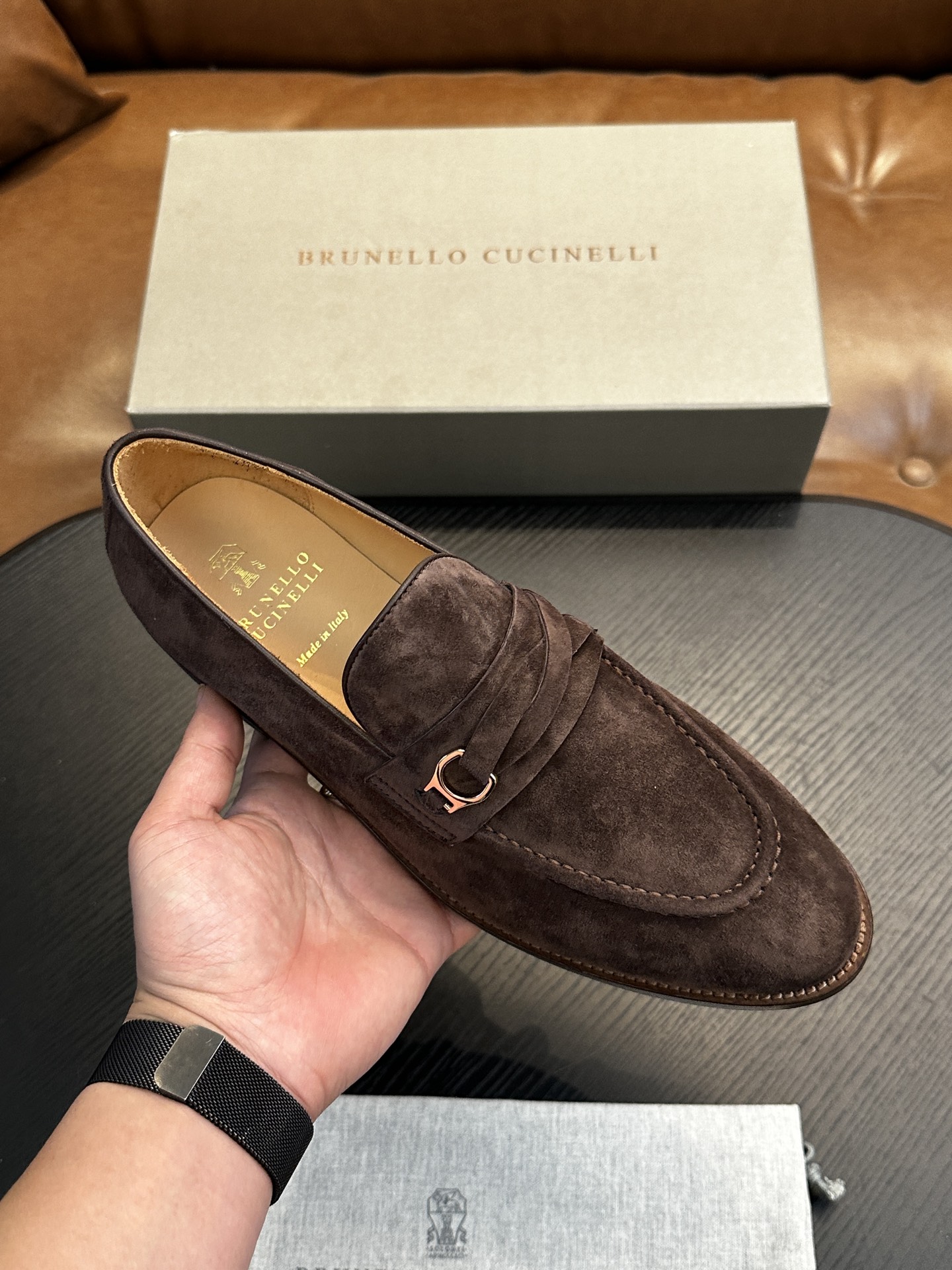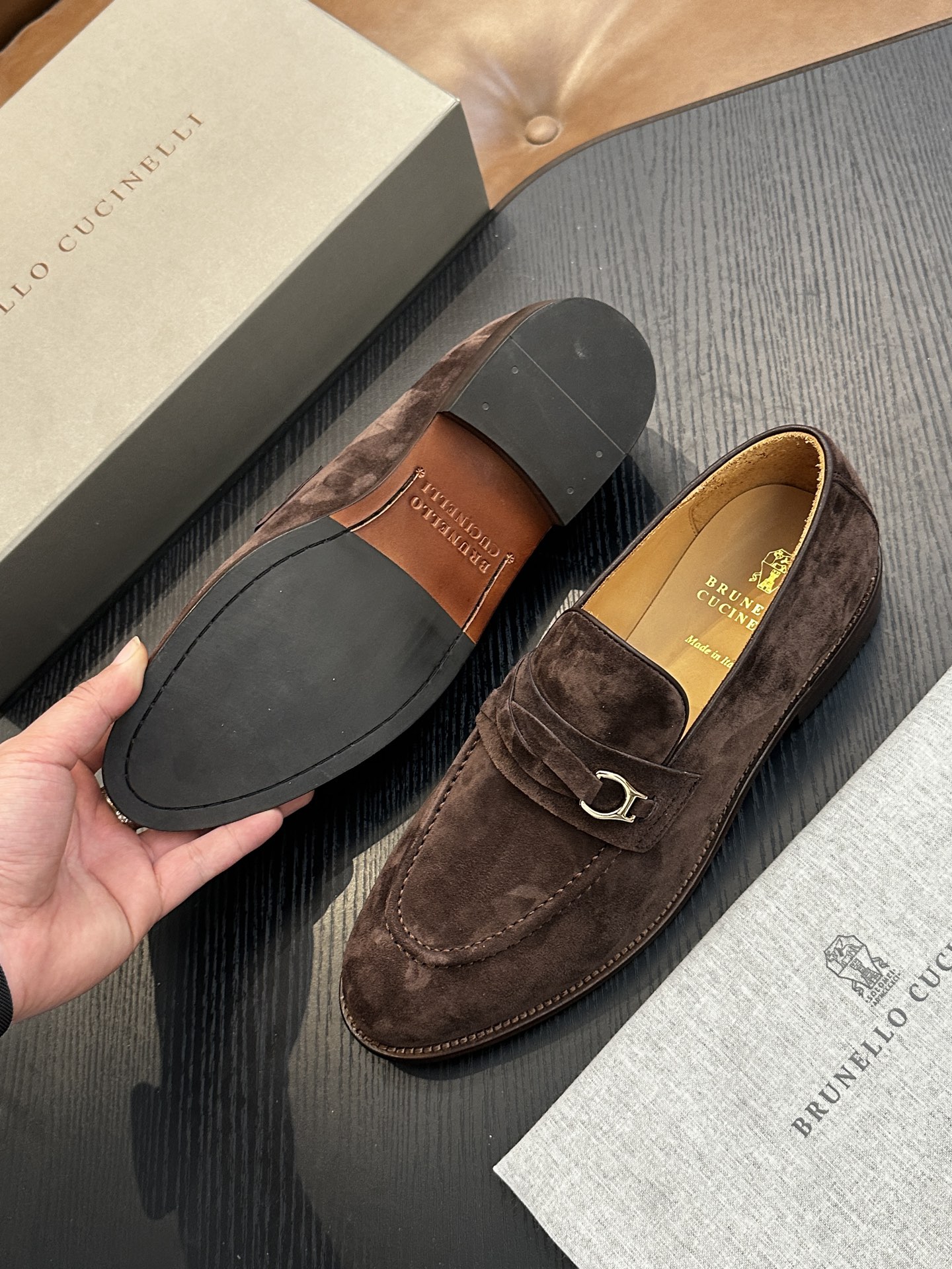 这款鞋子是AAAAA 1:1 质量 (非常棒). 使用了和原版一模一样的材料. 商标部分也保持了和Brunello Cucinelli一样. 图片拍摄是实物鞋子拍摄, 您所收到的实物保证和我们图片一模一样.