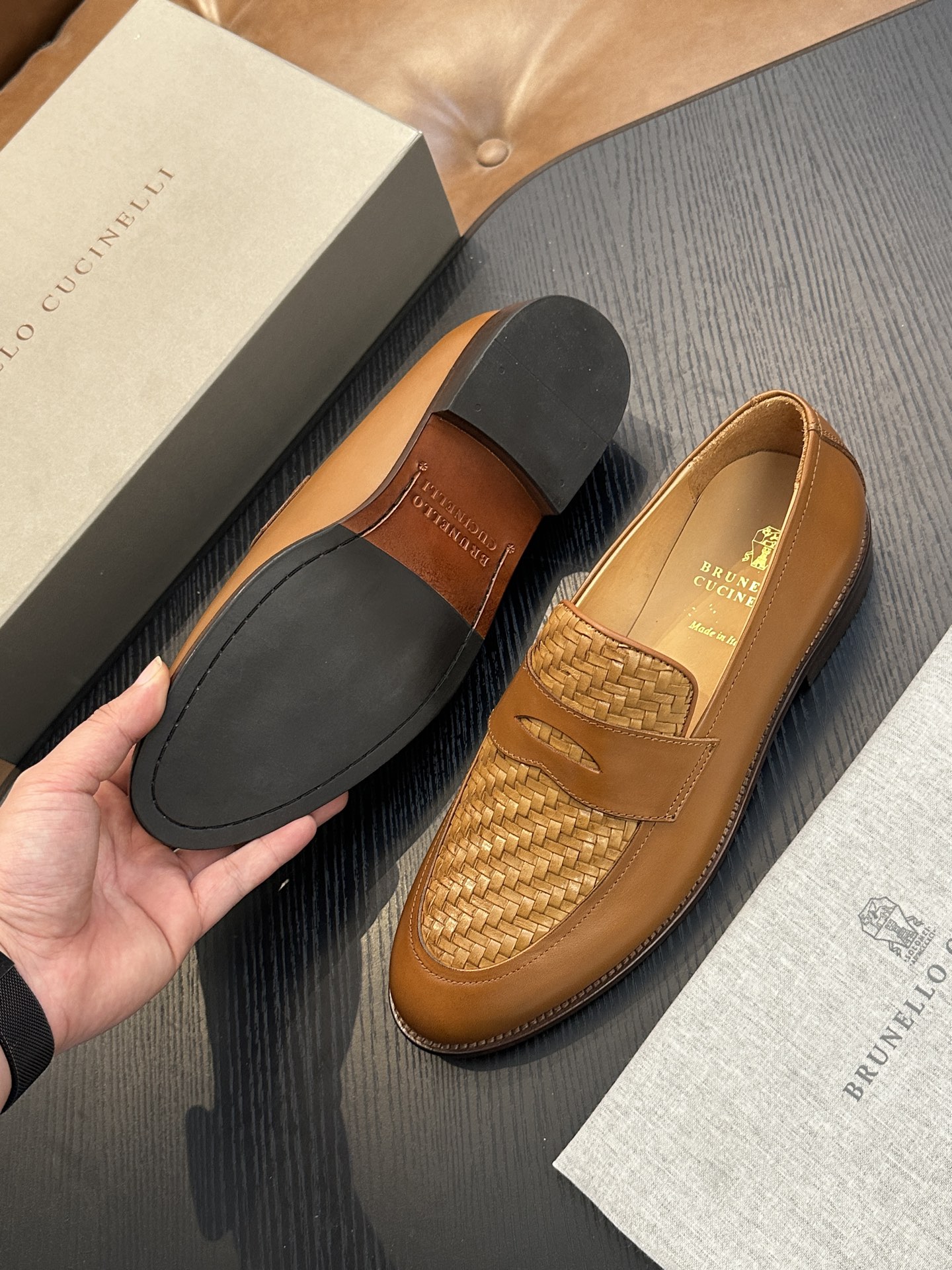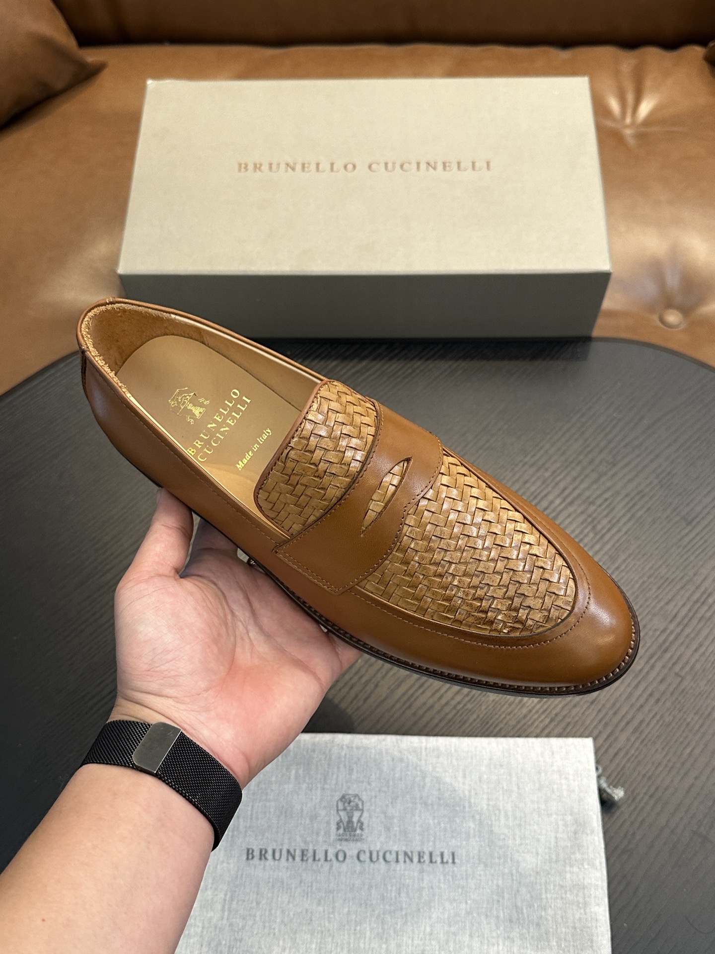 这款鞋子是AAAAA 1:1 质量 (非常棒). 使用了和原版一模一样的材料. 商标部分也保持了和Brunello Cucinelli一样. 图片拍摄是实物鞋子拍摄, 您所收到的实物保证和我们图片一模一样.