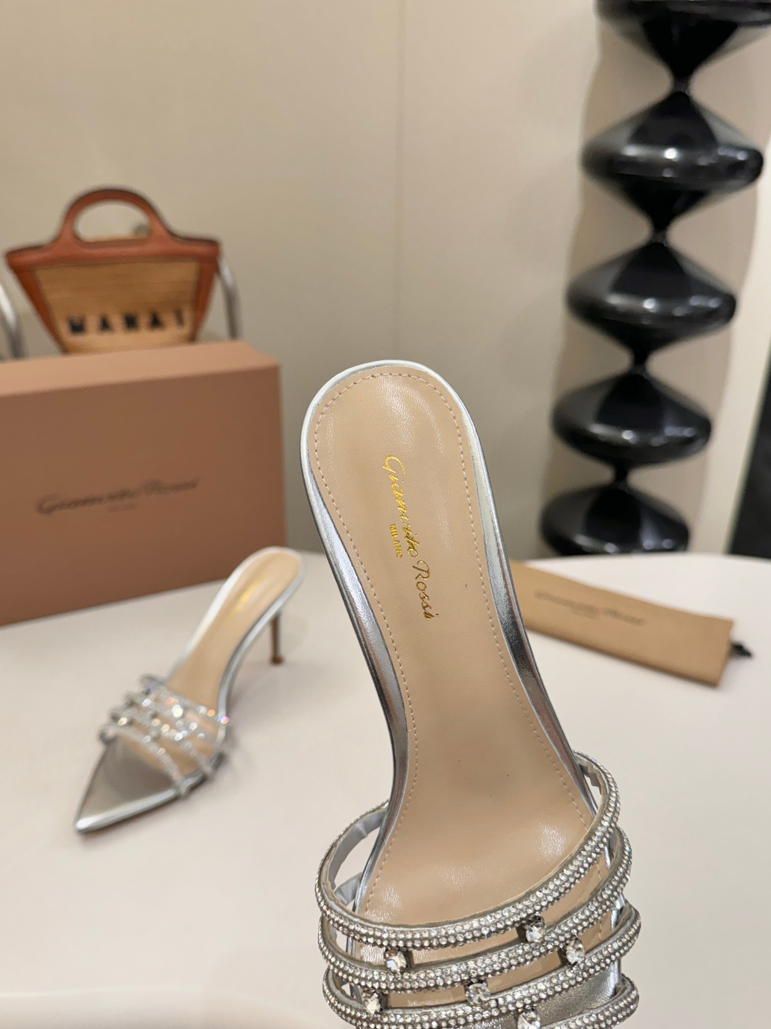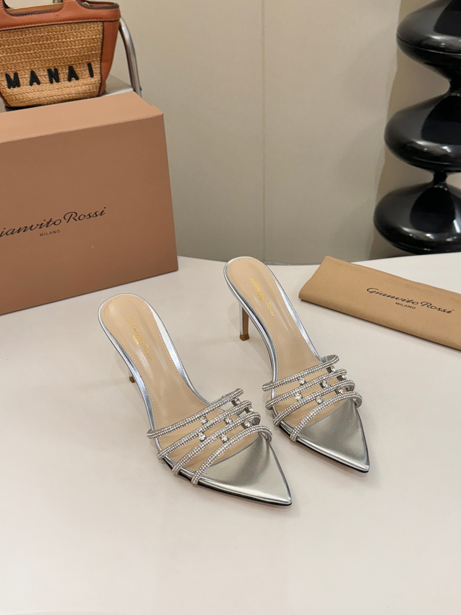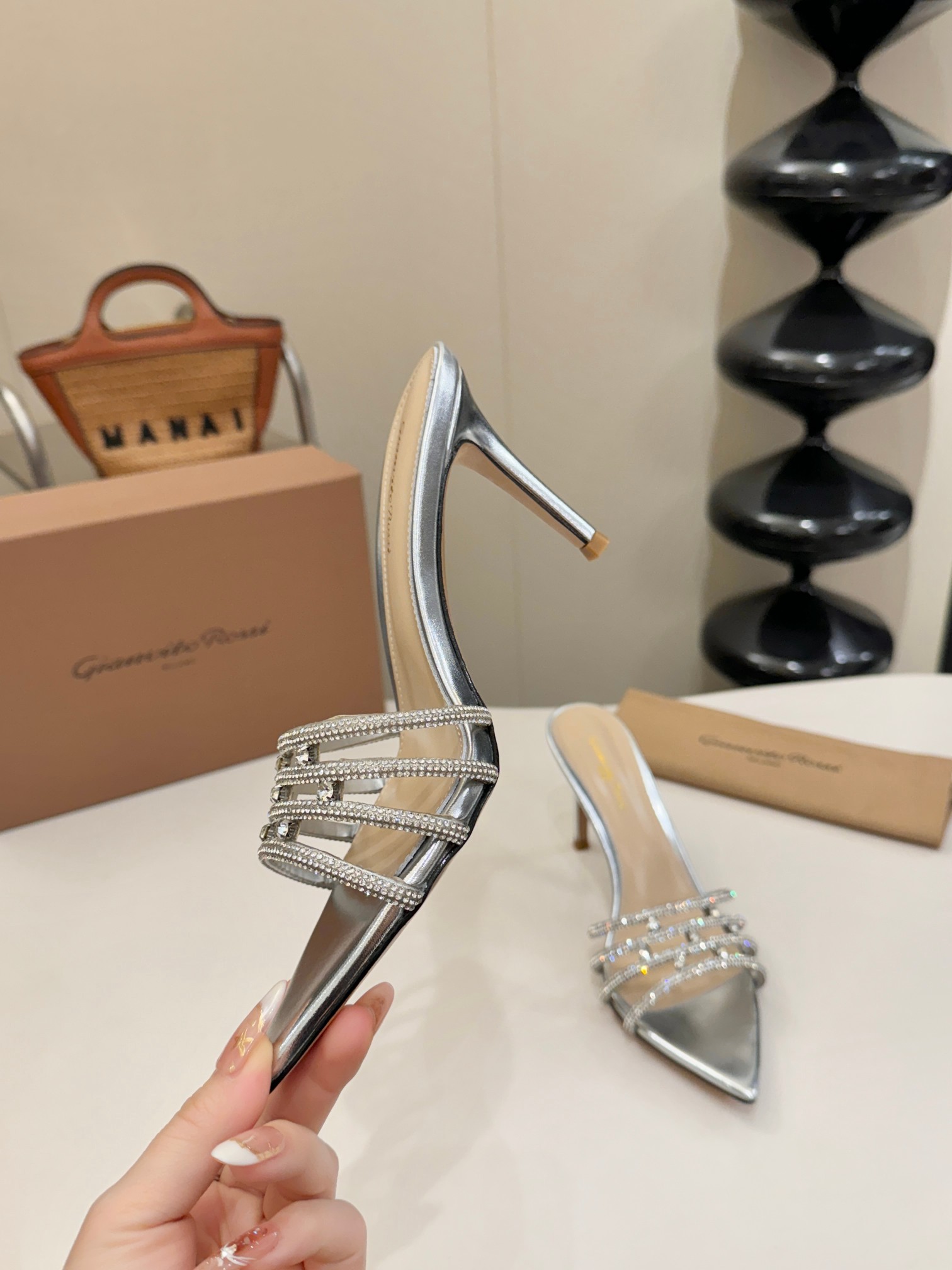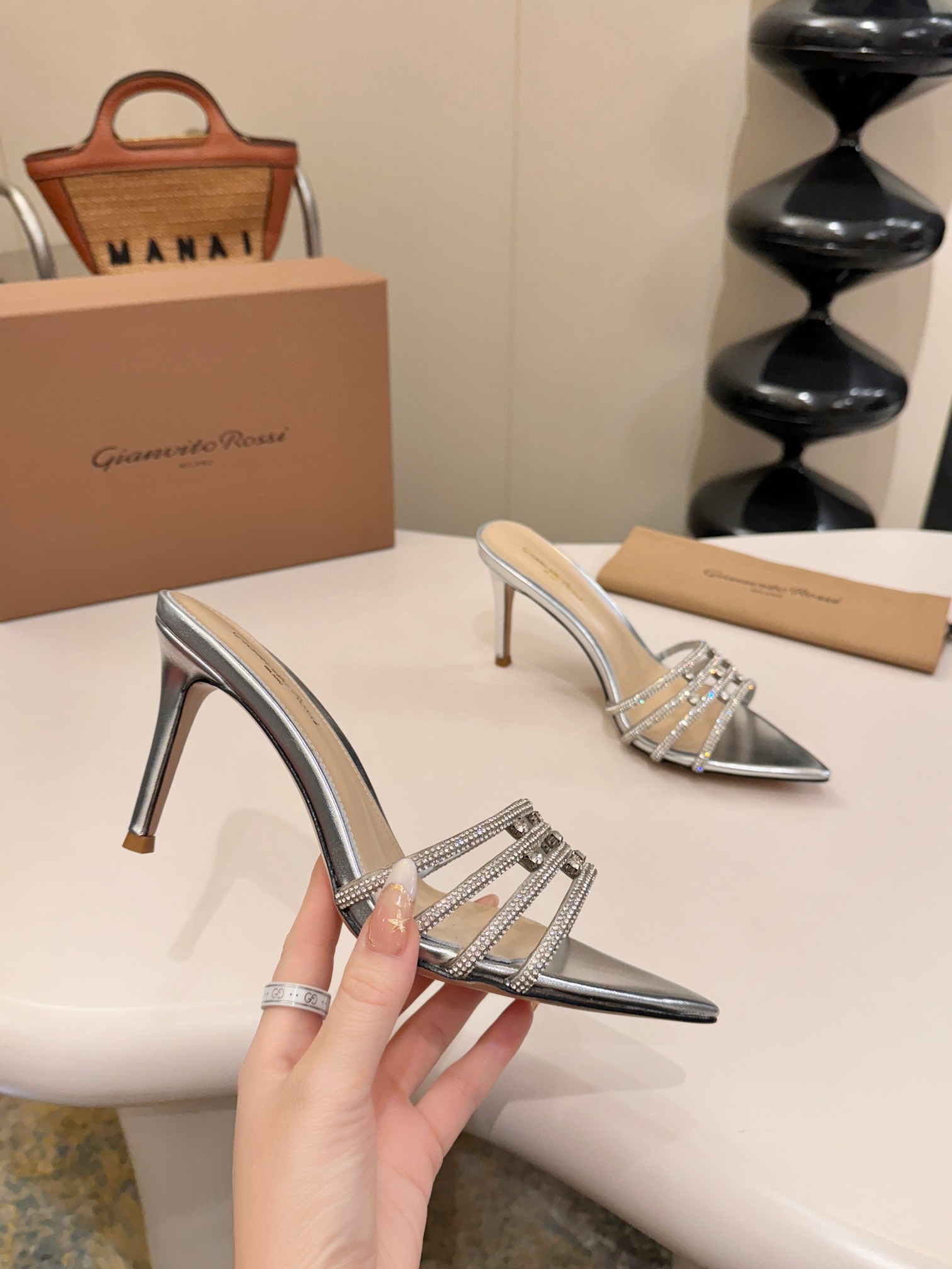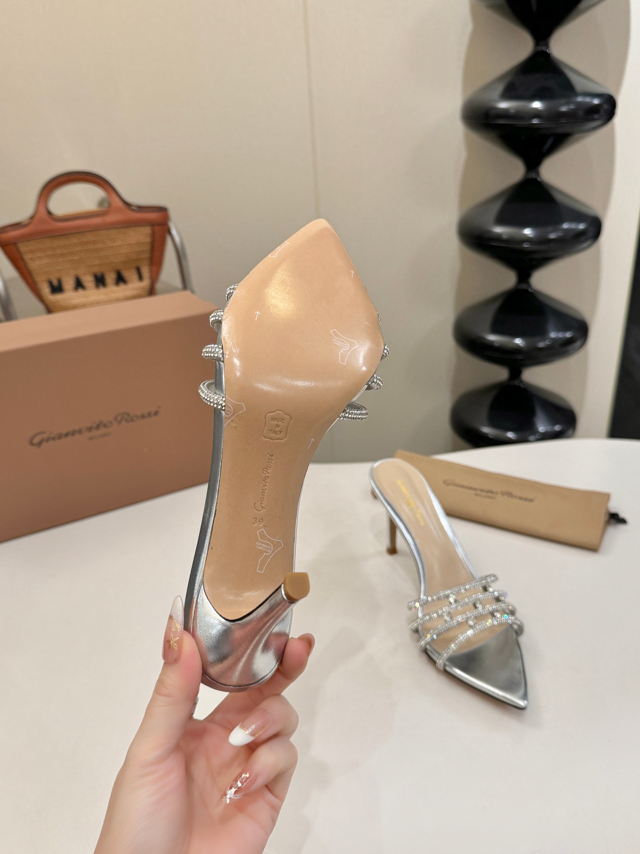这款鞋子是AAAAA 1:1 质量 (非常棒). 使用了和原版一模一样的材料. 商标部分也保持了和Gianvito Rossi一样. 图片拍摄是实物鞋子拍摄, 您所收到的实物保证和我们图片一模一样.