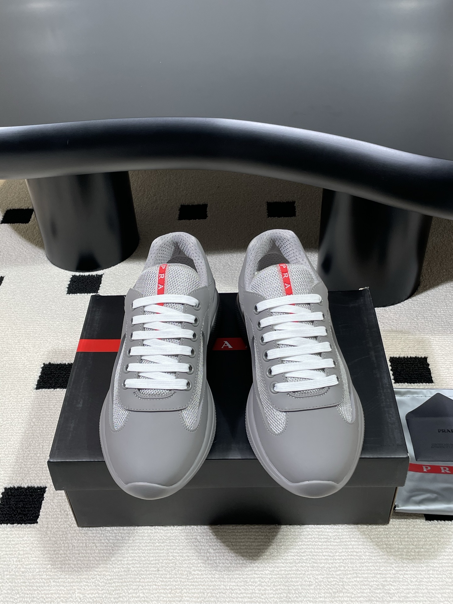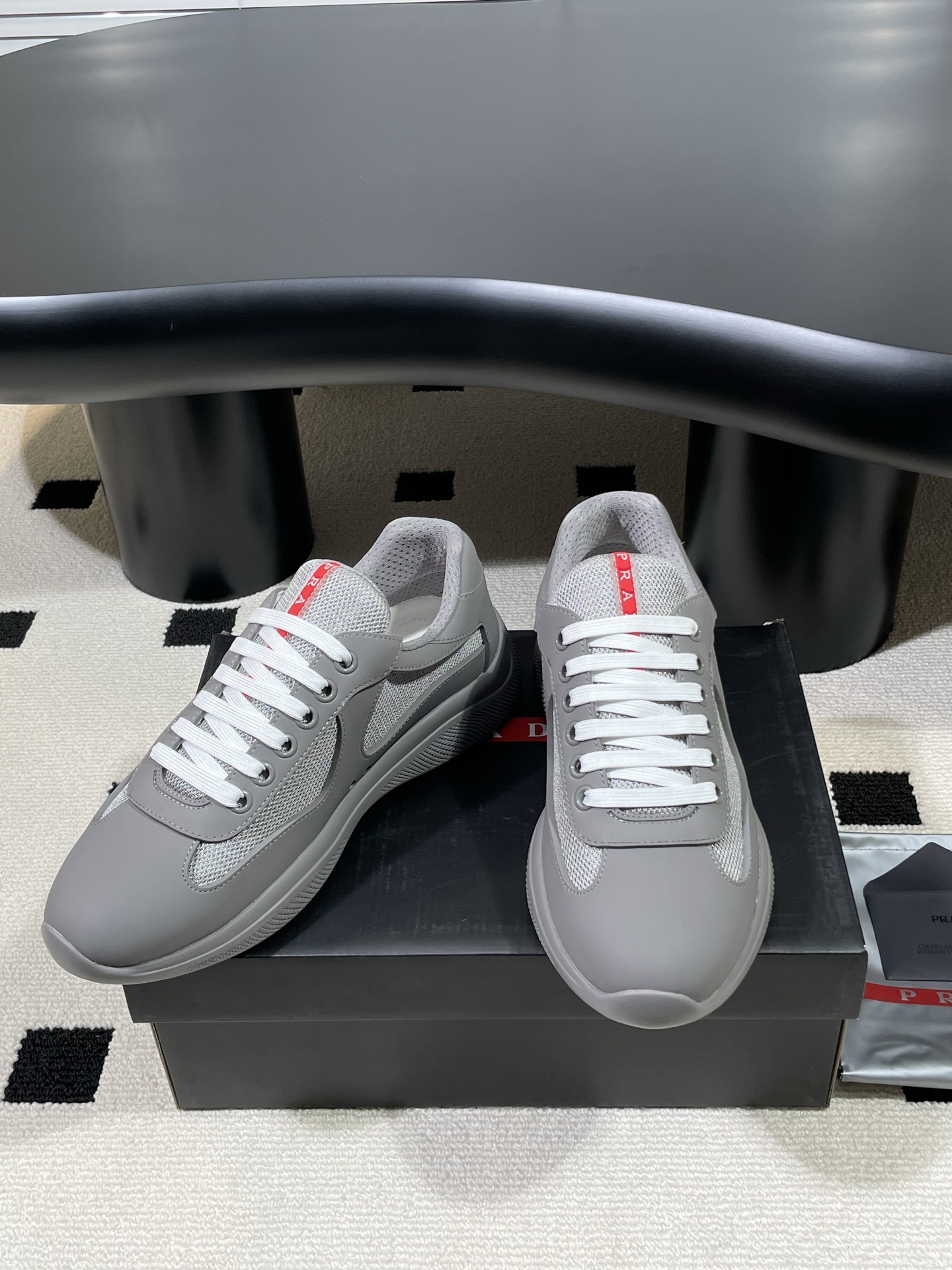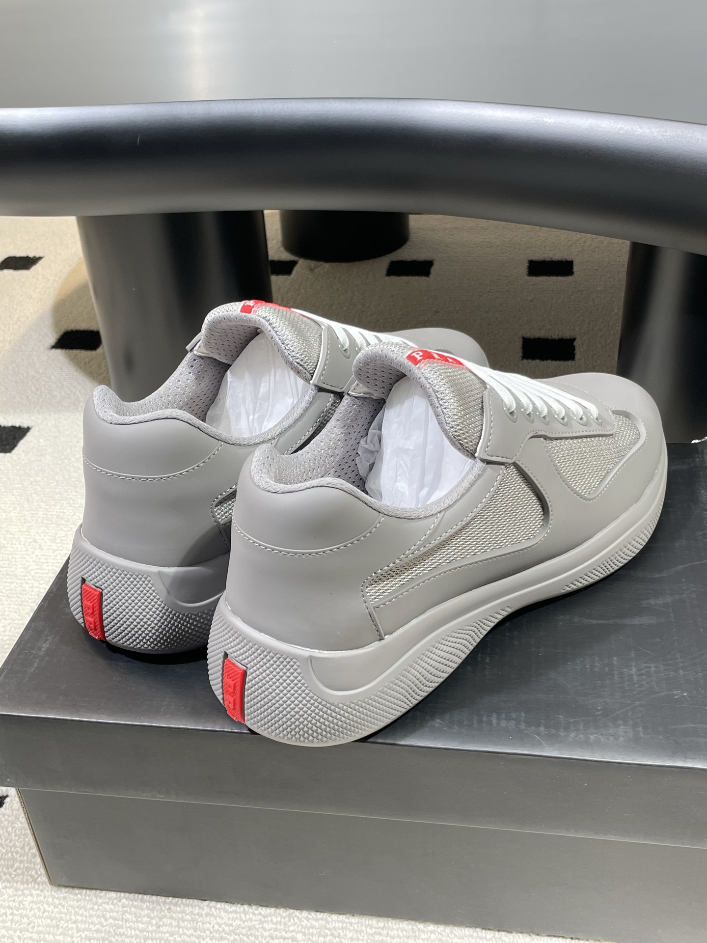 这款鞋子是AAAAA 1:1 质量 (非常棒). 使用了和原版一模一样的材料. 商标部分也保持了和普拉达/Prada一样. 图片拍摄是实物鞋子拍摄, 您所收到的实物保证和我们图片一模一样.