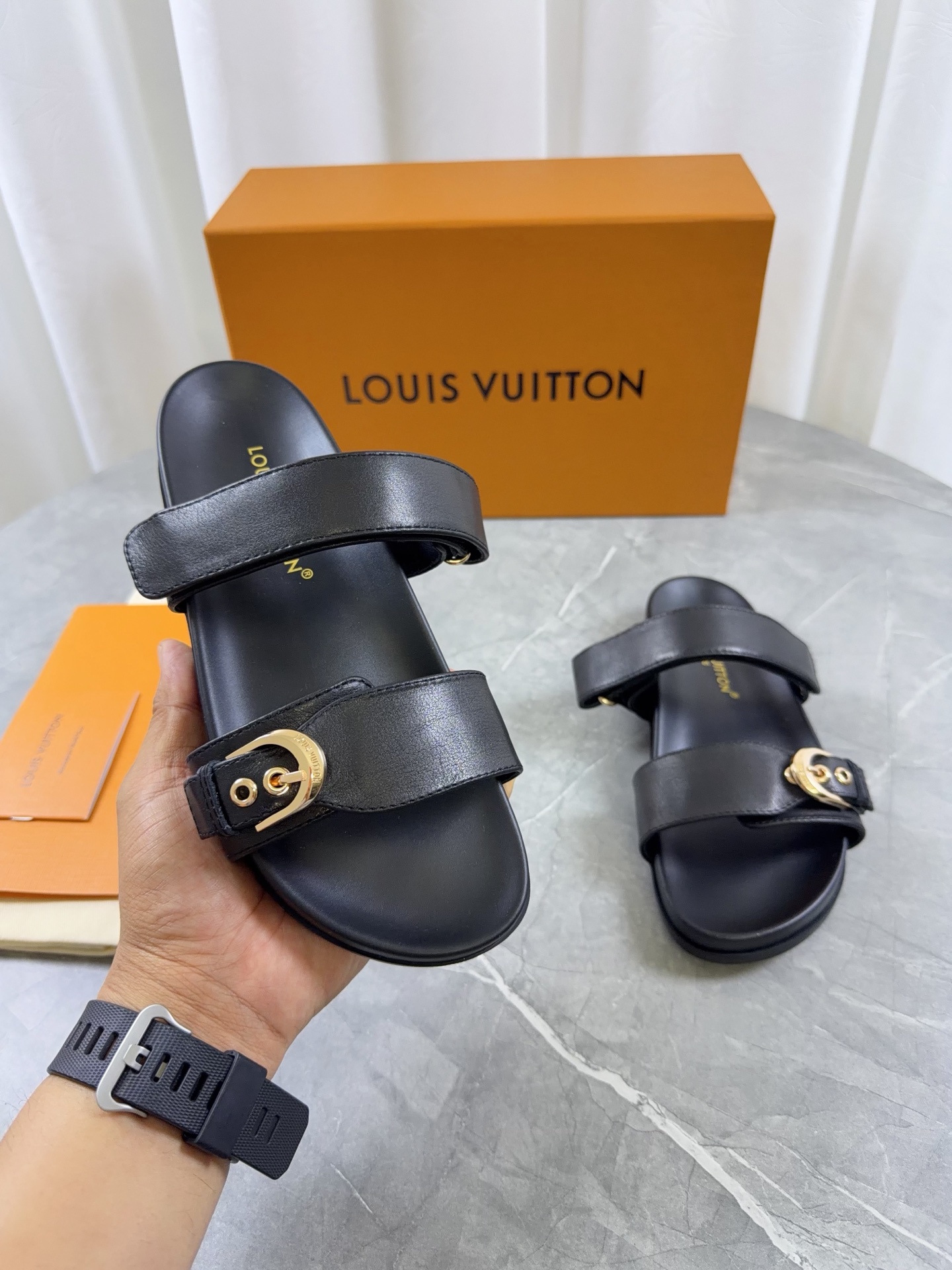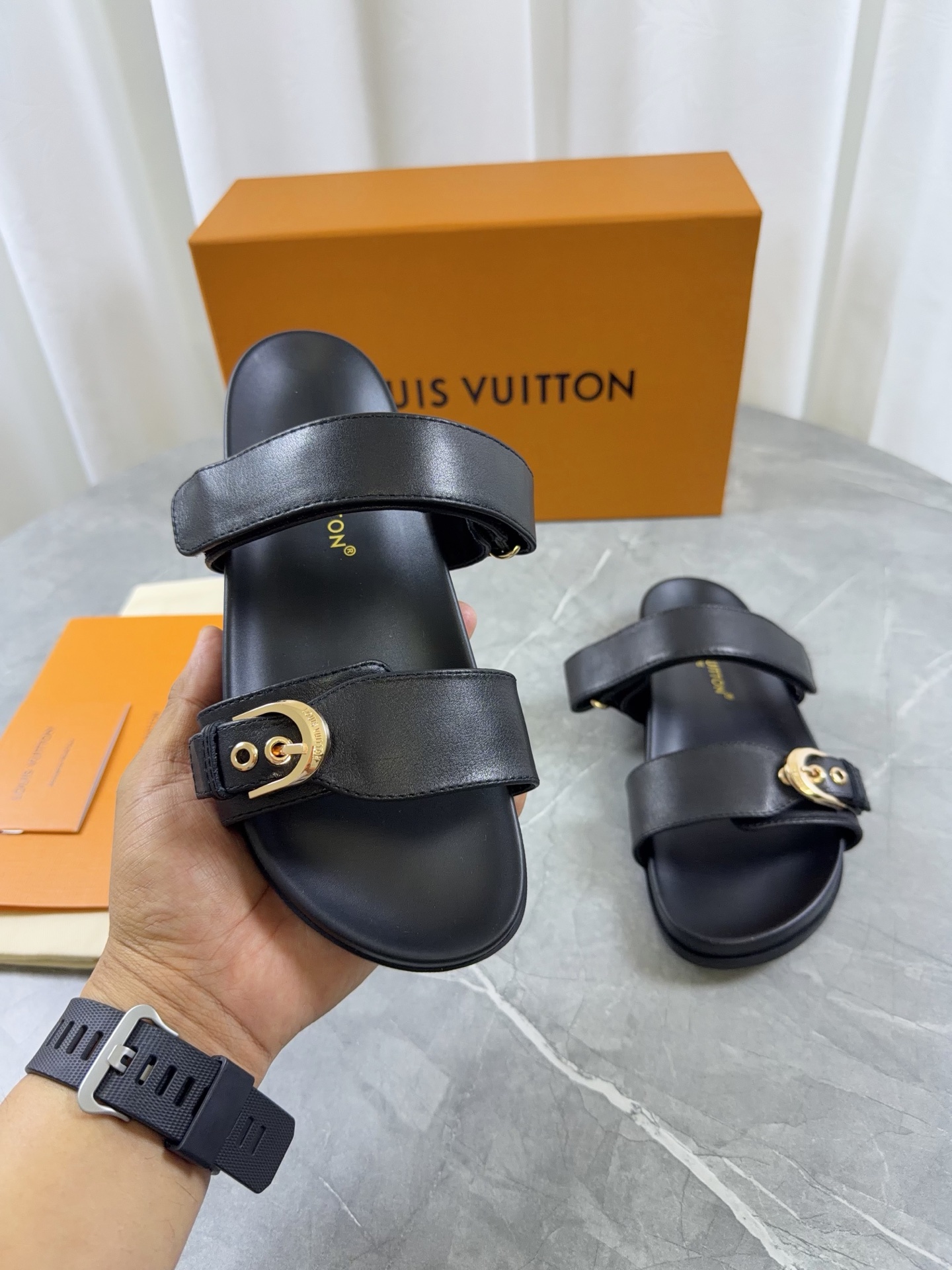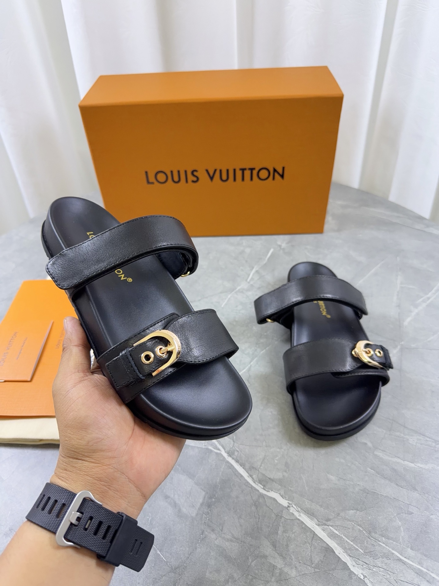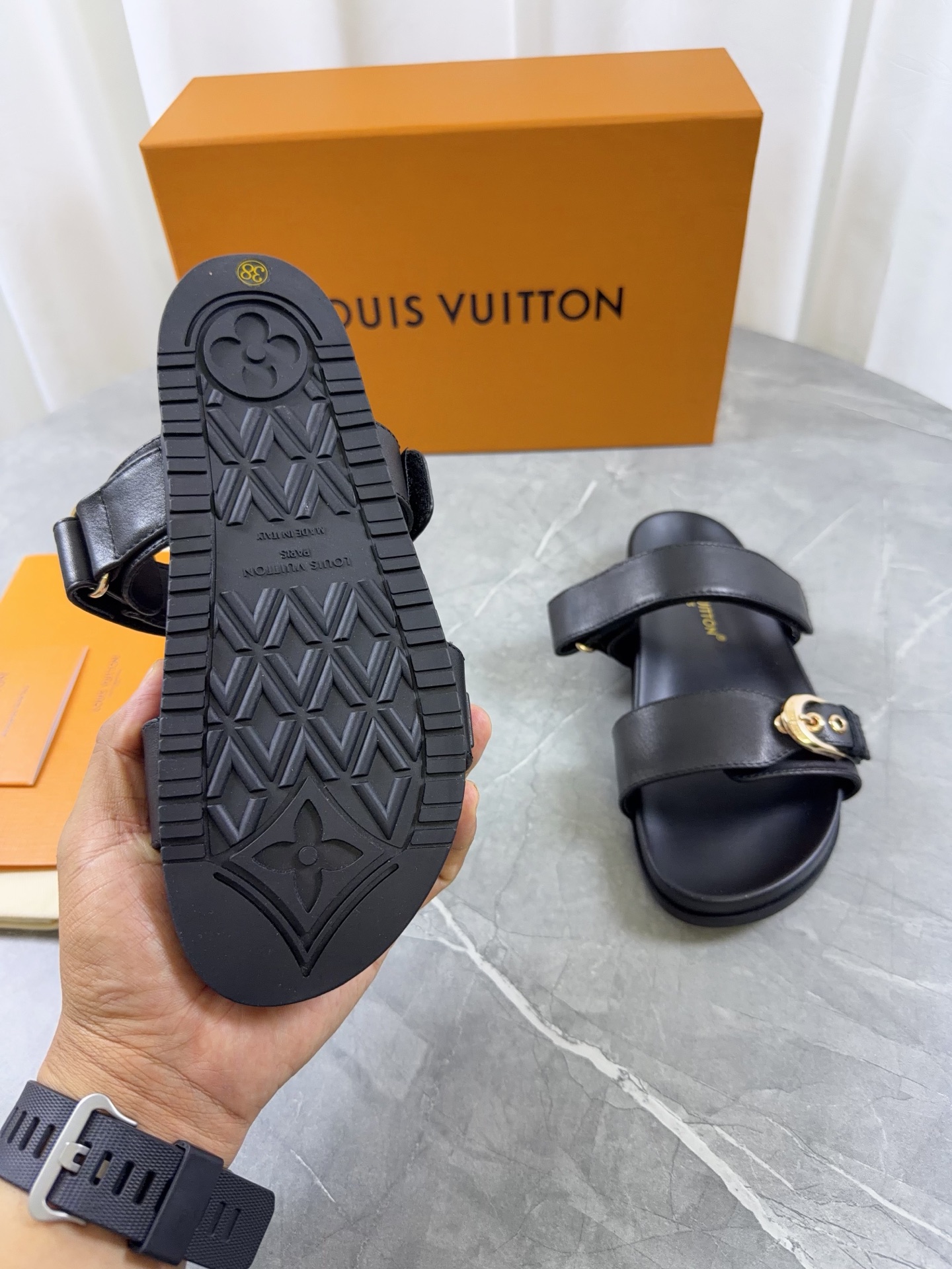 这款鞋子是AAAAA 1:1 质量 (非常棒). 使用了和原版一模一样的材料. 商标部分也保持了和路易威登/Louis Vuitton一样. 图片拍摄是实物鞋子拍摄, 您所收到的实物保证和我们图片一模一样.