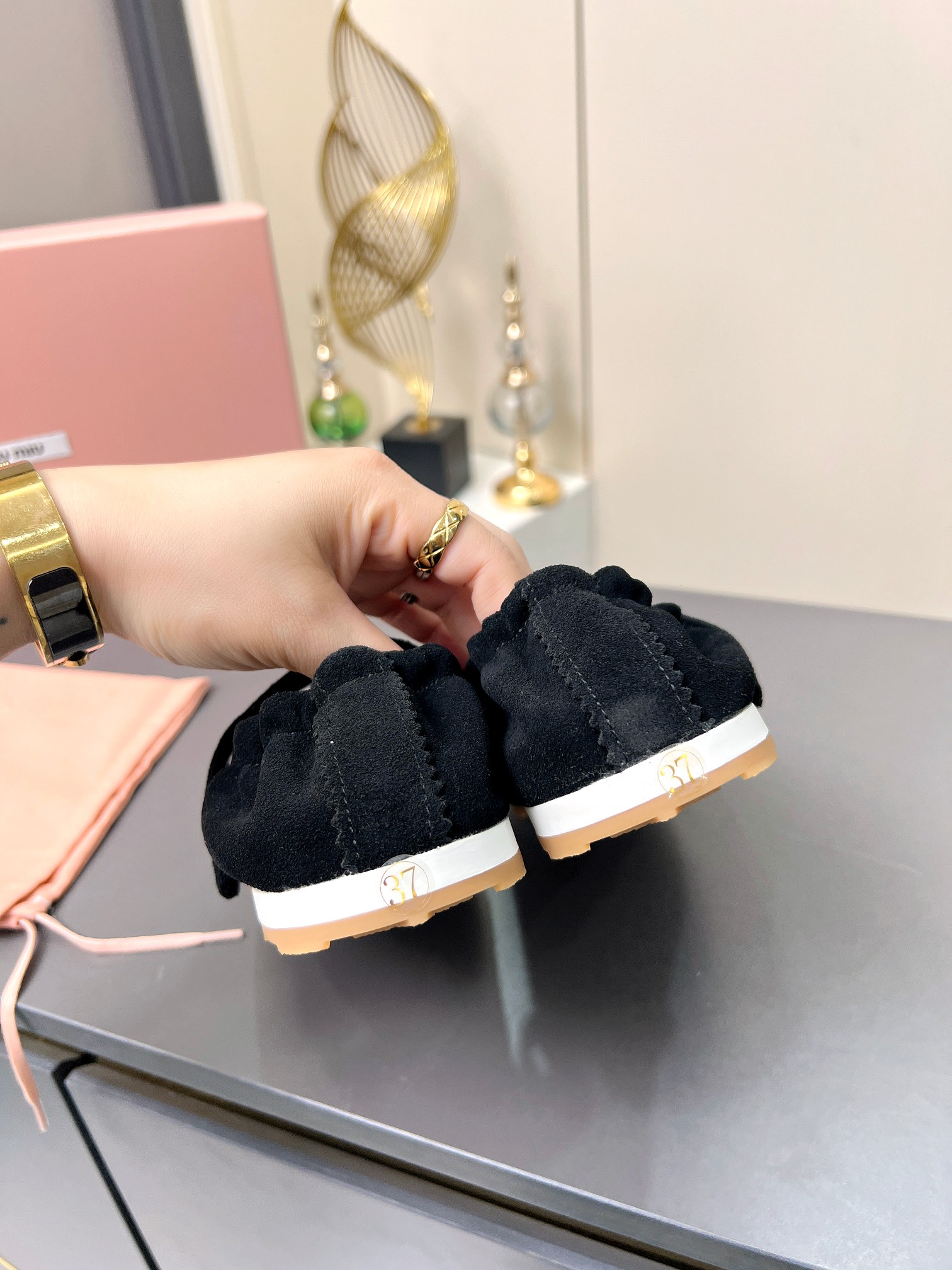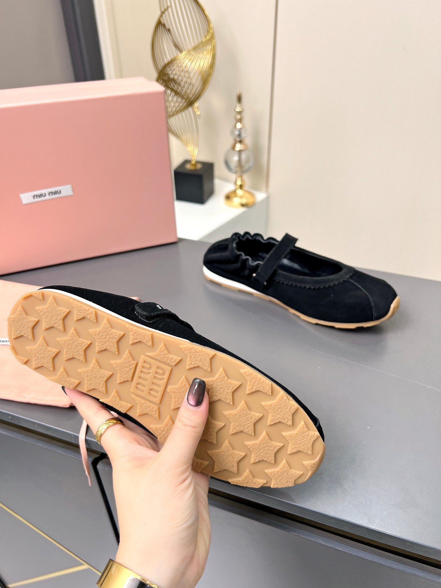 这款鞋子是AAAAA 1:1 质量 (非常棒). 使用了和原版一模一样的材料. 商标部分也保持了和缪缪/Miu Miu一样. 图片拍摄是实物鞋子拍摄, 您所收到的实物保证和我们图片一模一样.