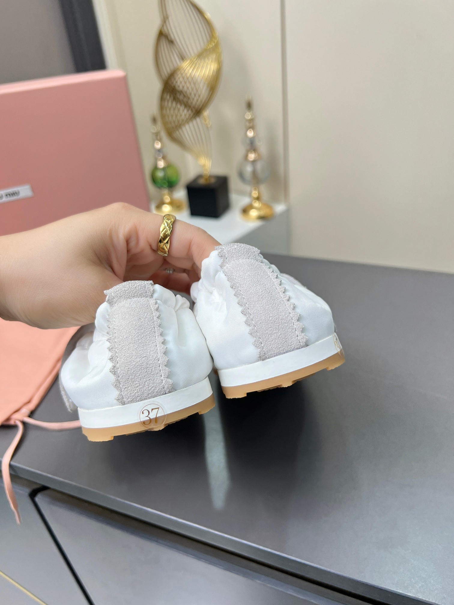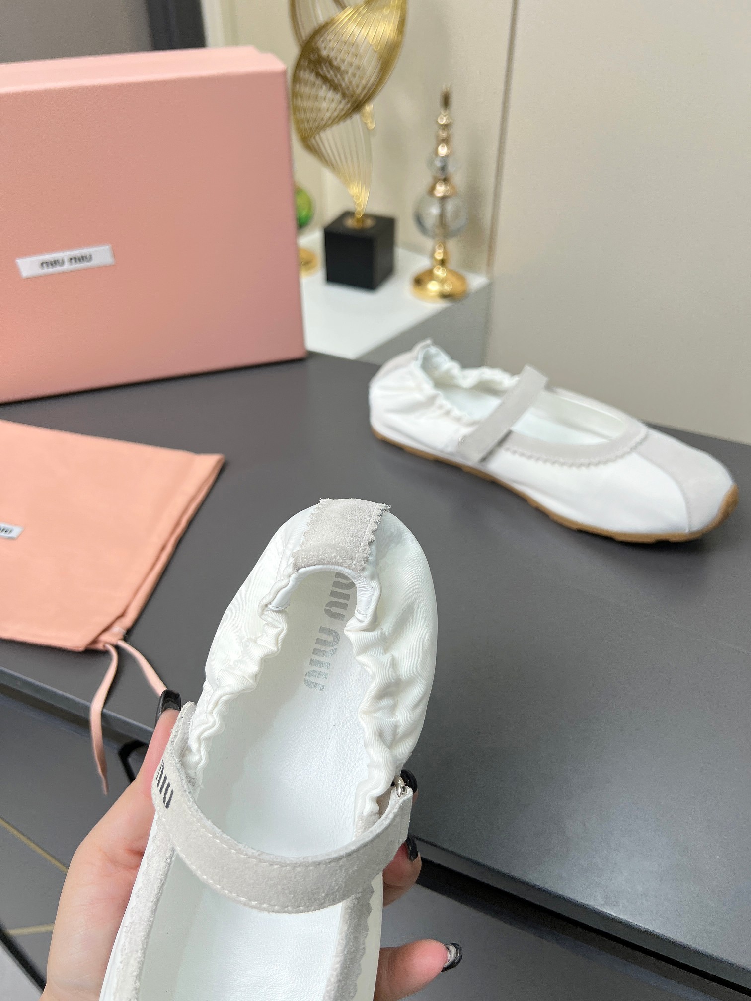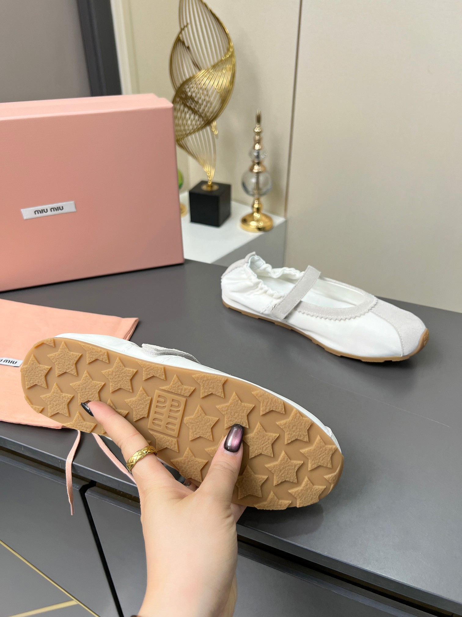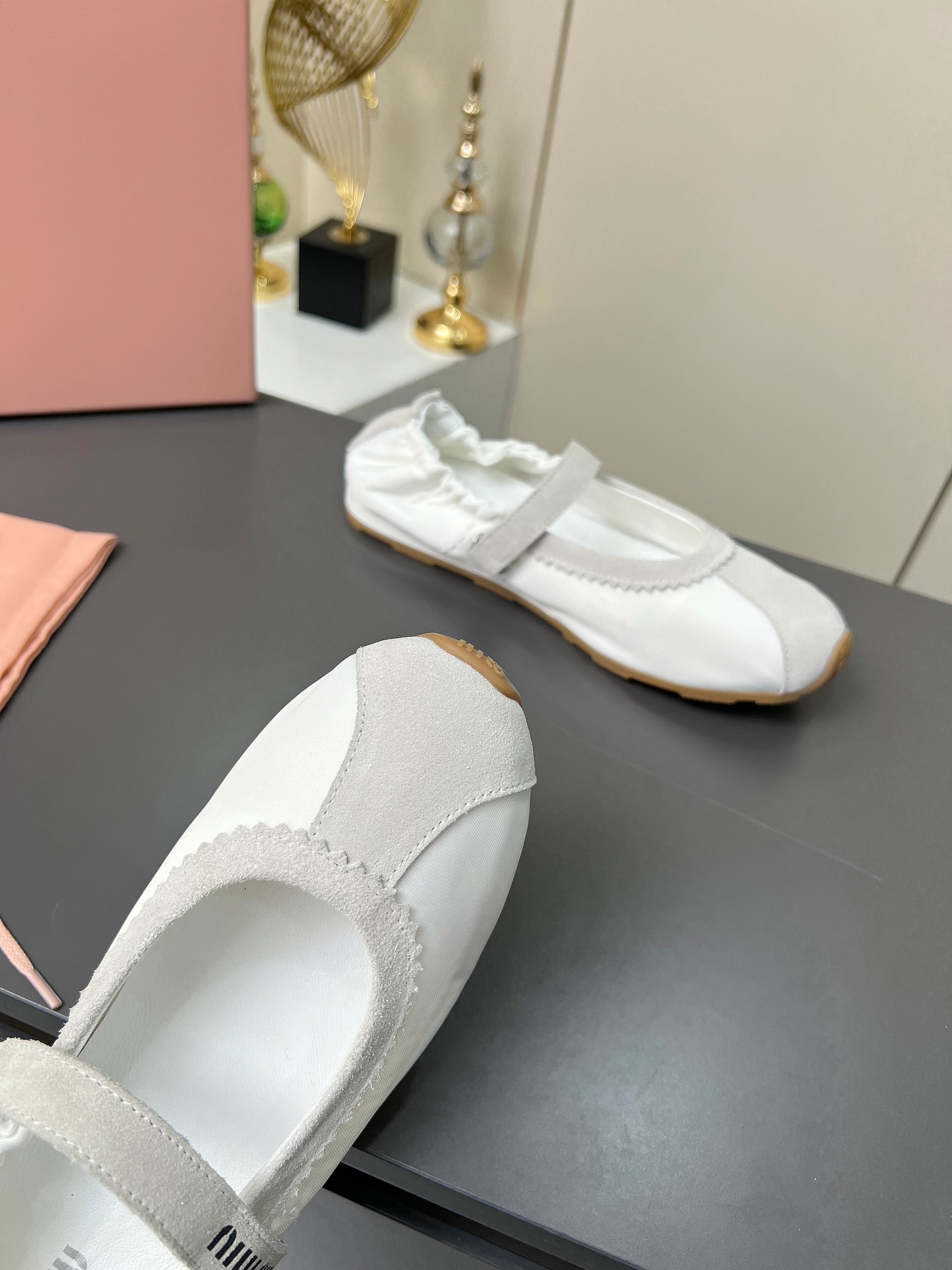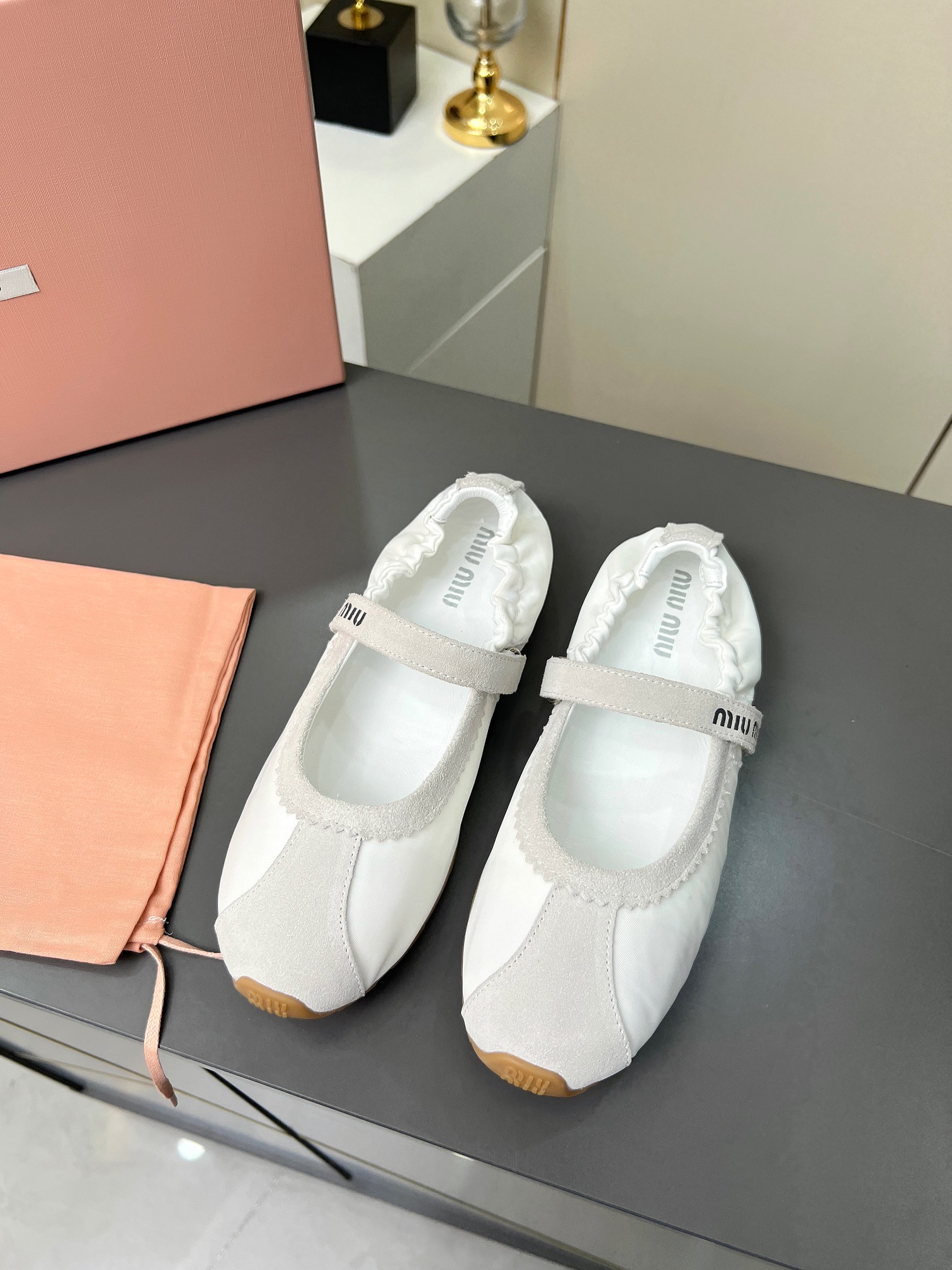 这款鞋子是AAAAA 1:1 质量 (非常棒). 使用了和原版一模一样的材料. 商标部分也保持了和缪缪/Miu Miu一样. 图片拍摄是实物鞋子拍摄, 您所收到的实物保证和我们图片一模一样.