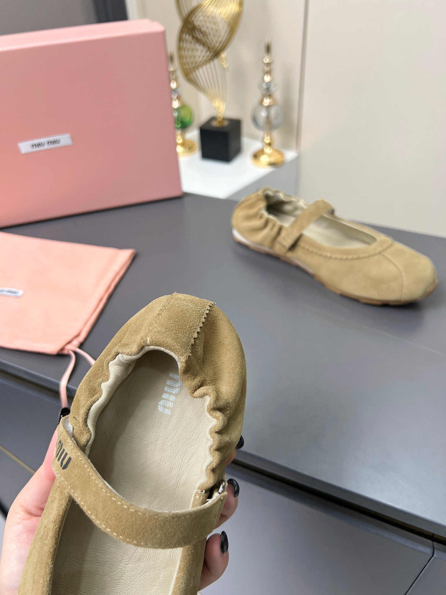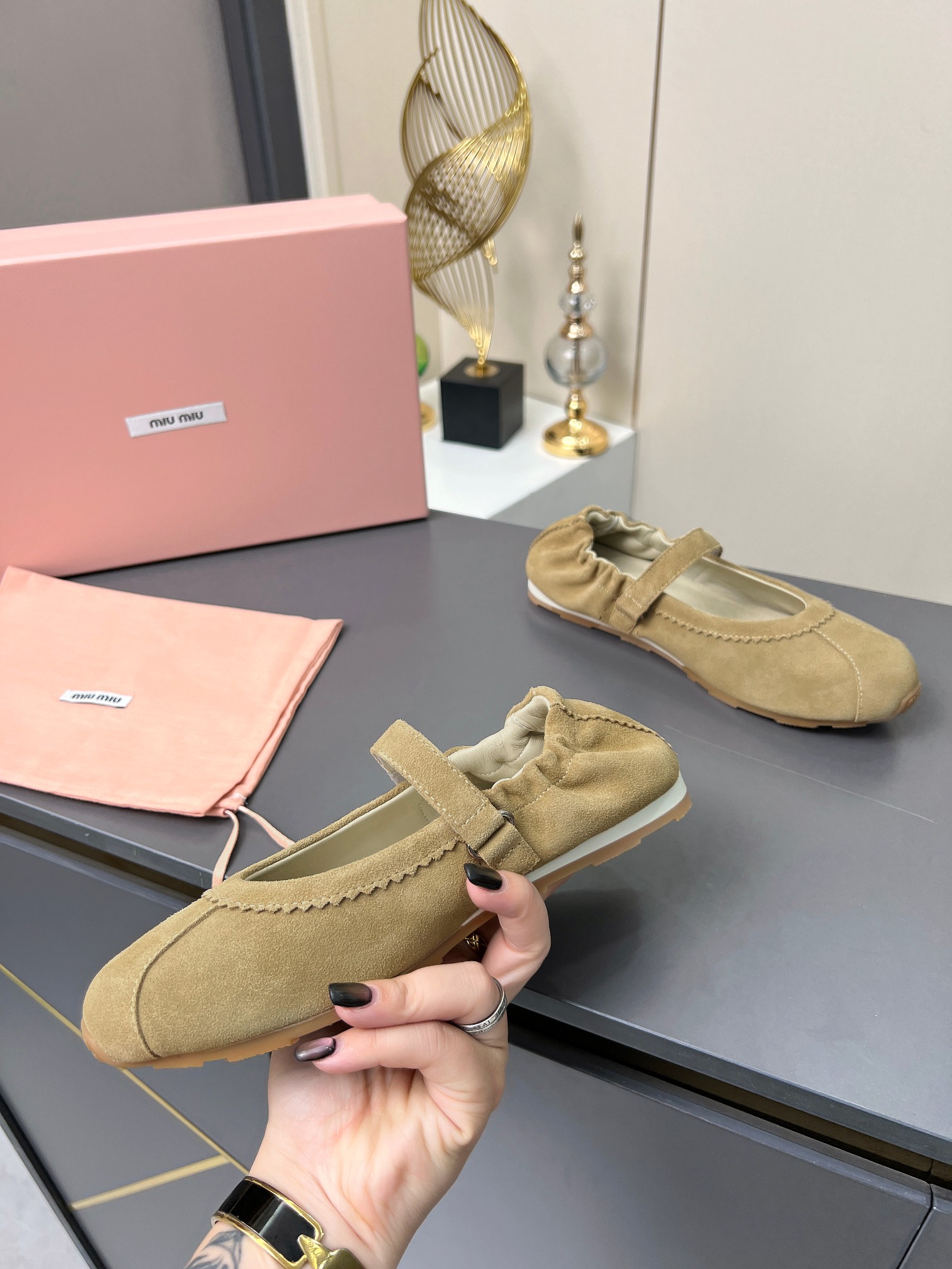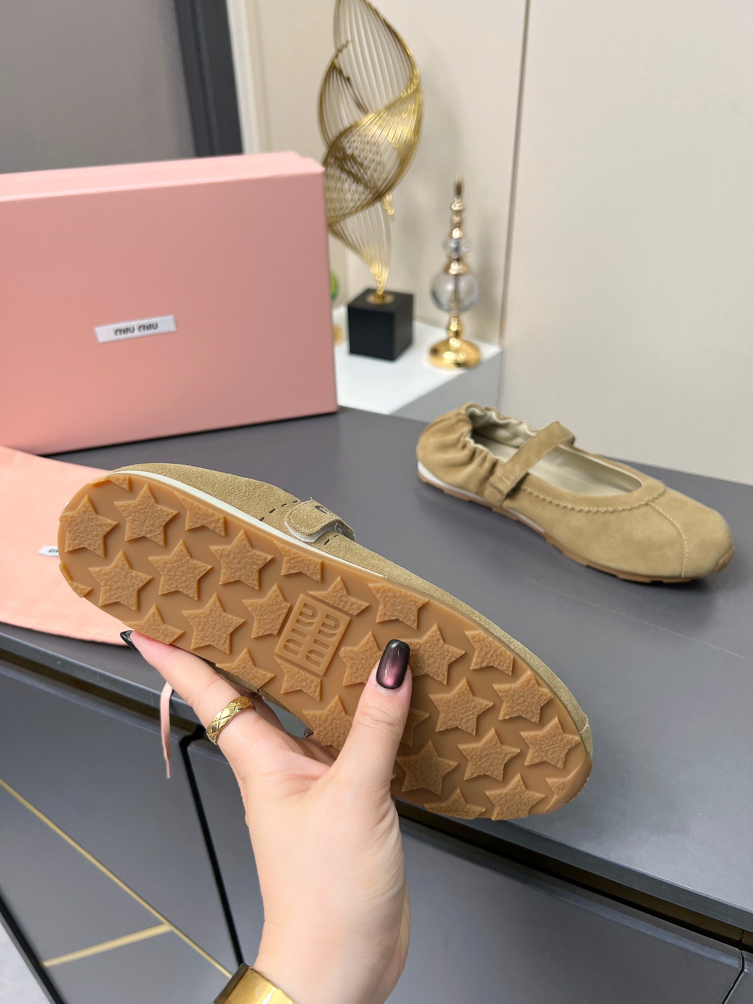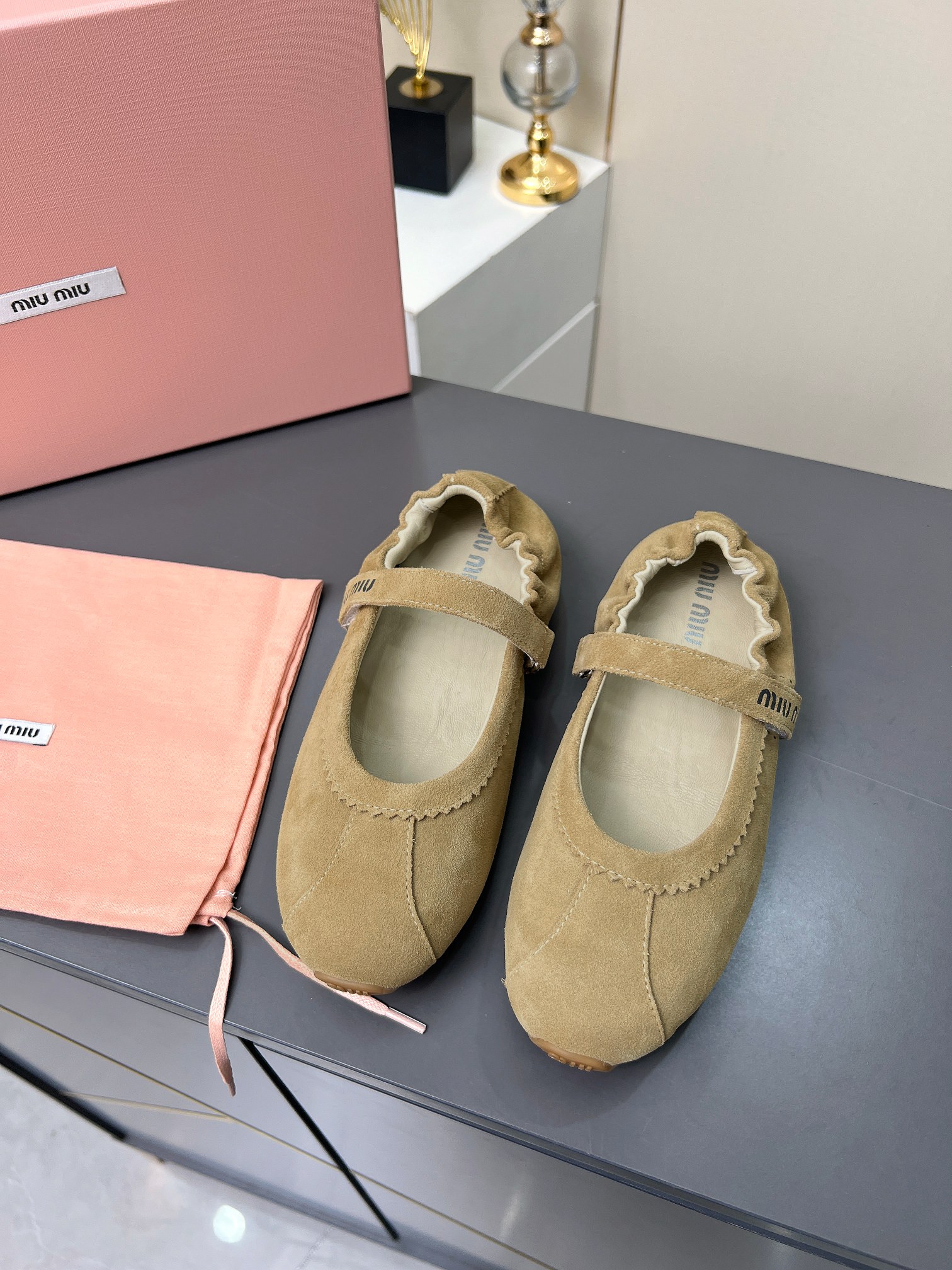 这款鞋子是AAAAA 1:1 质量 (非常棒). 使用了和原版一模一样的材料. 商标部分也保持了和缪缪/Miu Miu一样. 图片拍摄是实物鞋子拍摄, 您所收到的实物保证和我们图片一模一样.