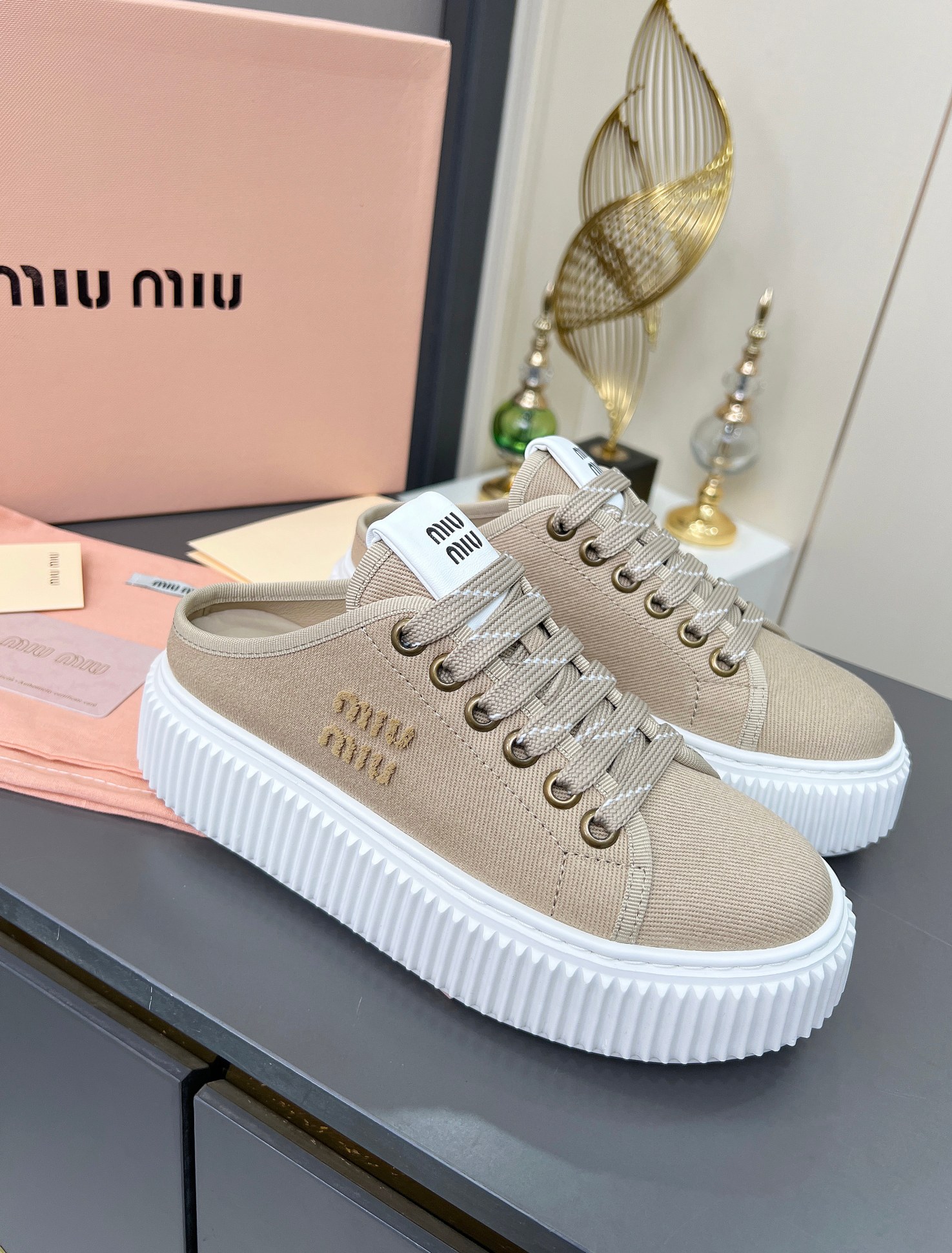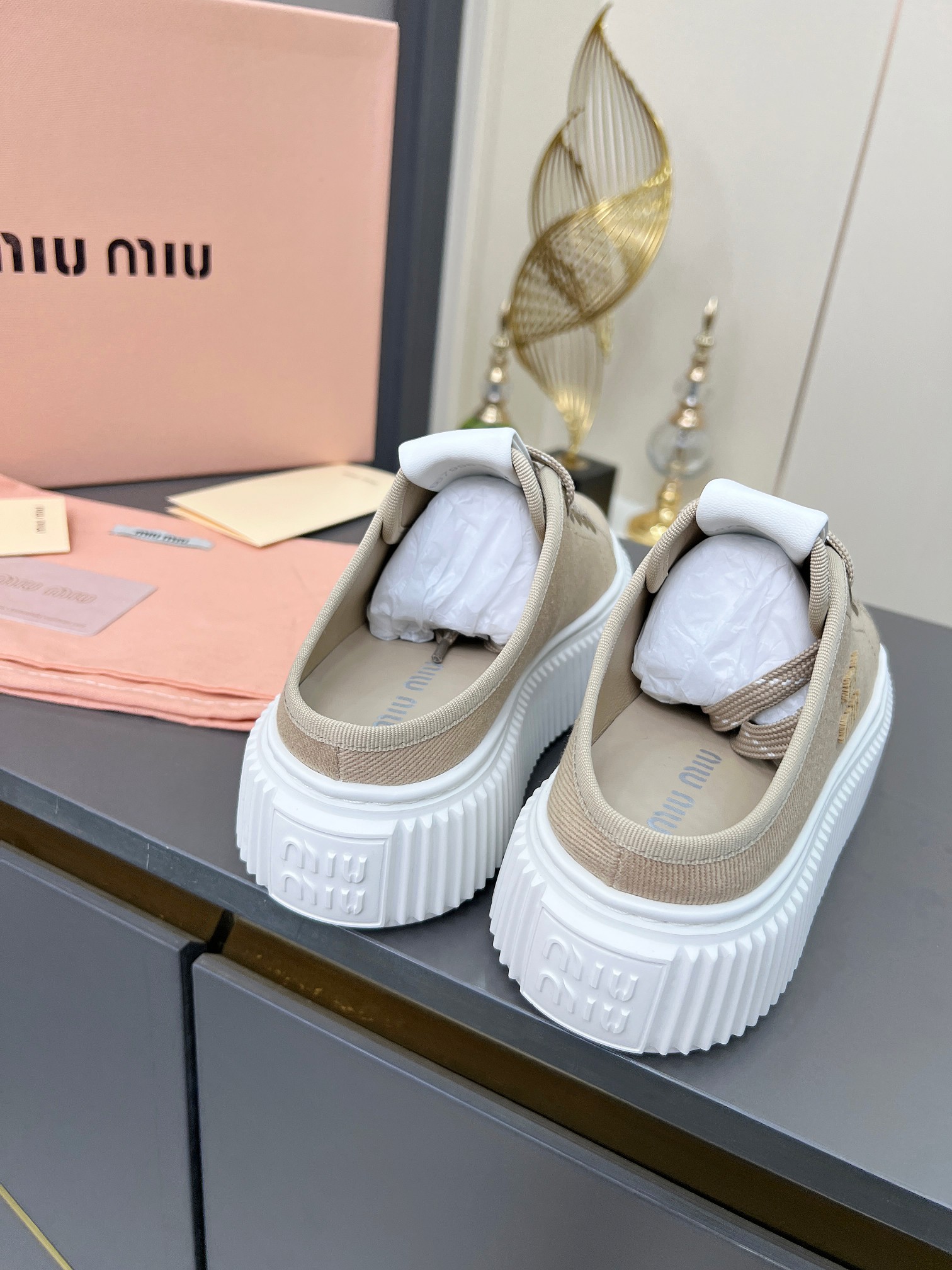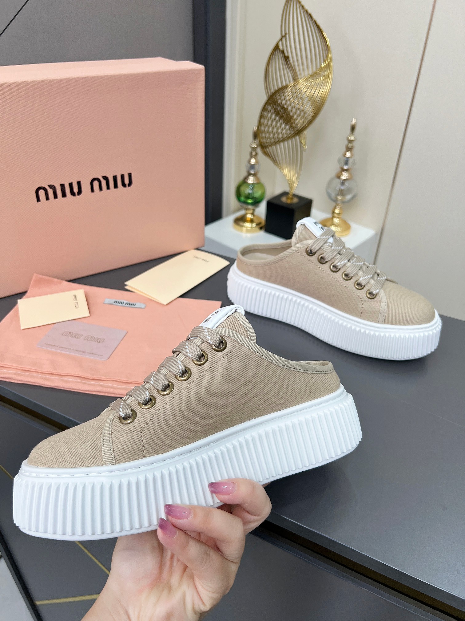 这款鞋子是AAAAA 1:1 质量 (非常棒). 使用了和原版一模一样的材料. 商标部分也保持了和缪缪/Miu Miu一样. 图片拍摄是实物鞋子拍摄, 您所收到的实物保证和我们图片一模一样.