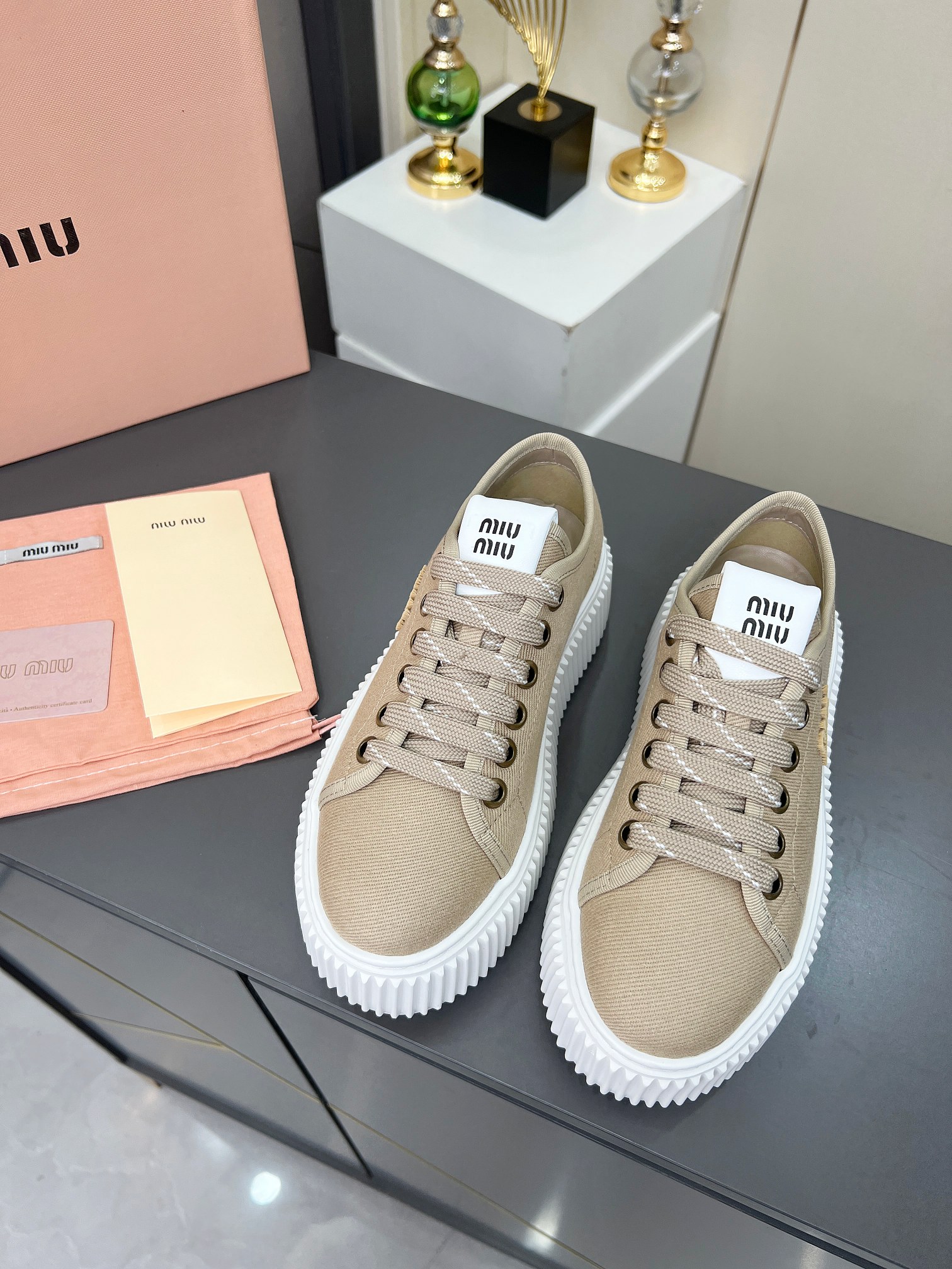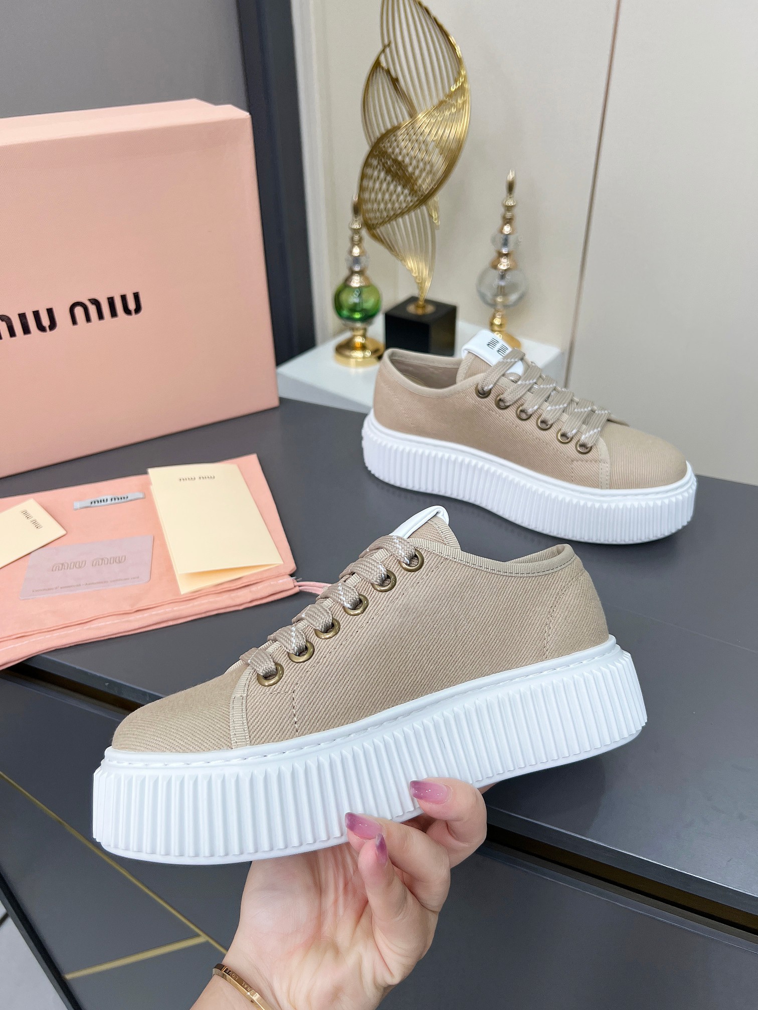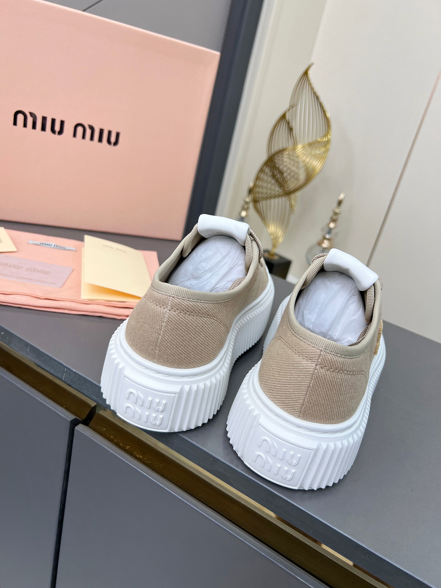 这款鞋子是AAAAA 1:1 质量 (非常棒). 使用了和原版一模一样的材料. 商标部分也保持了和缪缪/Miu Miu一样. 图片拍摄是实物鞋子拍摄, 您所收到的实物保证和我们图片一模一样.