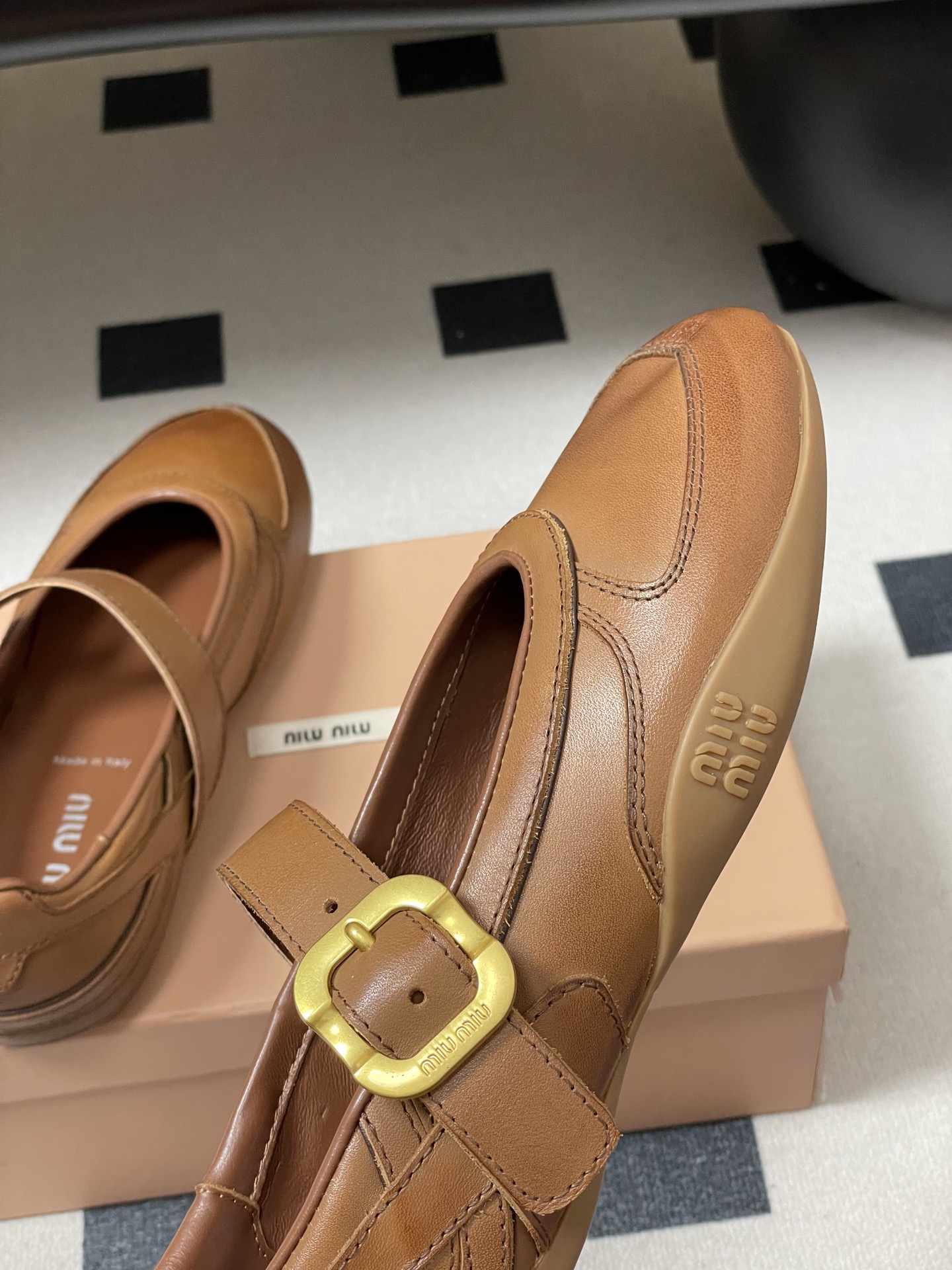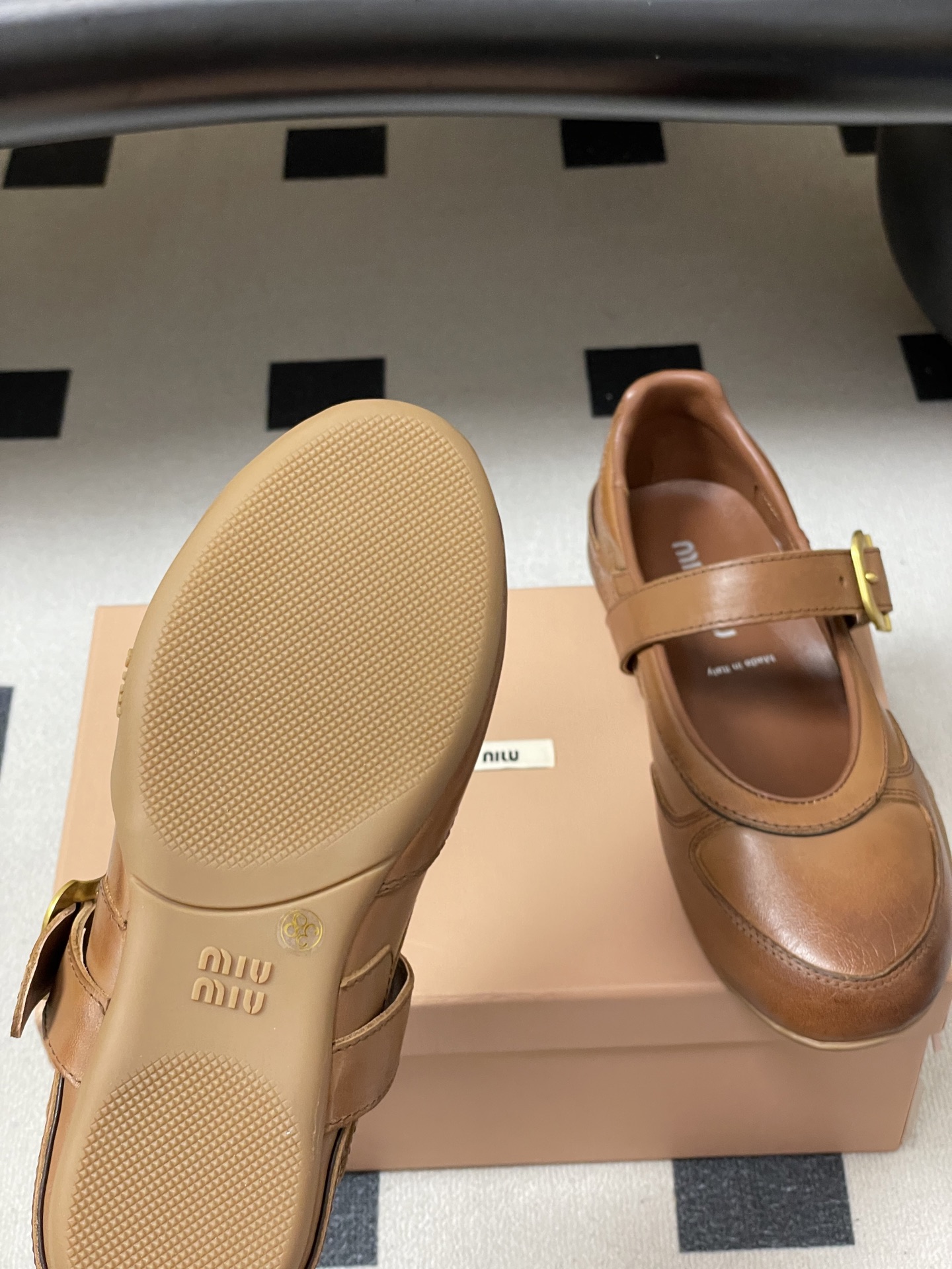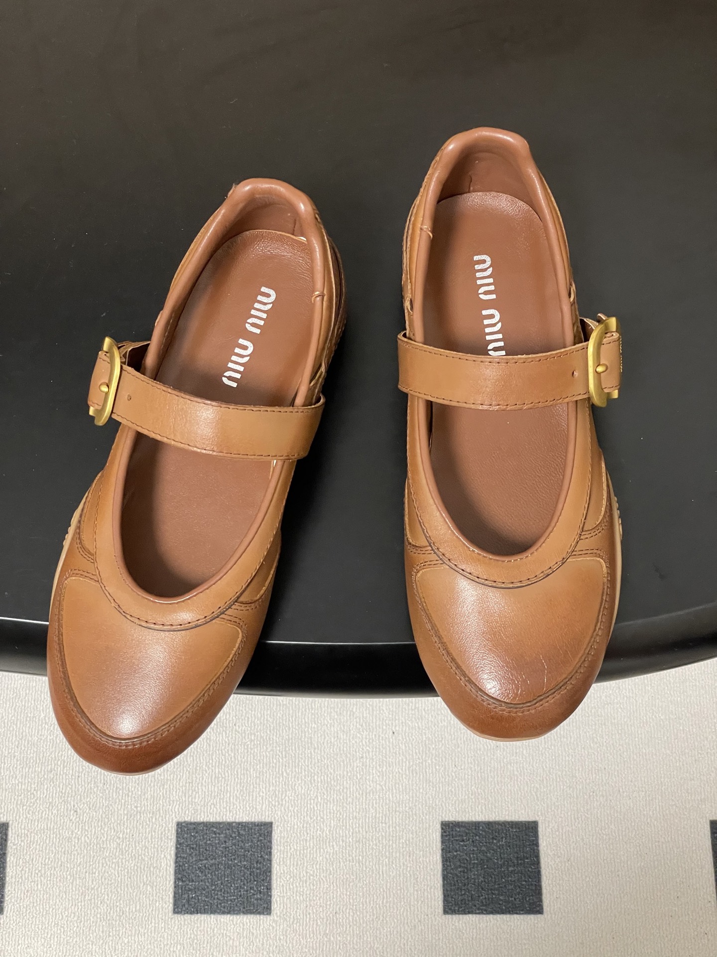 这款鞋子是AAAAA 1:1 质量 (非常棒). 使用了和原版一模一样的材料. 商标部分也保持了和缪缪/Miu Miu一样. 图片拍摄是实物鞋子拍摄, 您所收到的实物保证和我们图片一模一样.