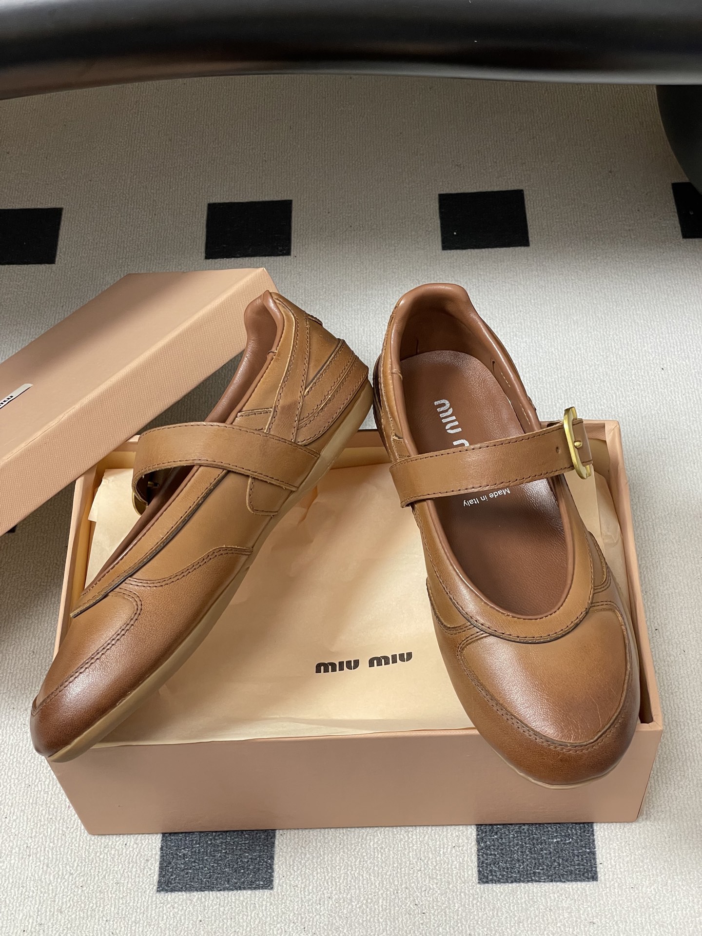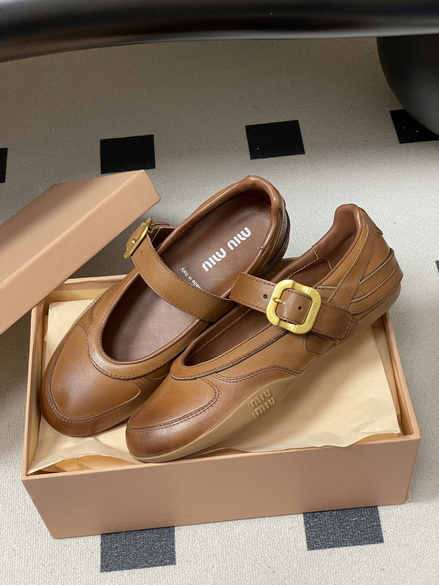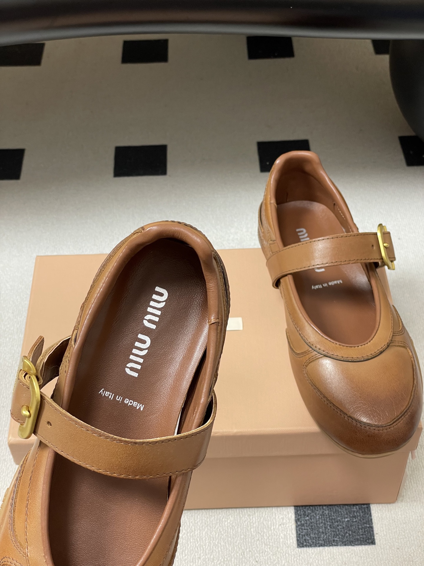 这款鞋子是AAAAA 1:1 质量 (非常棒). 使用了和原版一模一样的材料. 商标部分也保持了和缪缪/Miu Miu一样. 图片拍摄是实物鞋子拍摄, 您所收到的实物保证和我们图片一模一样.