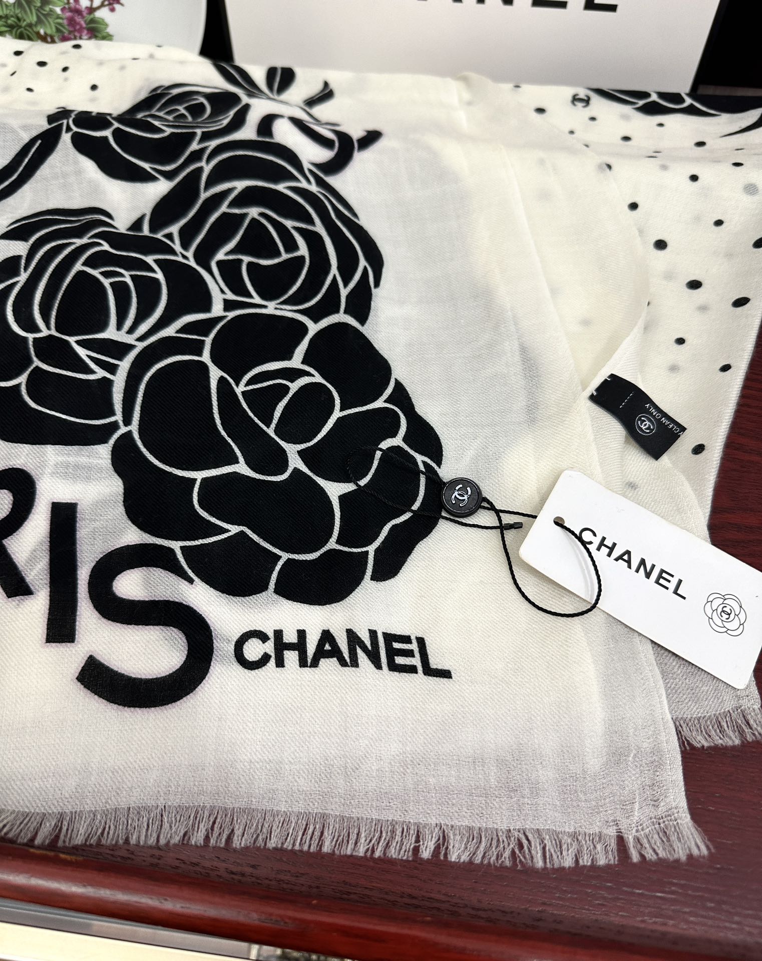 这款围巾是AAAAA 1:1 质量 (非常棒). 使用了和原版一模一样的材料. 商标部分也保持了和香奈儿/Chanel一样. 图片拍摄是实物围巾拍摄, 您所收到的实物保证和我们图片一模一样.