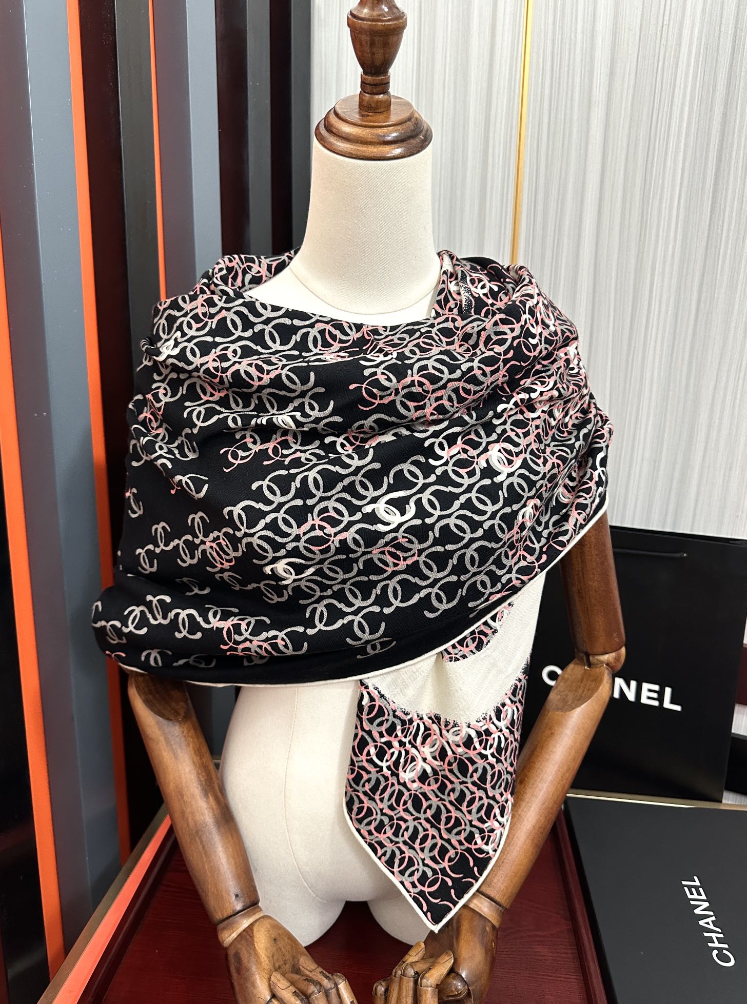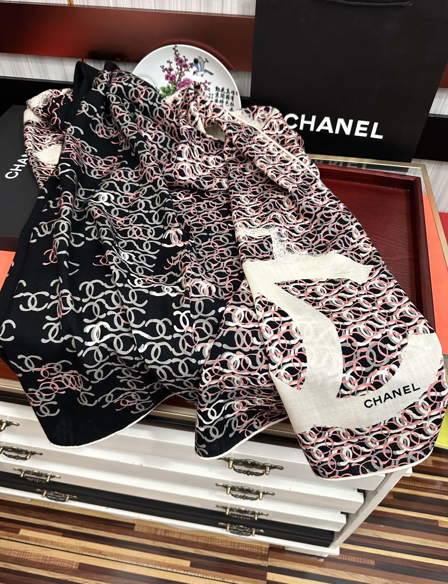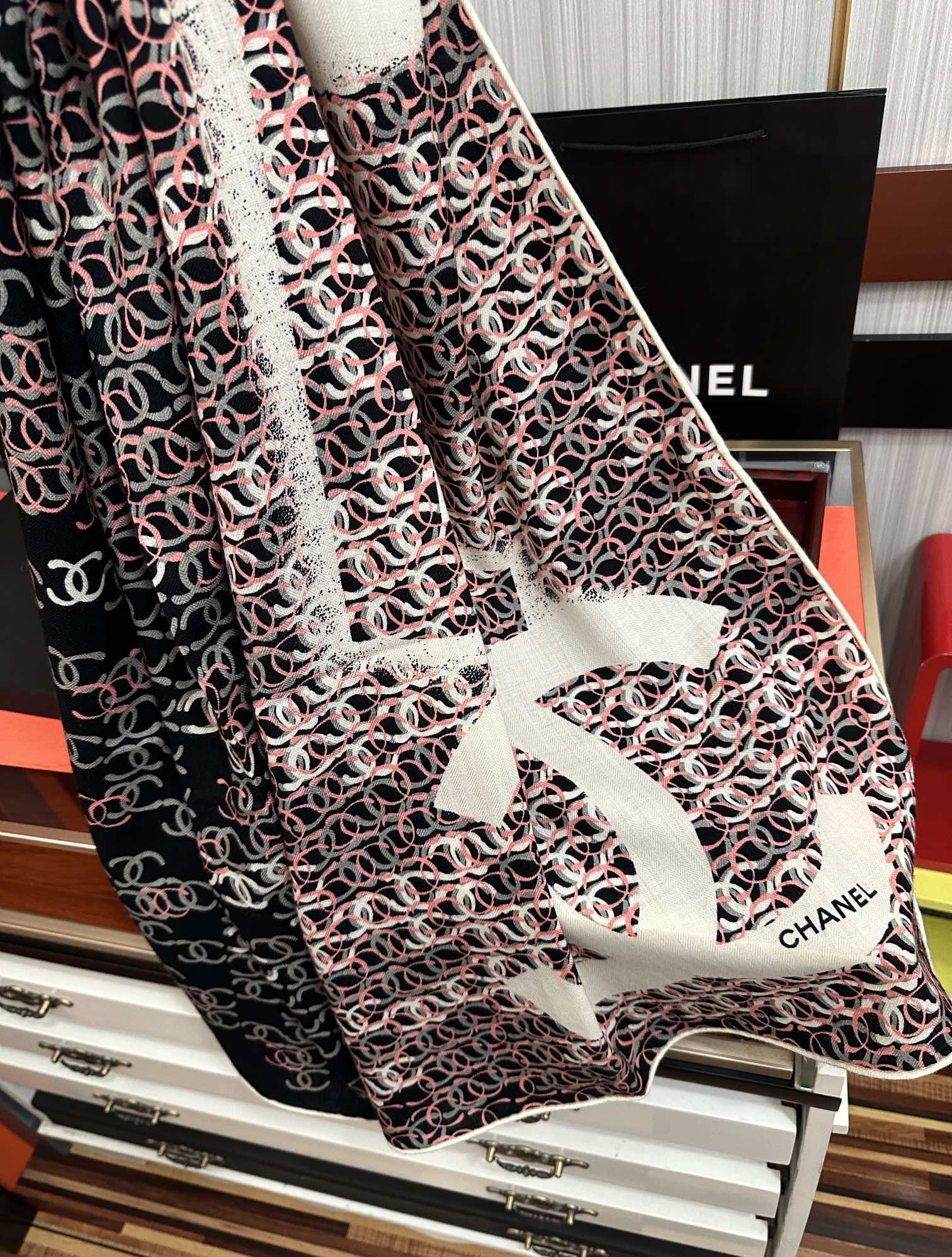 这款围巾是AAAAA 1:1 质量 (非常棒). 使用了和原版一模一样的材料. 商标部分也保持了和香奈儿/Chanel一样. 图片拍摄是实物围巾拍摄, 您所收到的实物保证和我们图片一模一样.