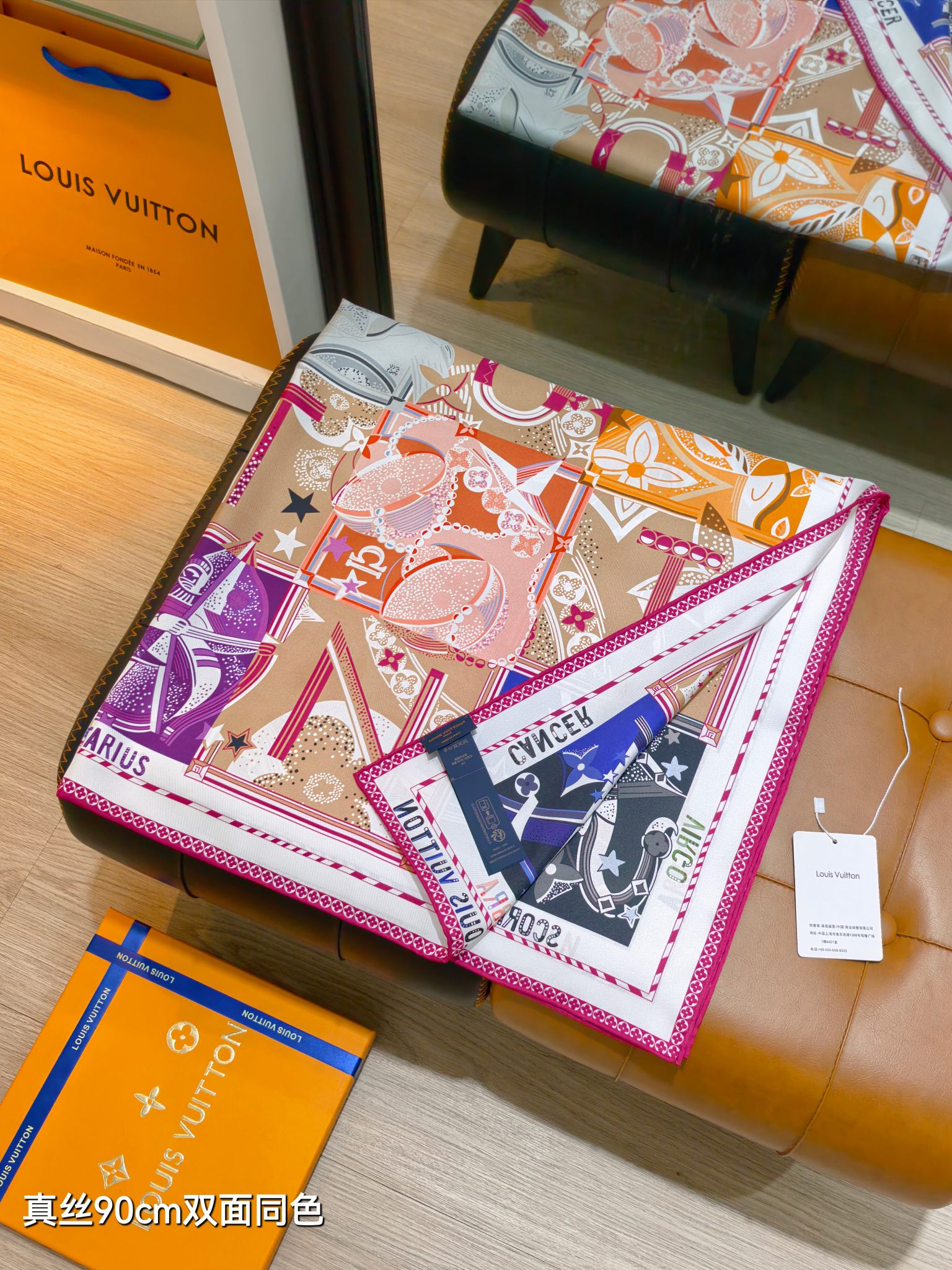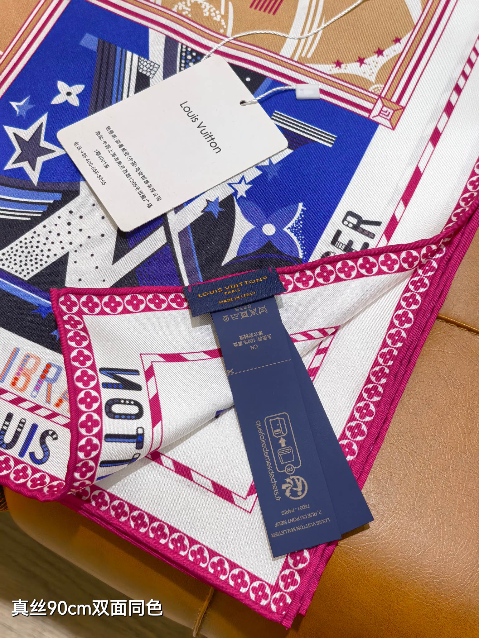 这款围巾是AAAAA 1:1 质量 (非常棒). 使用了和原版一模一样的材料. 商标部分也保持了和路易威登/Louis Vuitton一样. 图片拍摄是实物围巾拍摄, 您所收到的实物保证和我们图片一模一样.