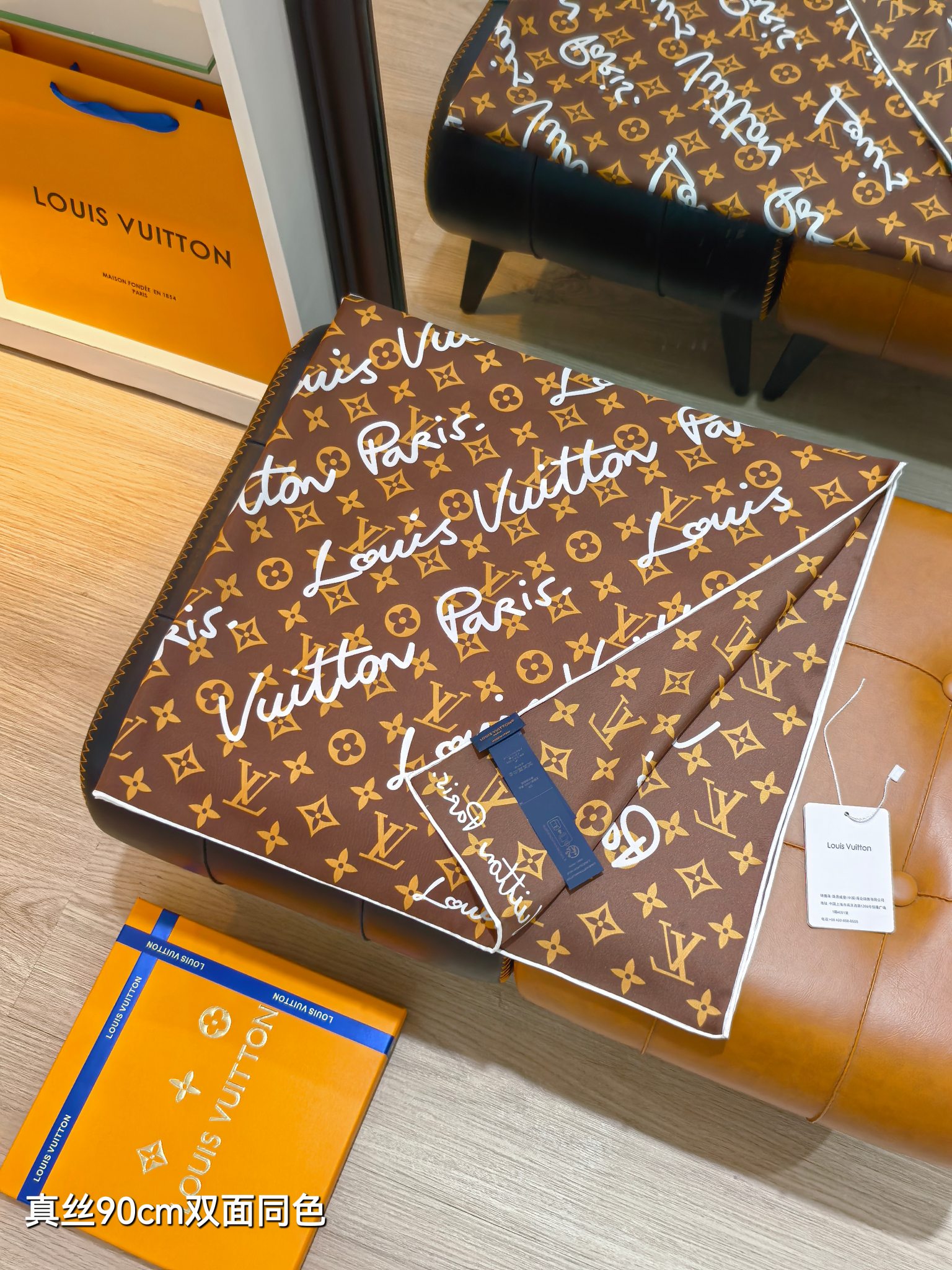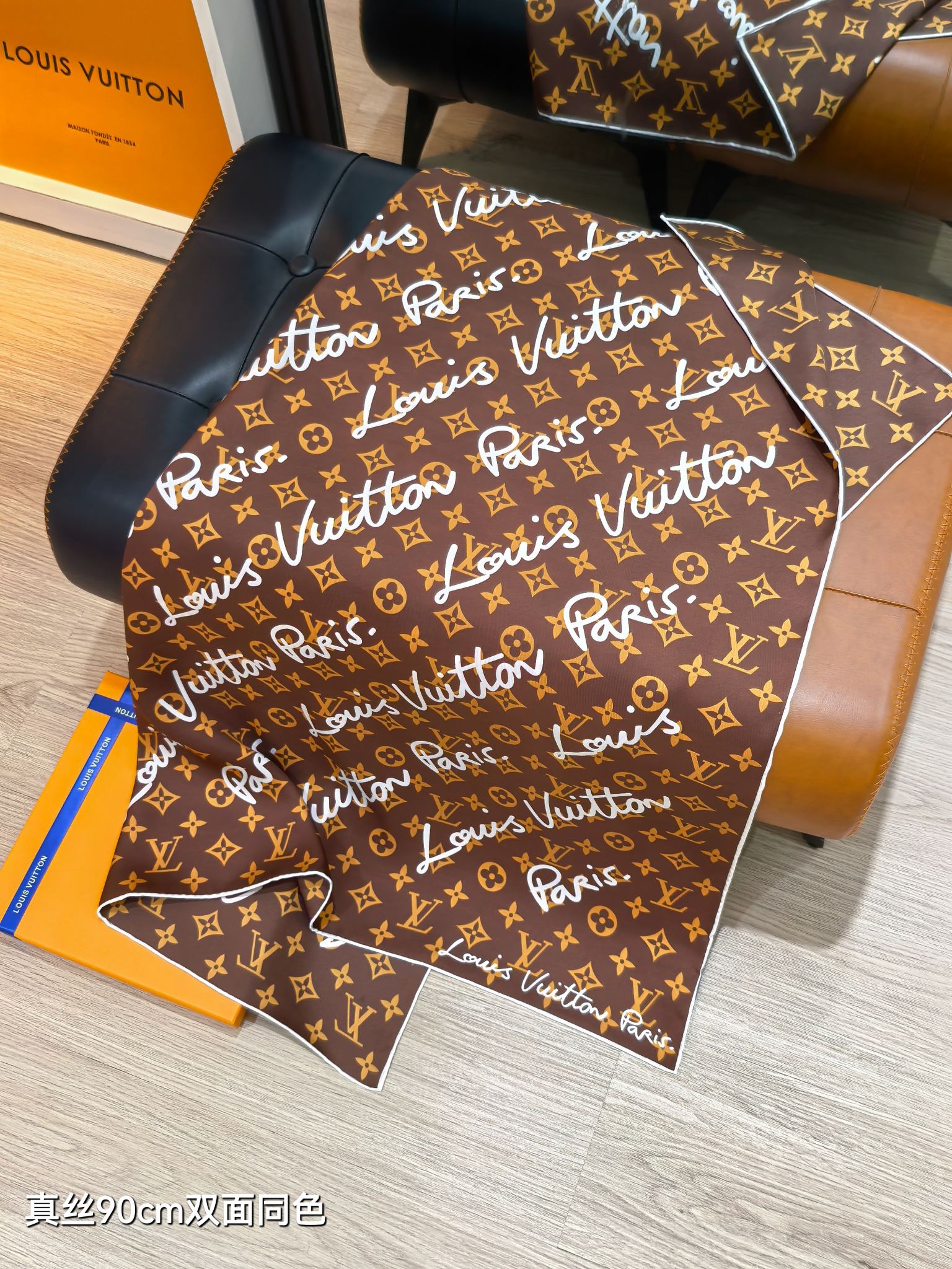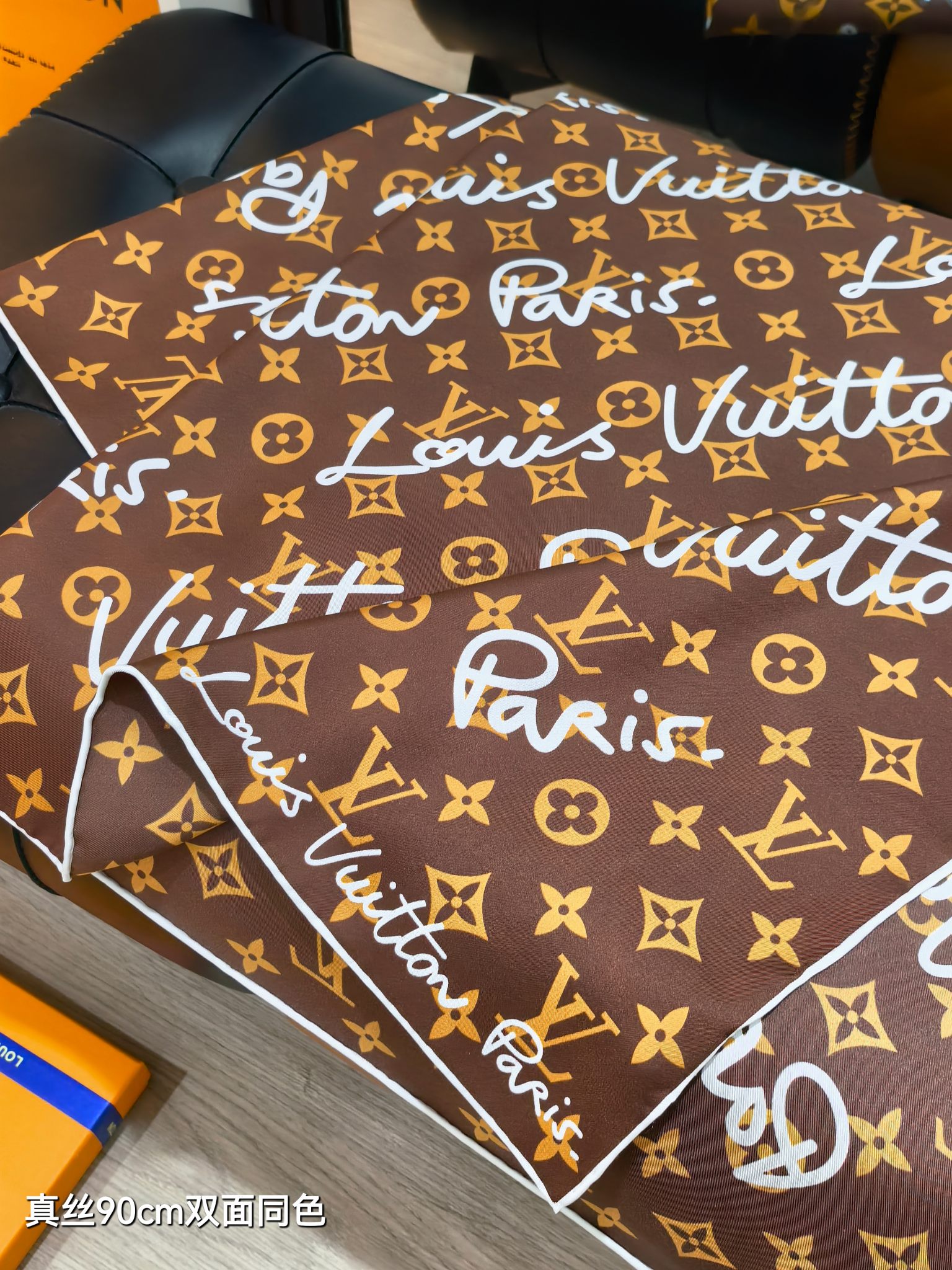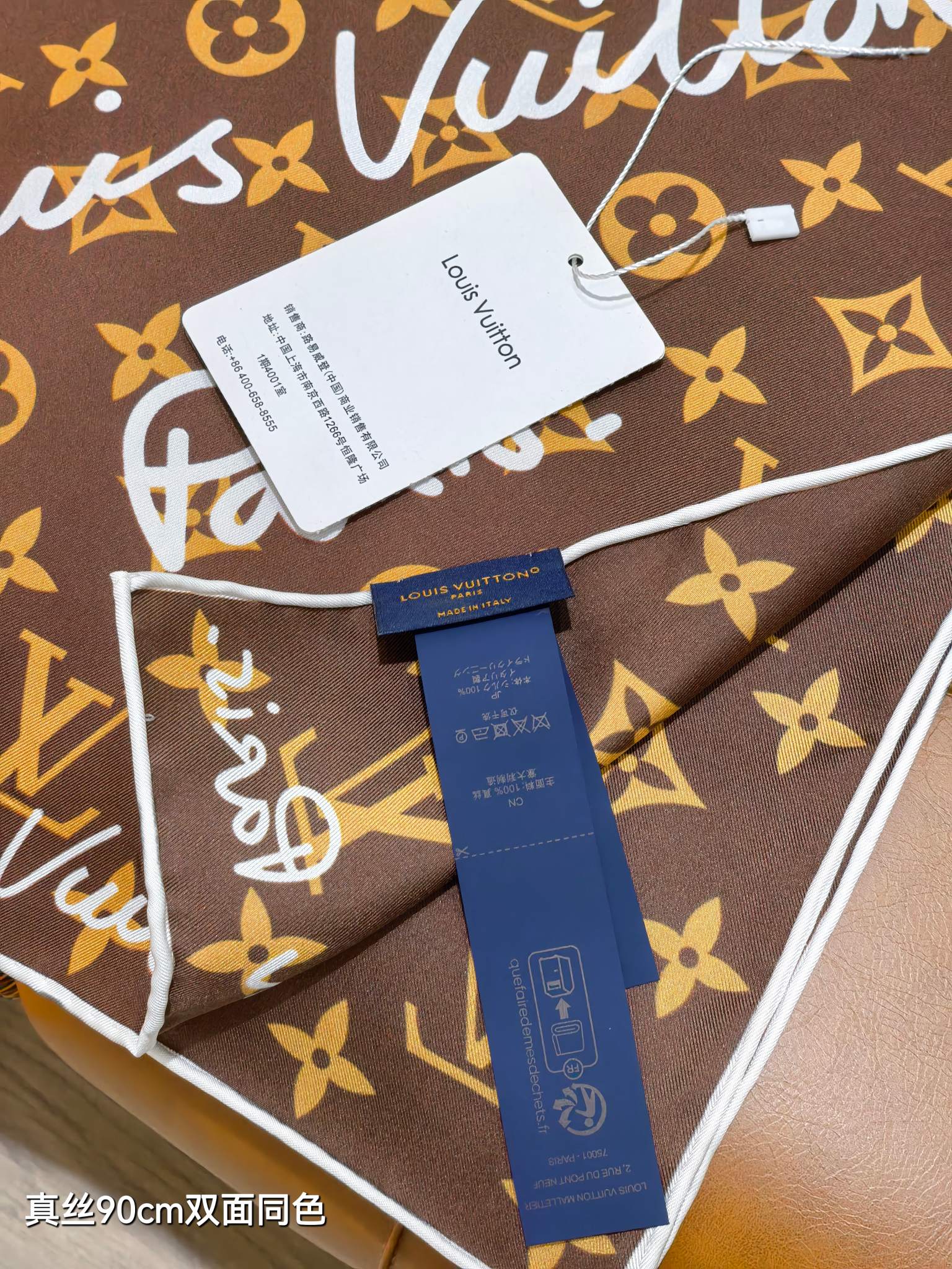 这款围巾是AAAAA 1:1 质量 (非常棒). 使用了和原版一模一样的材料. 商标部分也保持了和路易威登/Louis Vuitton一样. 图片拍摄是实物围巾拍摄, 您所收到的实物保证和我们图片一模一样.
