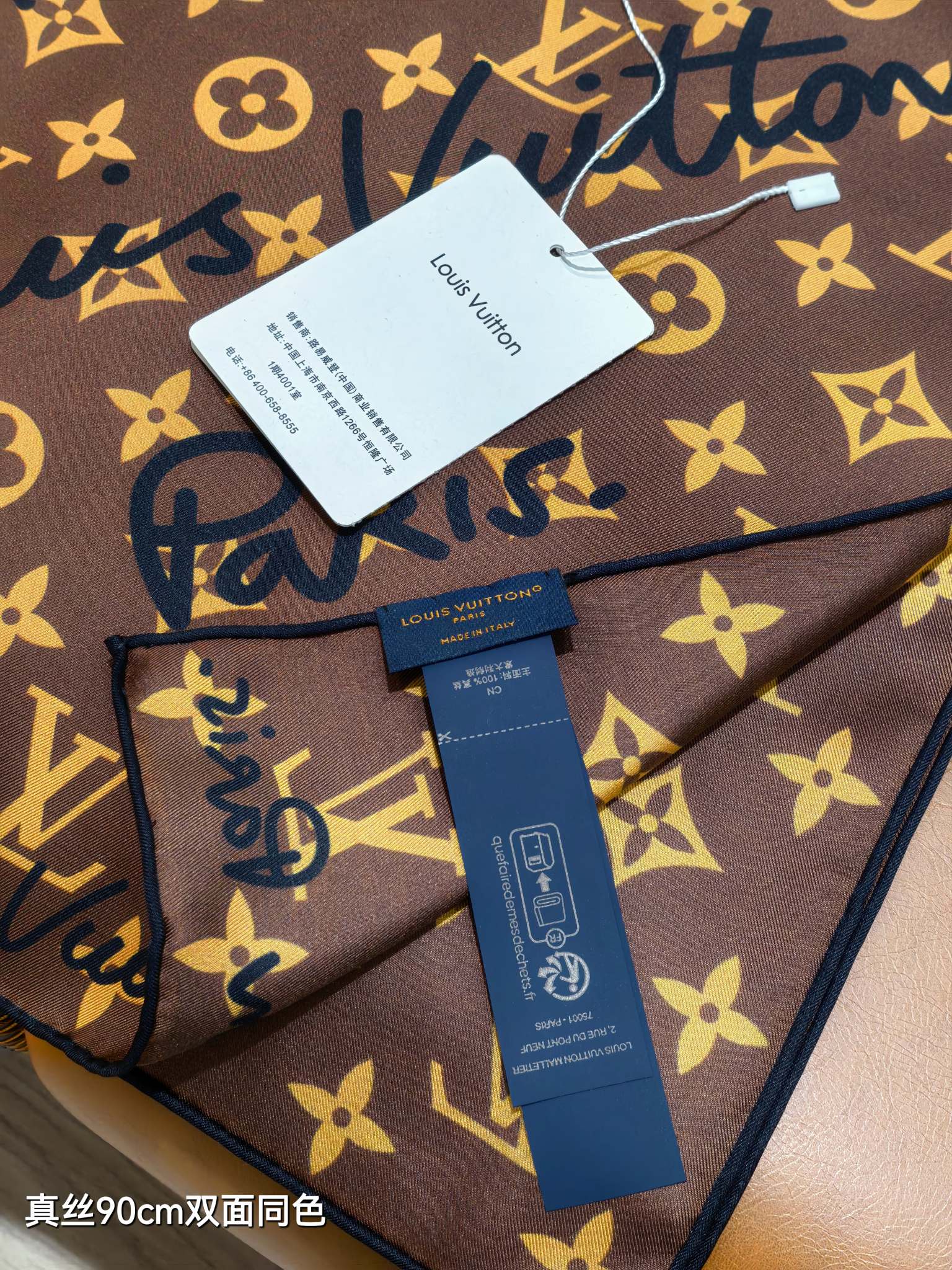 这款围巾是AAAAA 1:1 质量 (非常棒). 使用了和原版一模一样的材料. 商标部分也保持了和路易威登/Louis Vuitton一样. 图片拍摄是实物围巾拍摄, 您所收到的实物保证和我们图片一模一样.