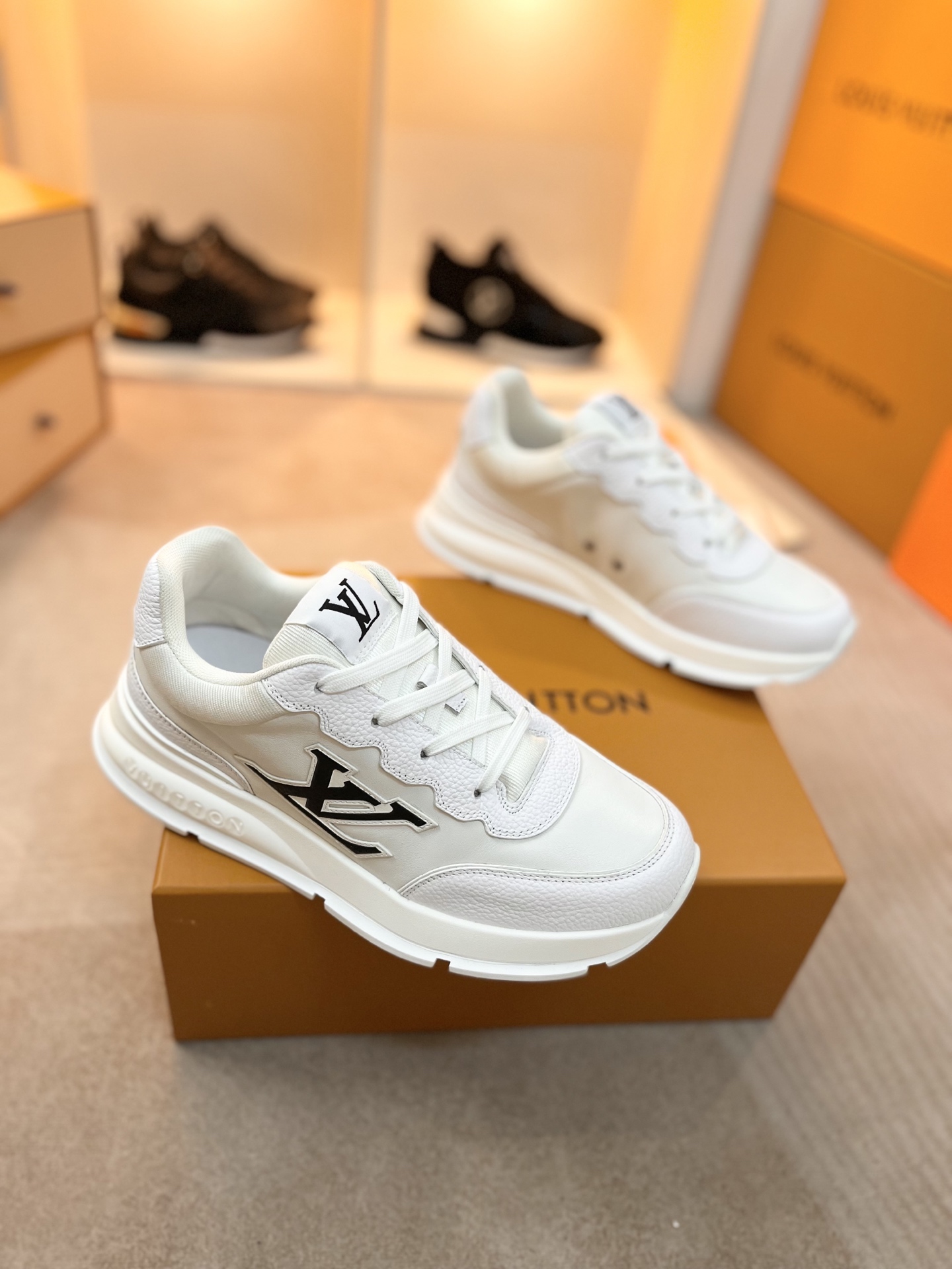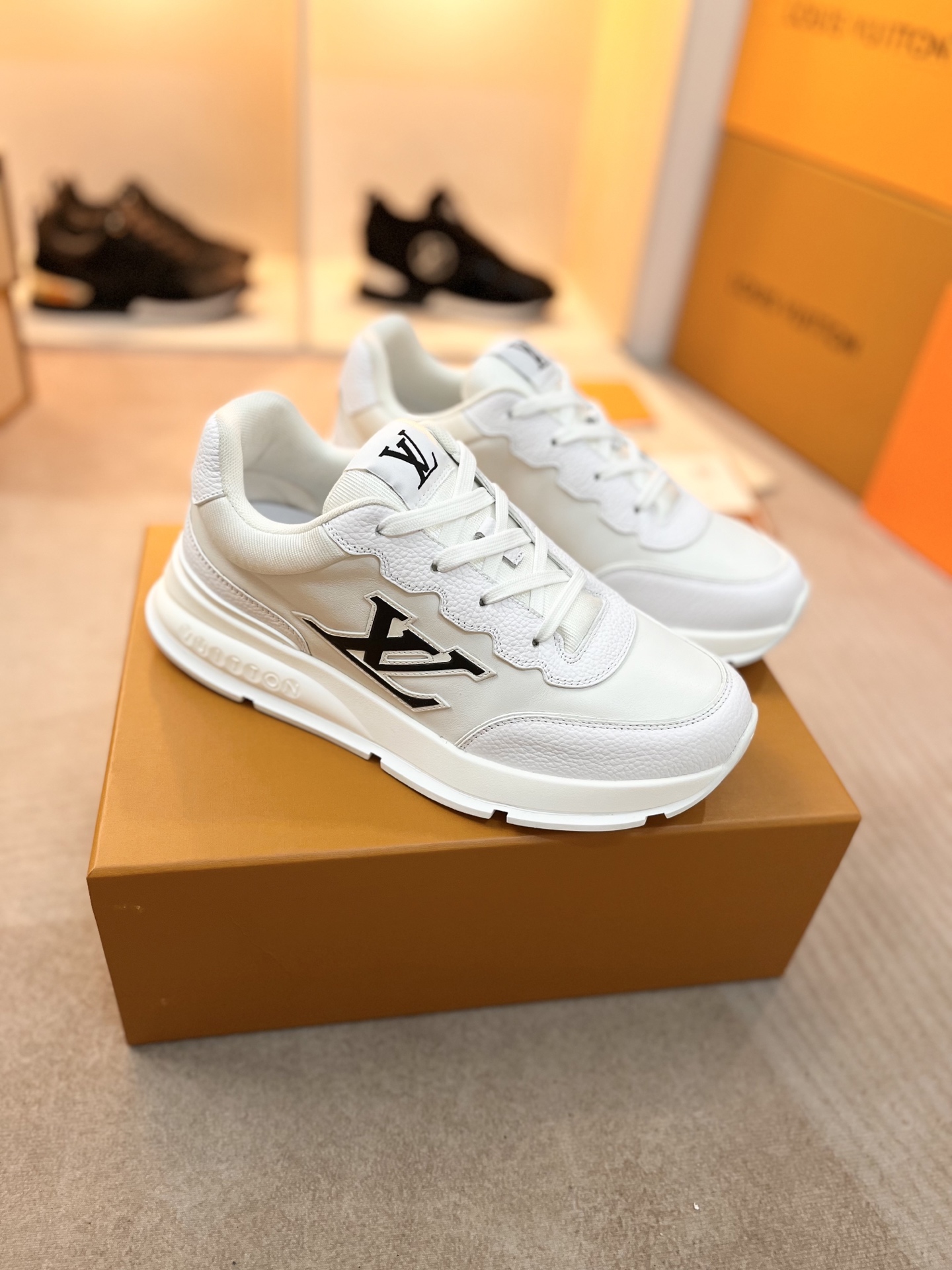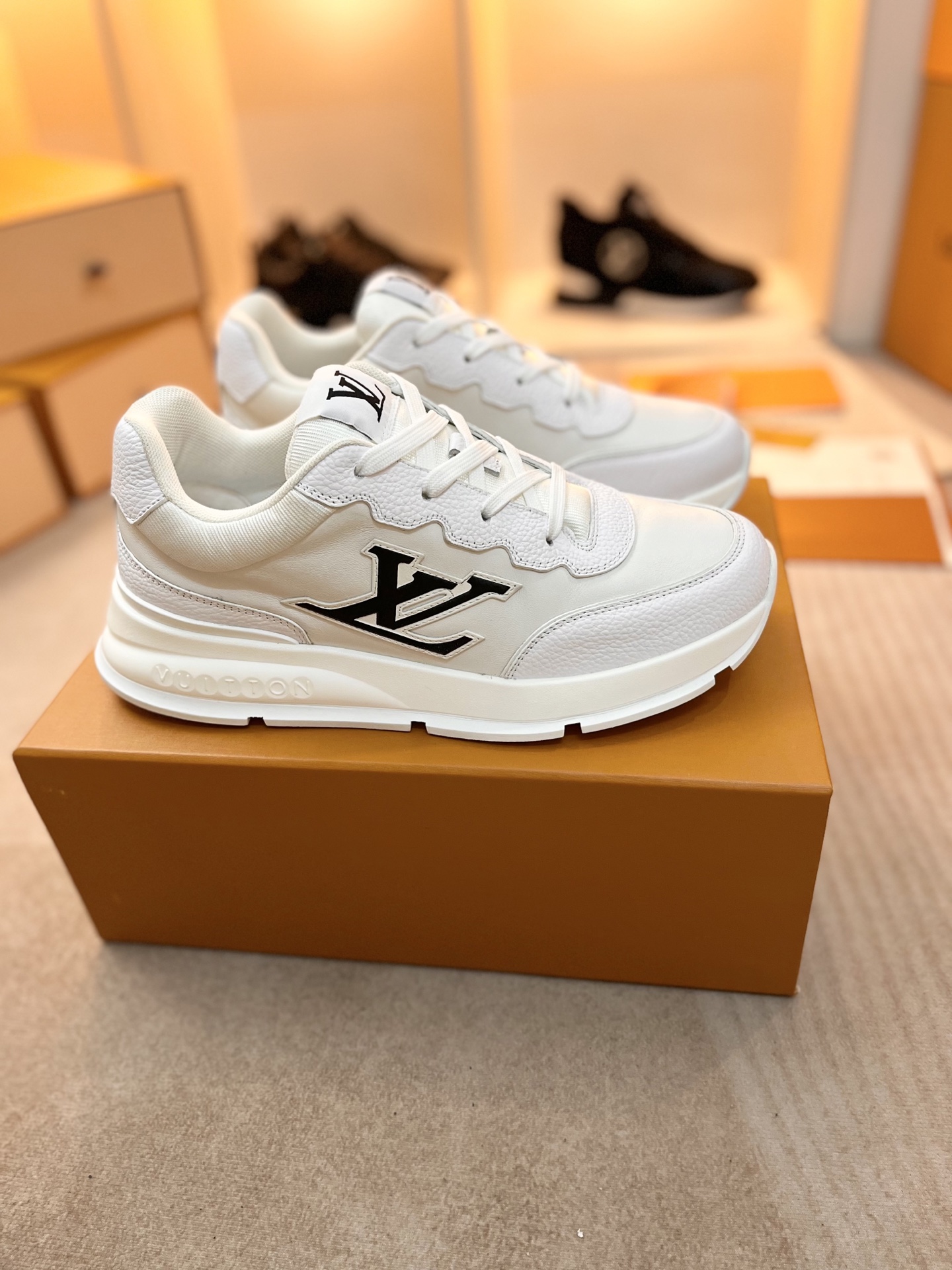 这款鞋子是AAAAA 1:1 质量 (非常棒). 使用了和原版一模一样的材料. 商标部分也保持了和路易威登/Louis Vuitton一样. 图片拍摄是实物鞋子拍摄, 您所收到的实物保证和我们图片一模一样.