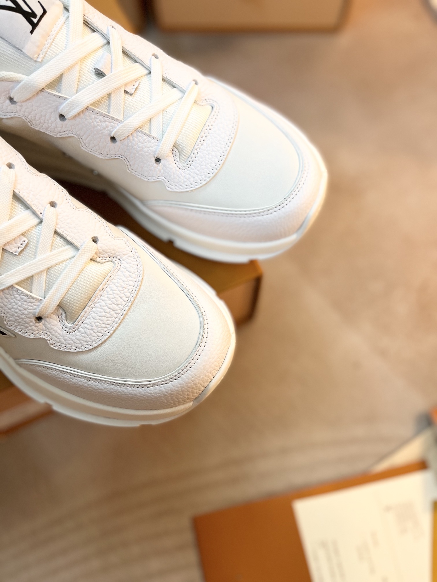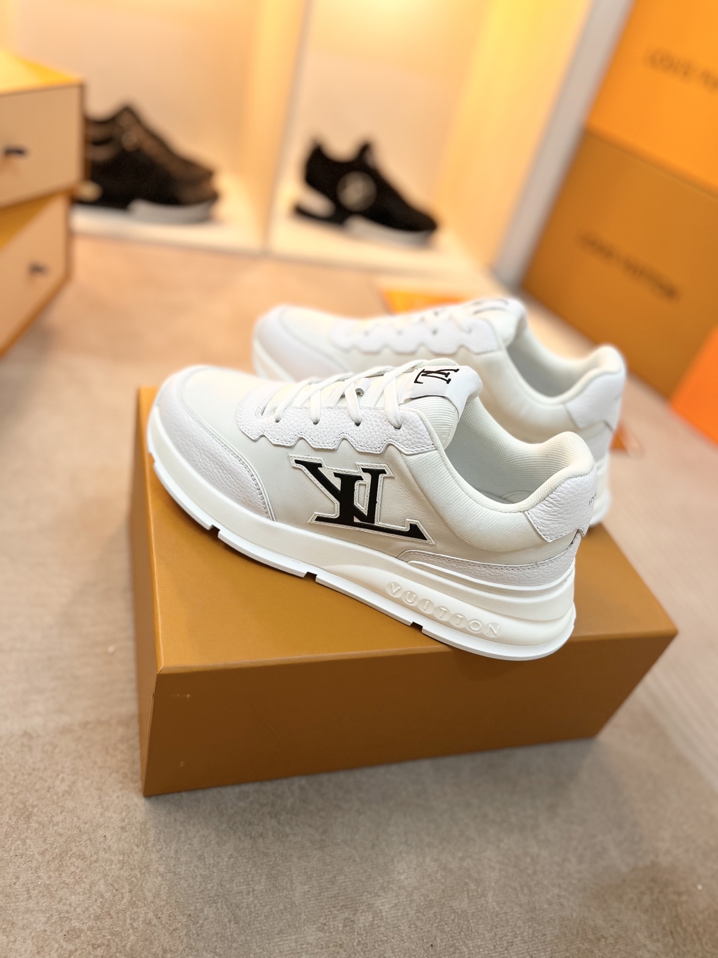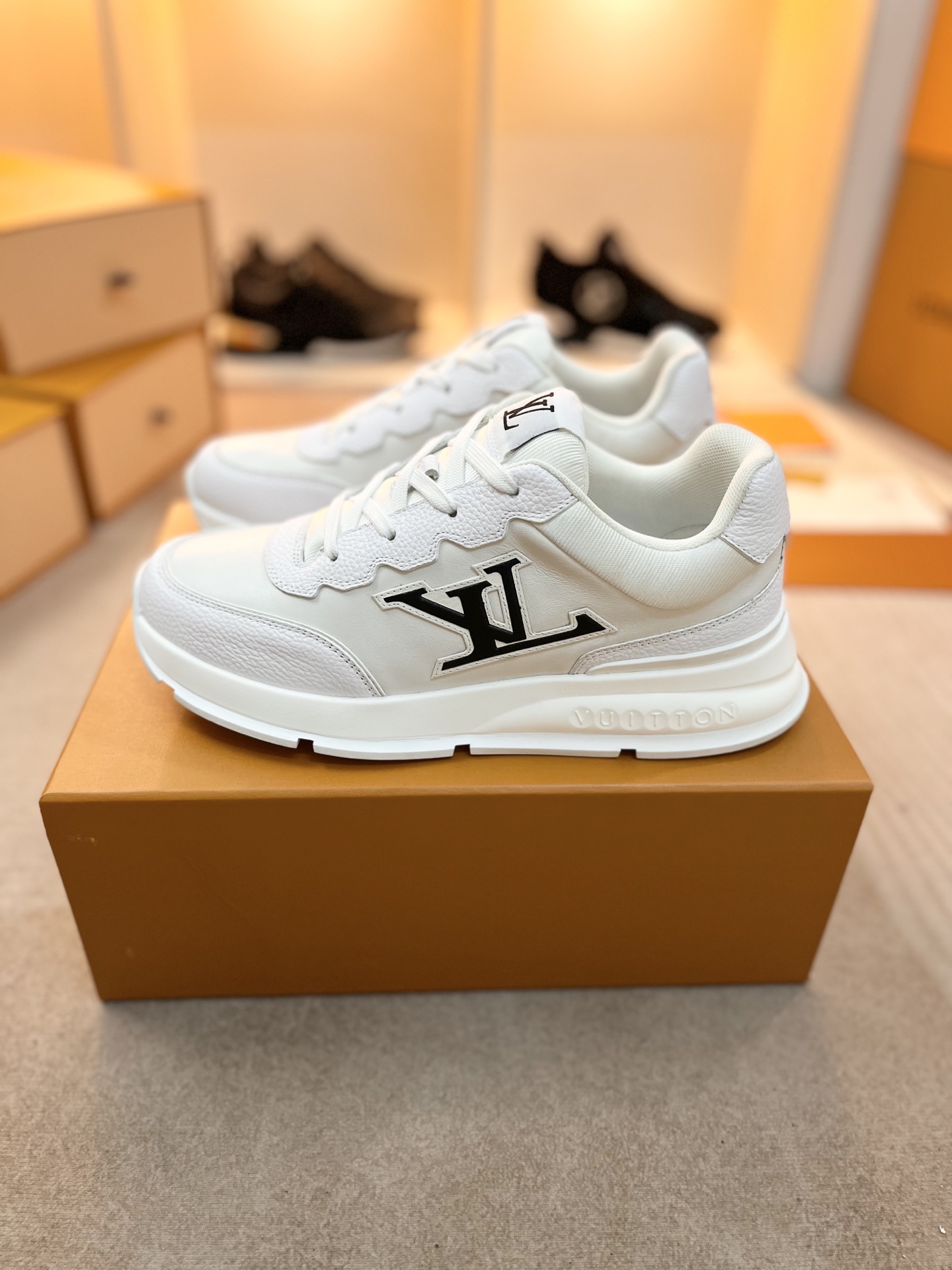 这款鞋子是AAAAA 1:1 质量 (非常棒). 使用了和原版一模一样的材料. 商标部分也保持了和路易威登/Louis Vuitton一样. 图片拍摄是实物鞋子拍摄, 您所收到的实物保证和我们图片一模一样.
