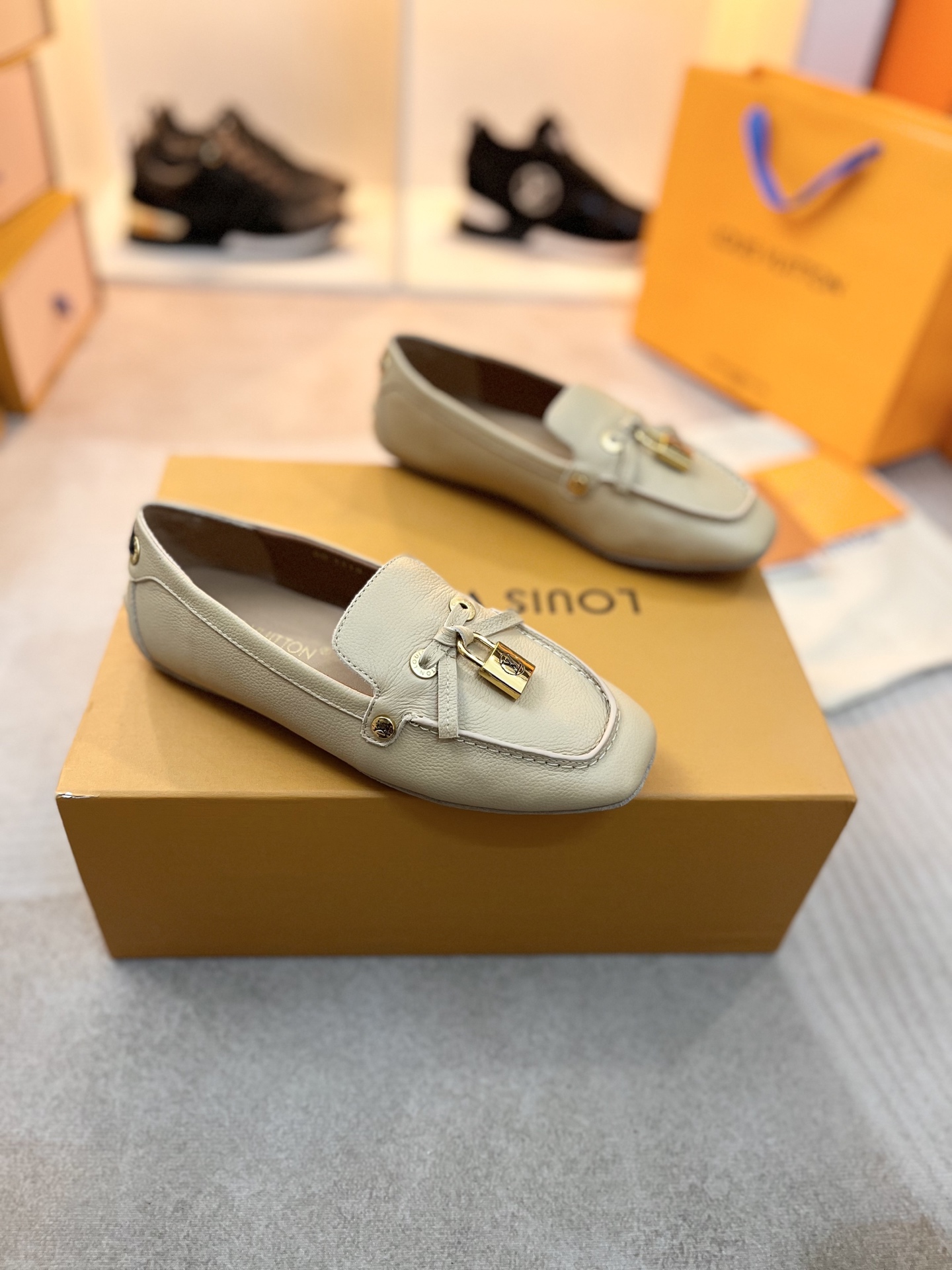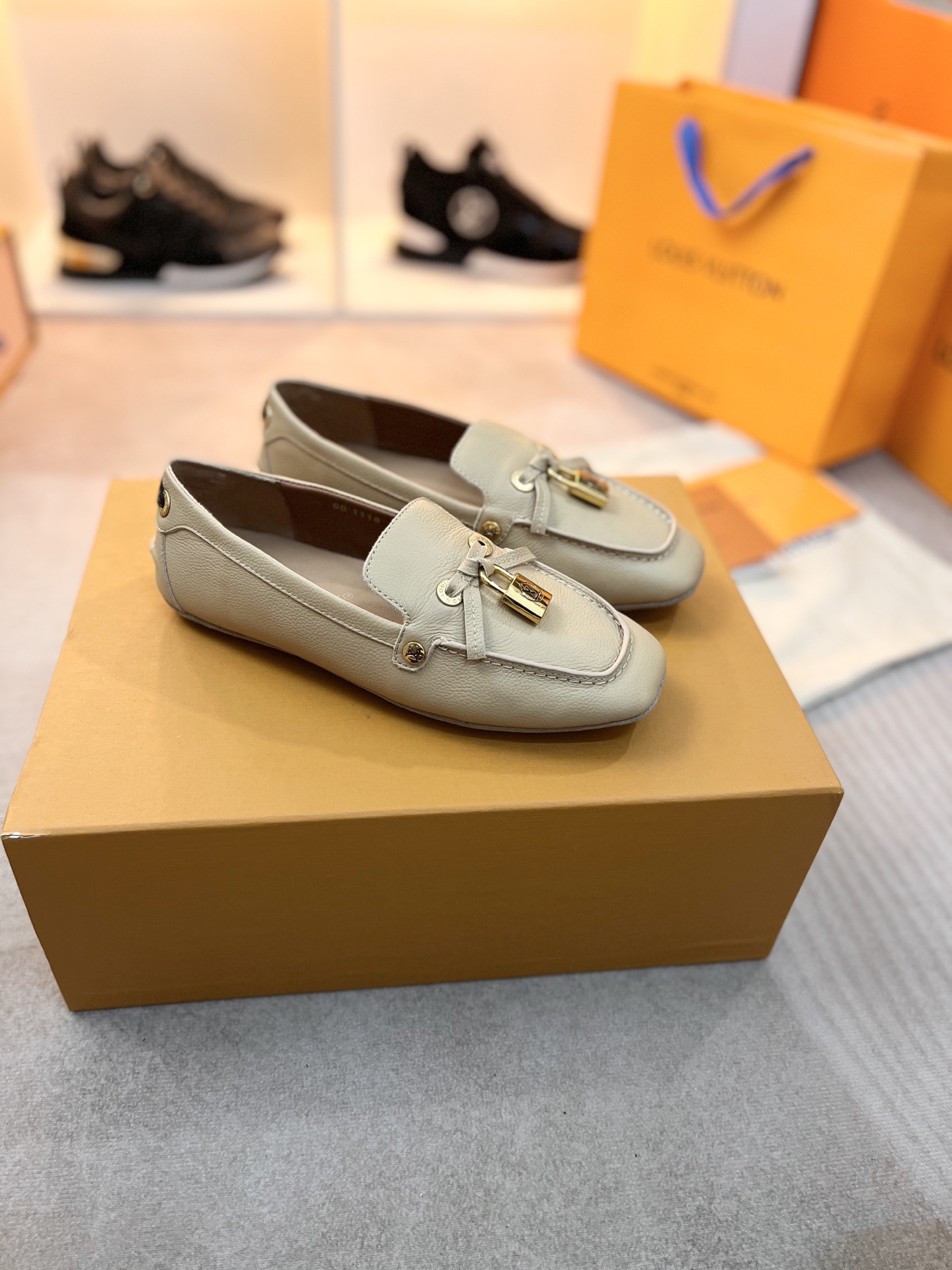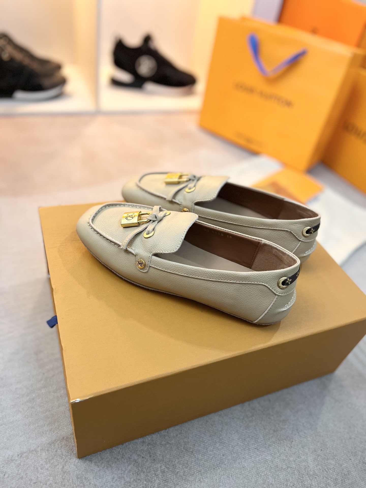 这款鞋子是AAAAA 1:1 质量 (非常棒). 使用了和原版一模一样的材料. 商标部分也保持了和路易威登/Louis Vuitton一样. 图片拍摄是实物鞋子拍摄, 您所收到的实物保证和我们图片一模一样.