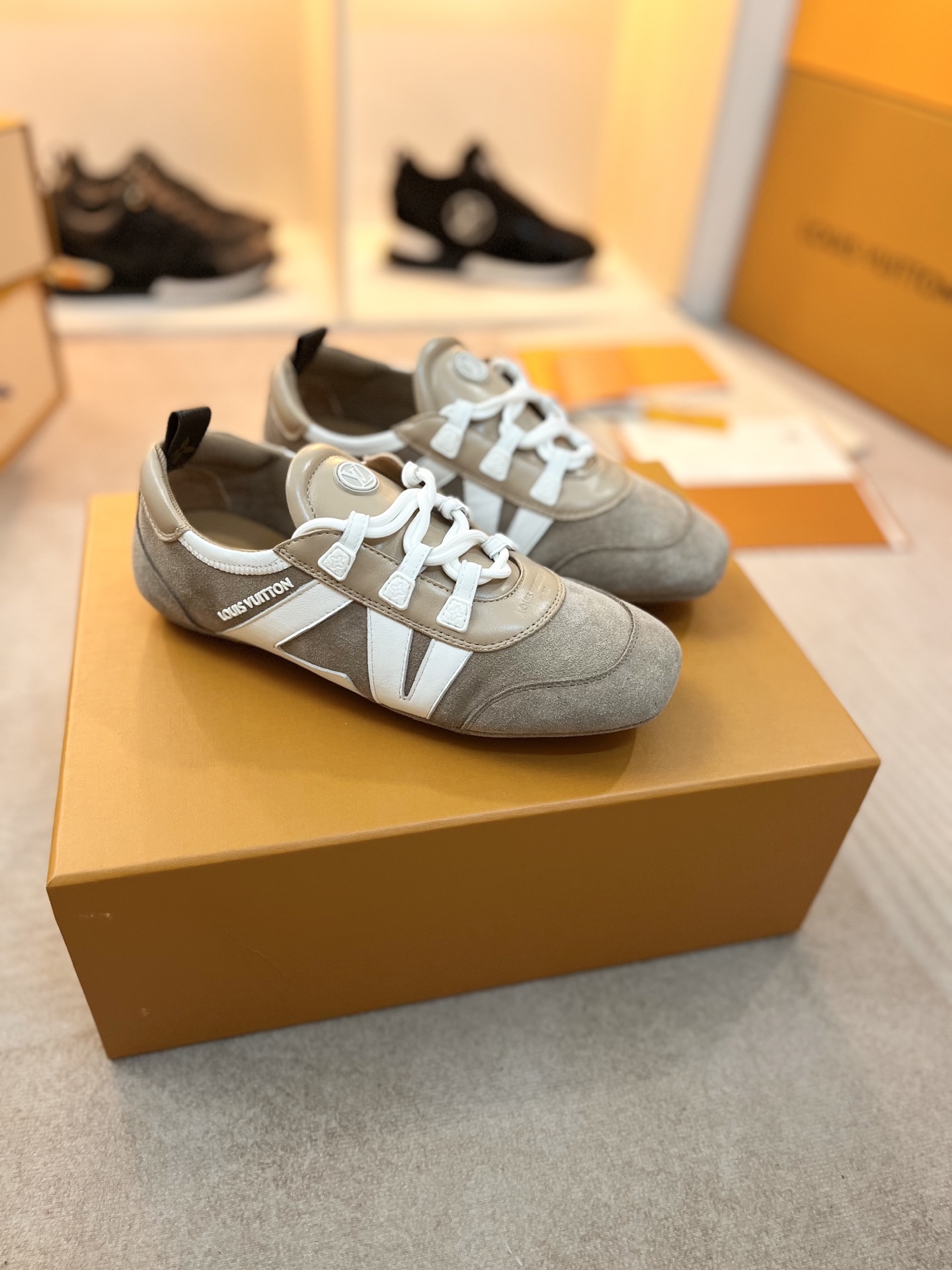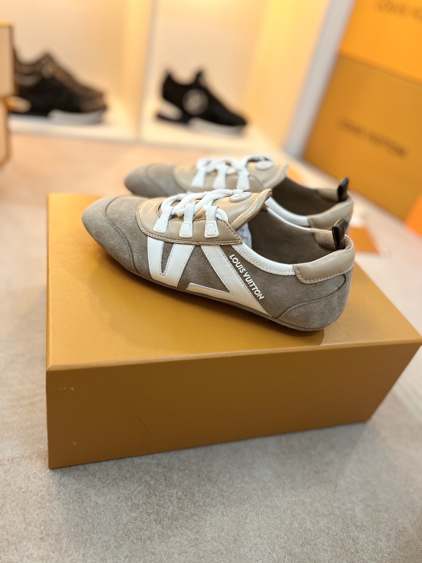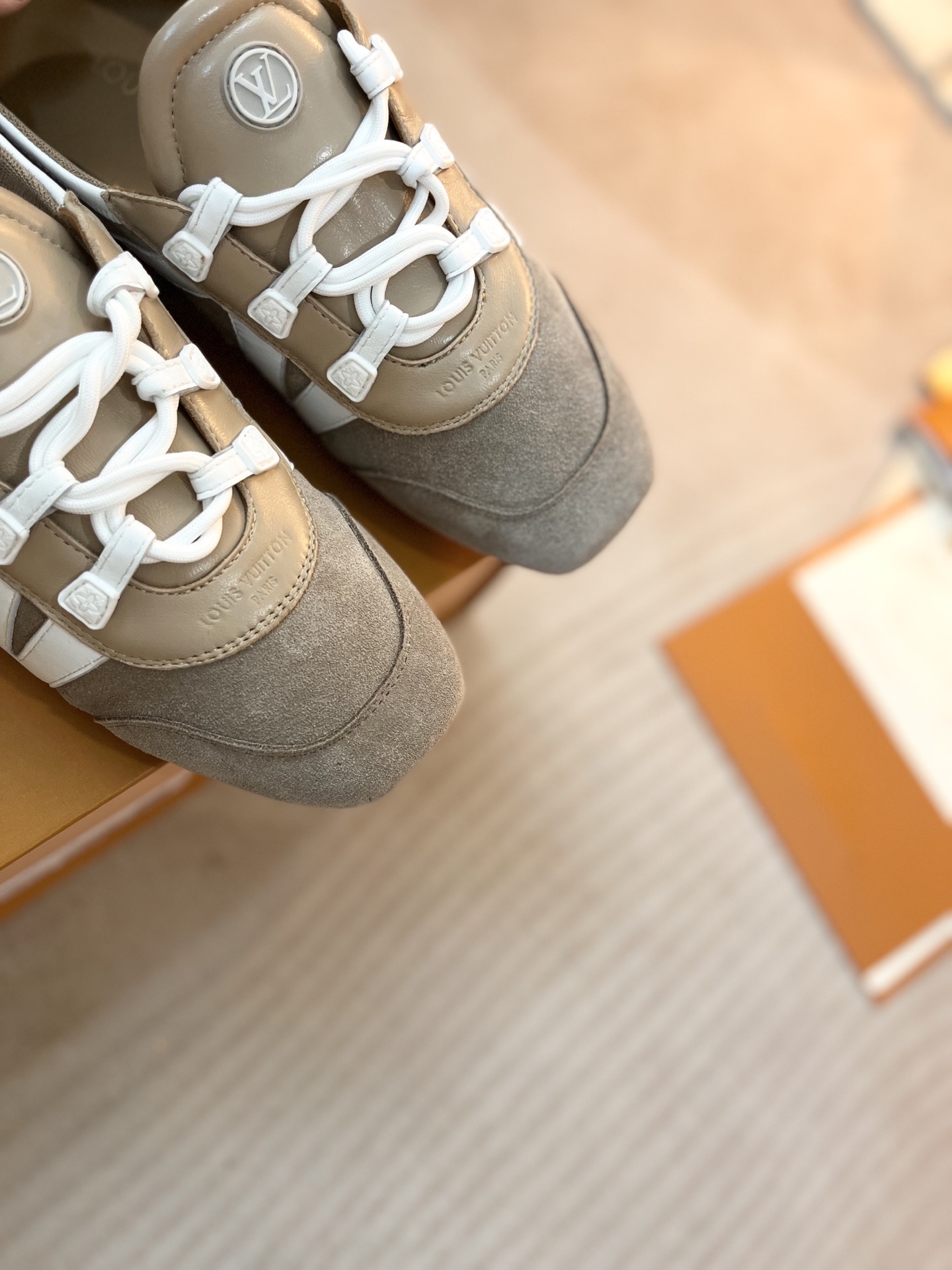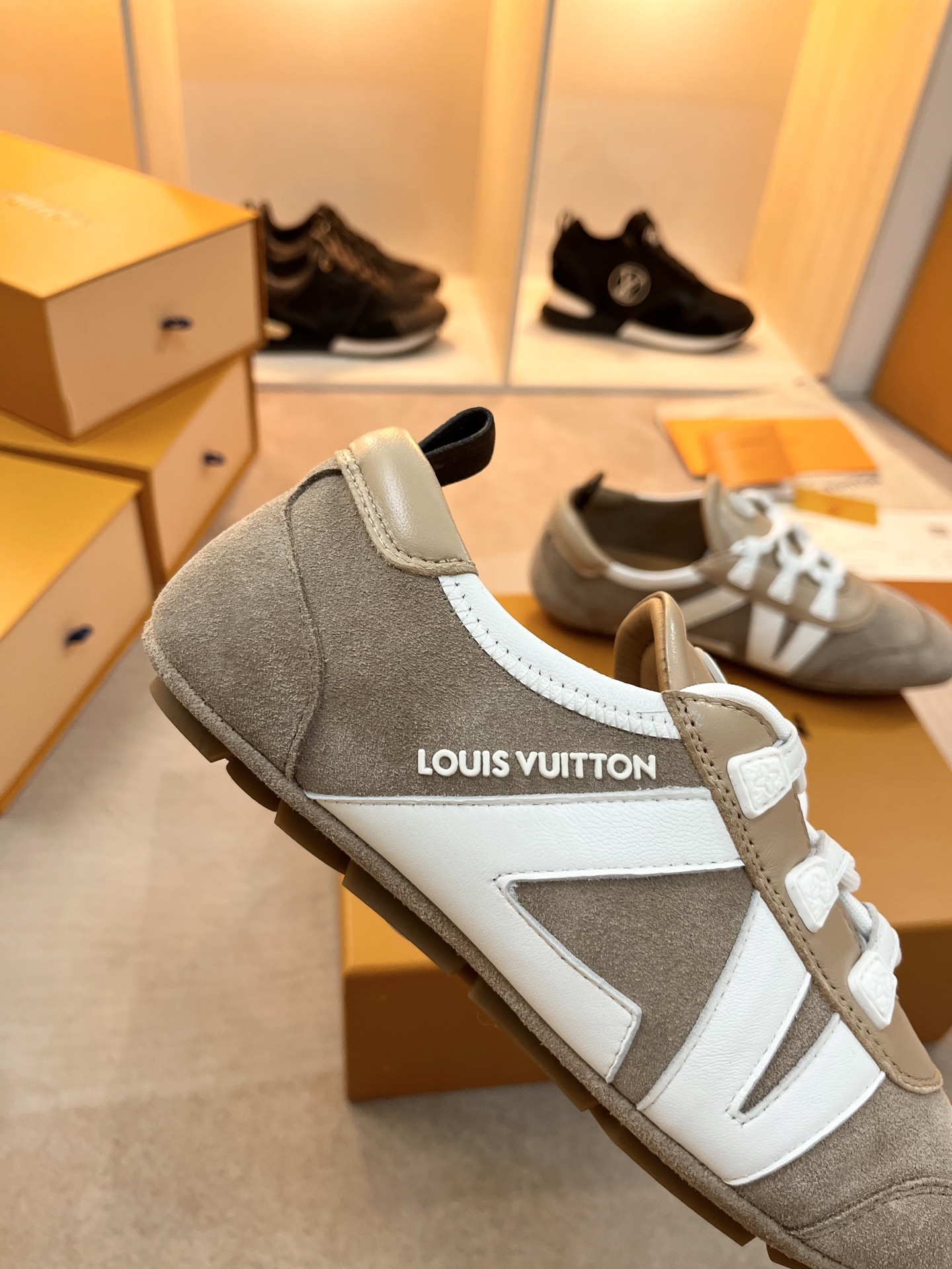 这款鞋子是AAAAA 1:1 质量 (非常棒). 使用了和原版一模一样的材料. 商标部分也保持了和路易威登/Louis Vuitton一样. 图片拍摄是实物鞋子拍摄, 您所收到的实物保证和我们图片一模一样.